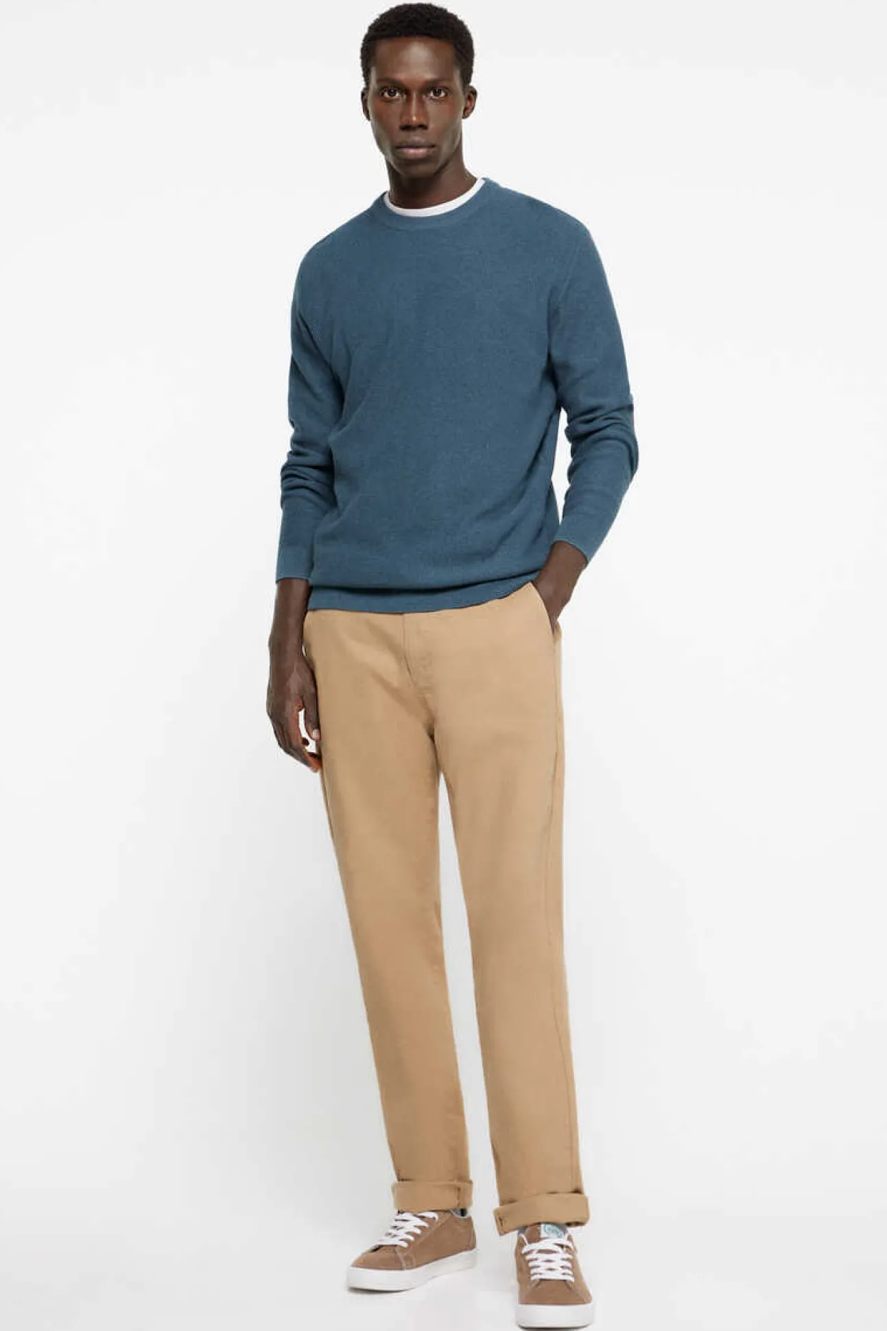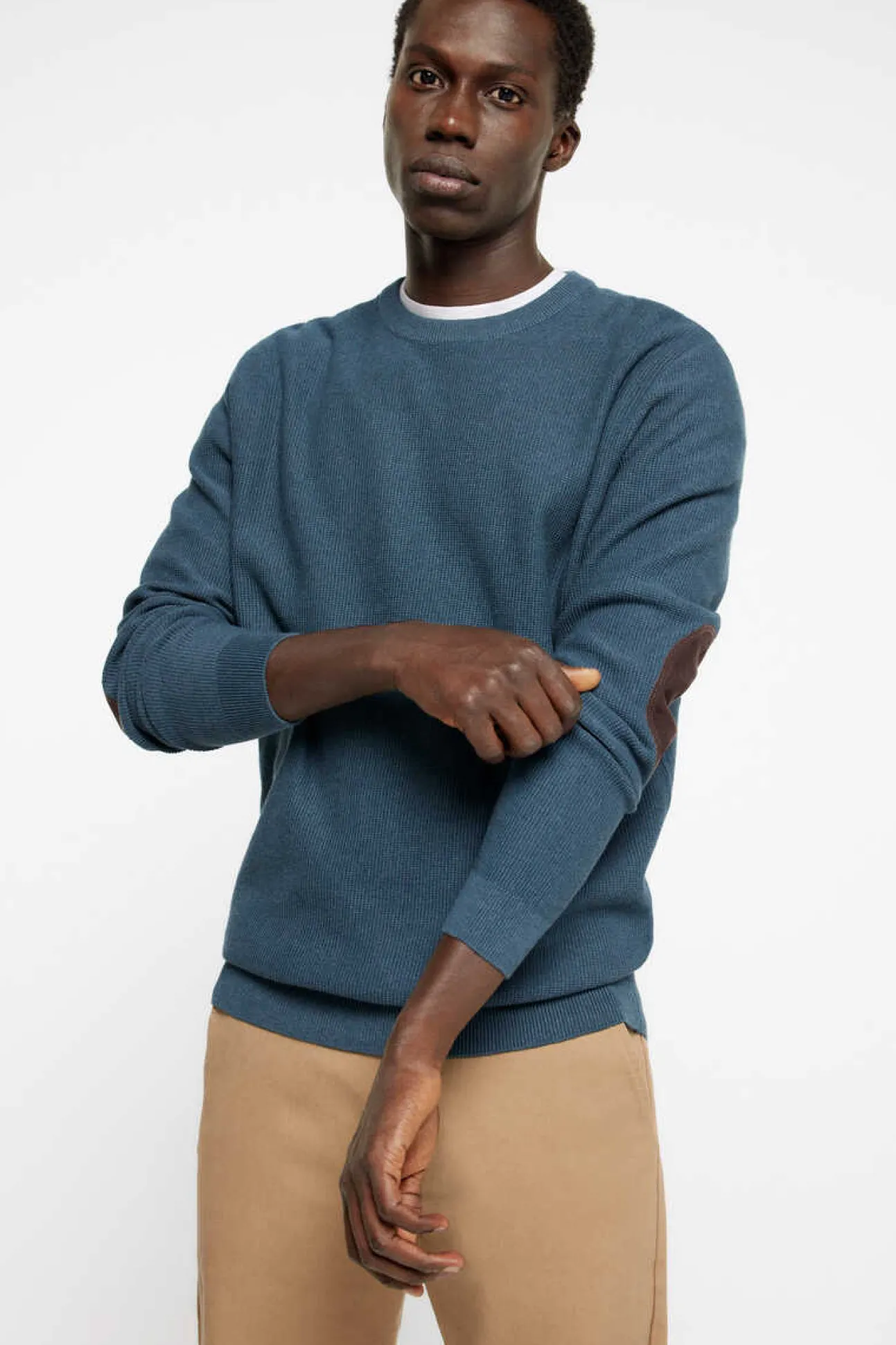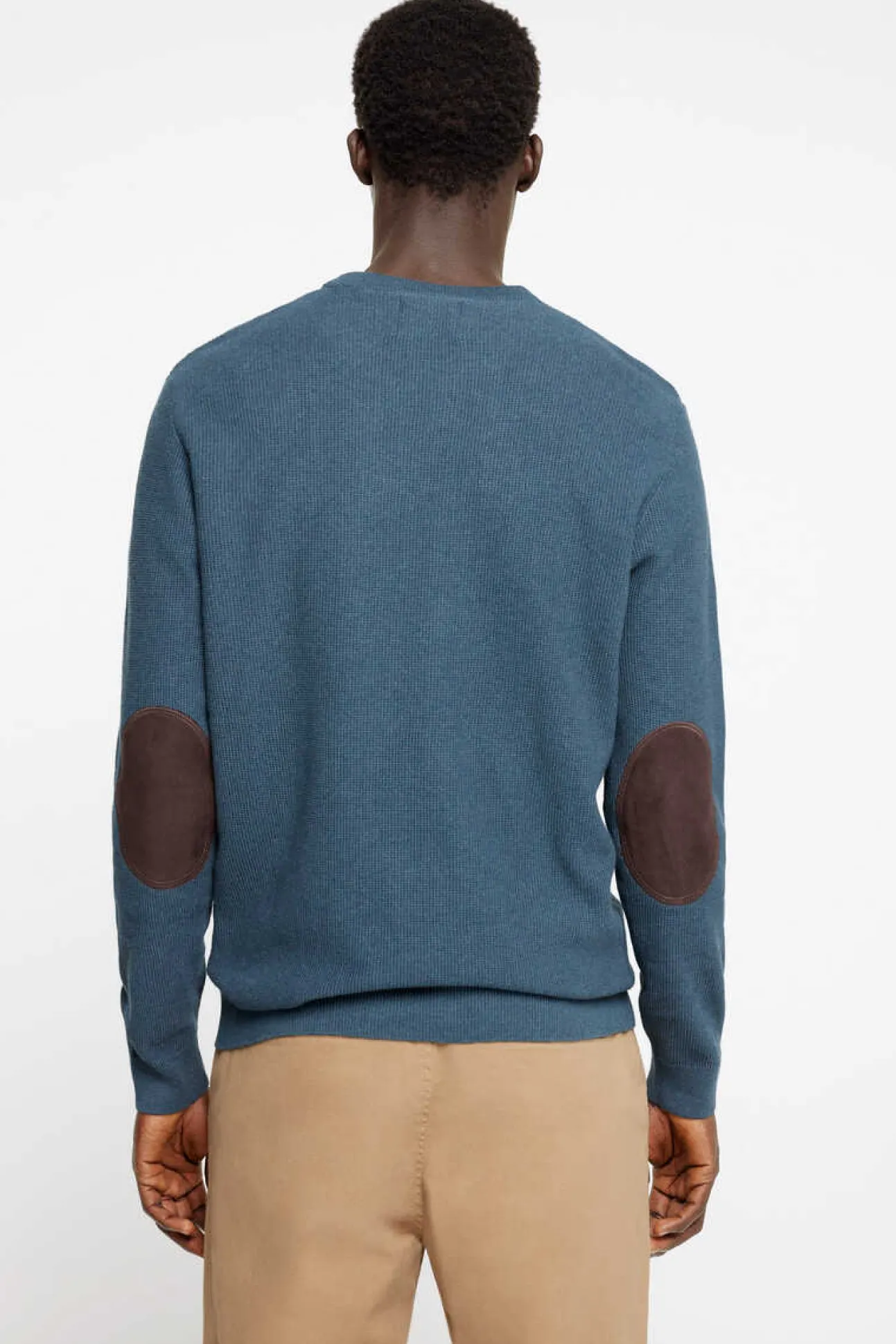 Camisola Com Gola Redonda 100% Algodao, Estrutura Fantasia. Gola, Punhos E Bainha Canelados. Cotoveleiras Com Efeito De Pele.