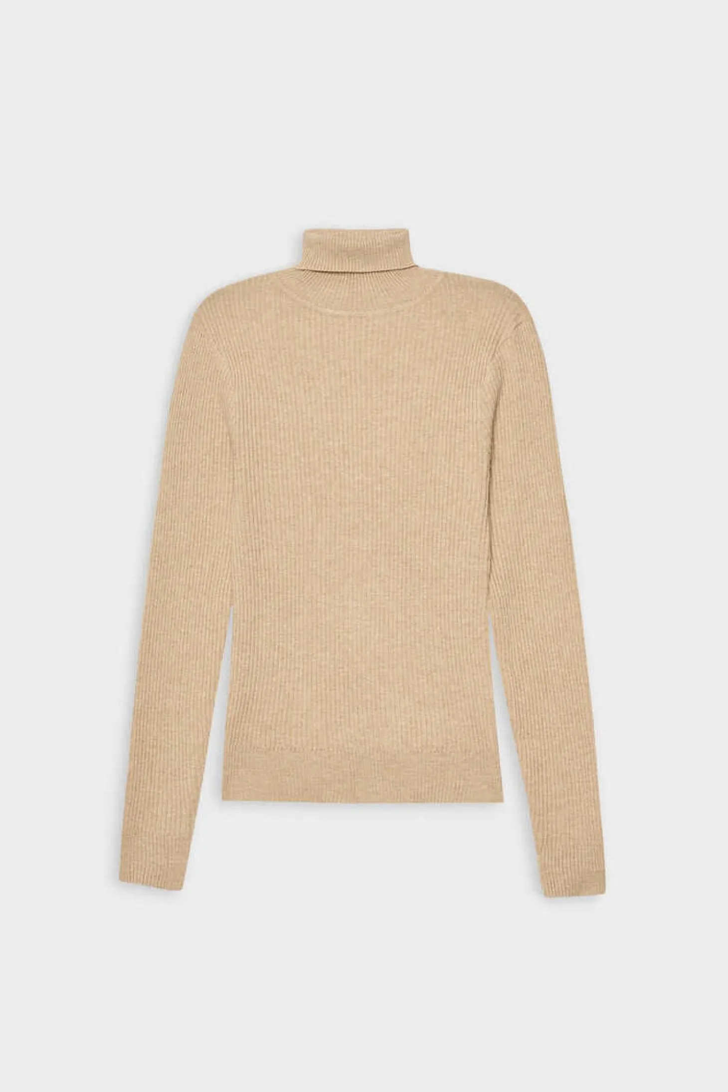 Camisola Slim De Malha De Manga Comprida E Gola Alta Em Varias Cores.