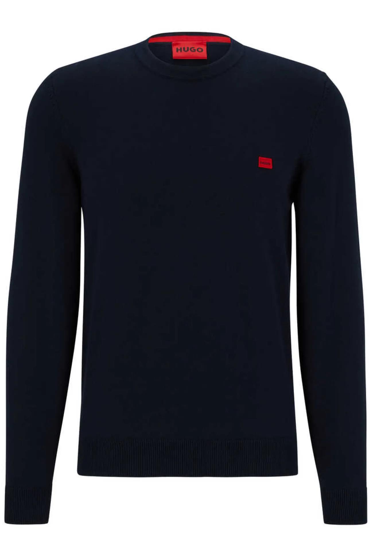 Camisola De Gola Redonda Com Etiqueta De Tecido Vermelho Hugo No Peito. Ombro Frances E Algodao Organico.