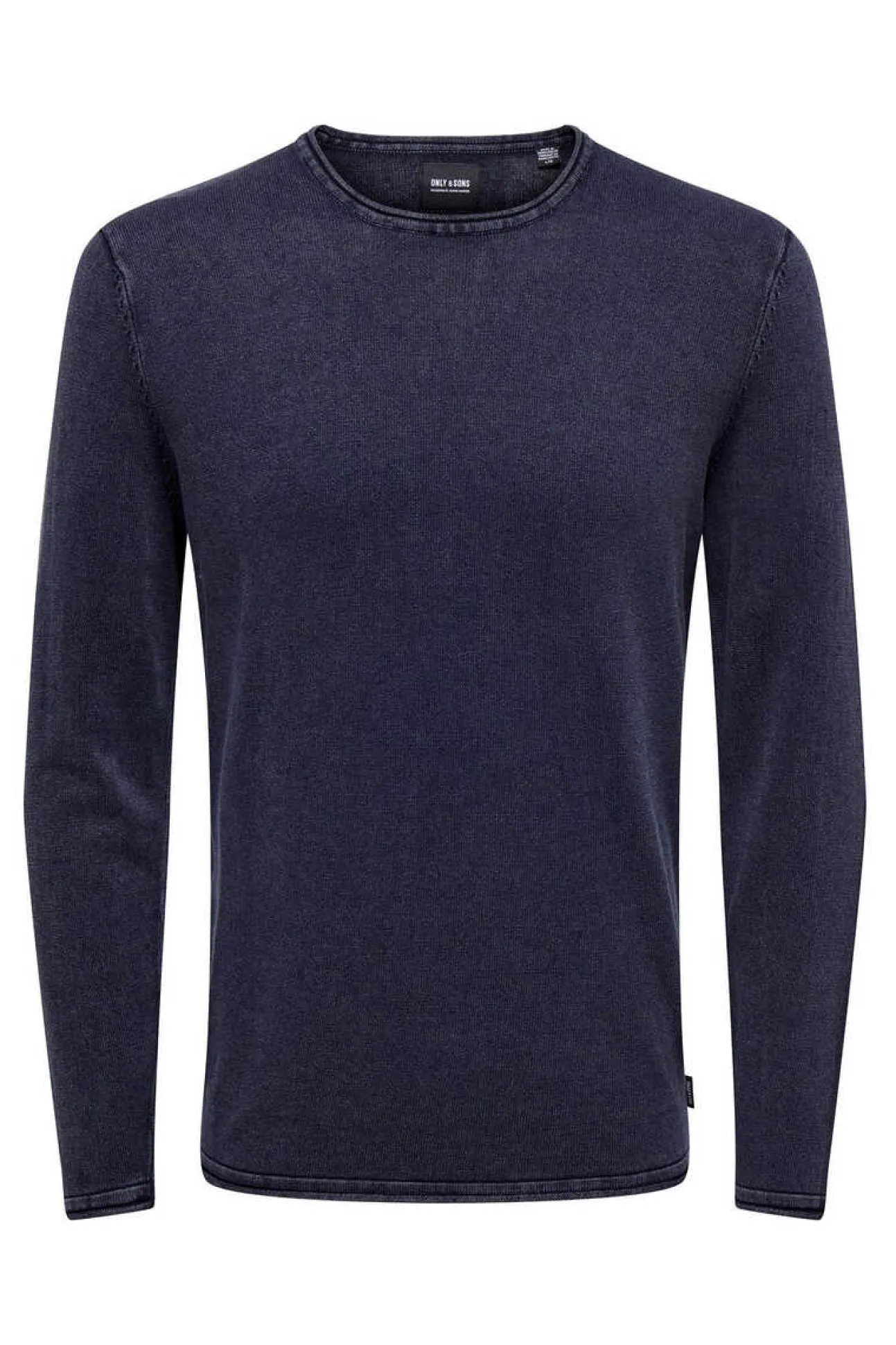 Camisola De Malha Com Gola Redonda E Detalhes De Pespontos Nos Punhos E Pescoco.