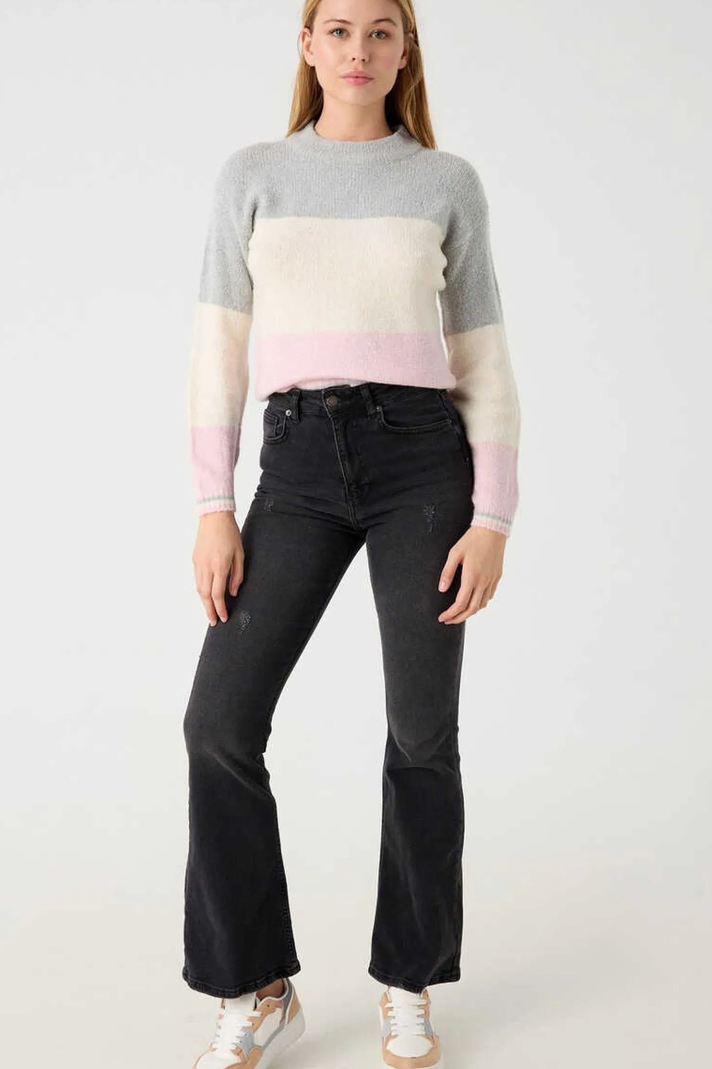 Camisolas Tao Cute Como Esta Ha Poucas. Degrade Em Tres Cores: Cinzento-Claro, Branco-Creme E Rosa-Palido, O Que Te Permite Criar Os Looks Que Queiras. Gola Red … Onda.Ver Mais