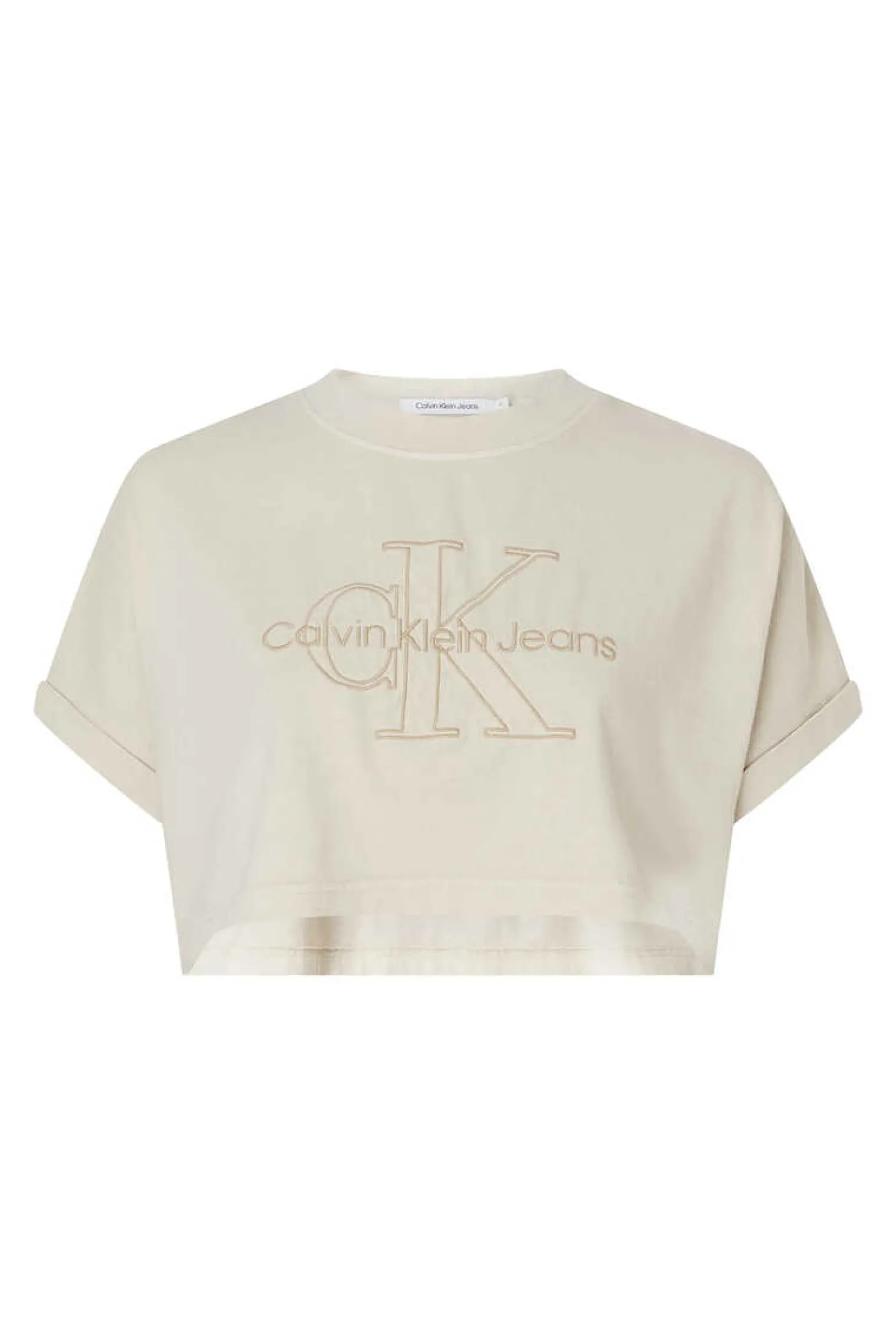 Camisola Manga Curta Crop Com Logo No Mesmo Tom No Peito