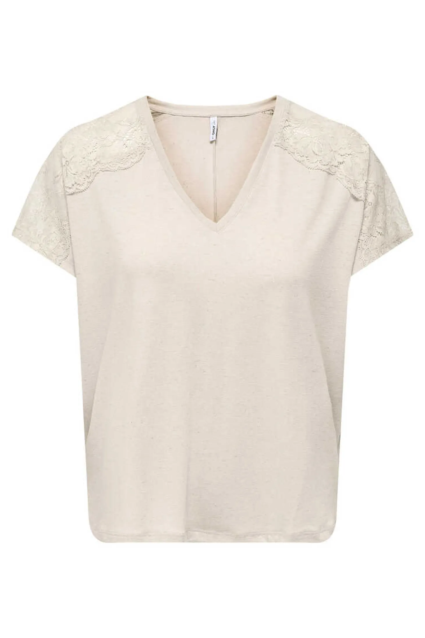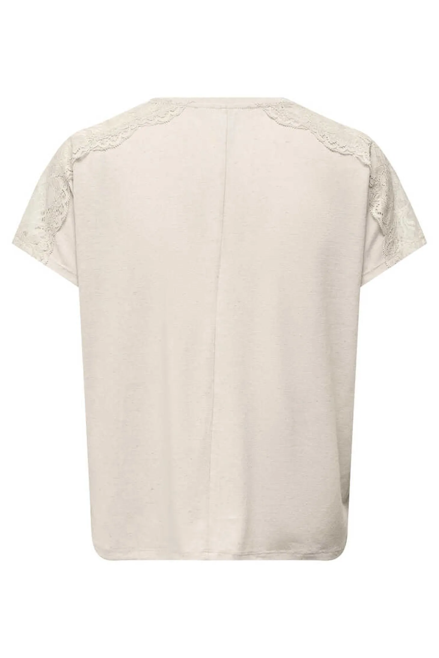 Camisola De Manga Curta Com Decote Em V E Detalhe De Renda Nos Ombros.