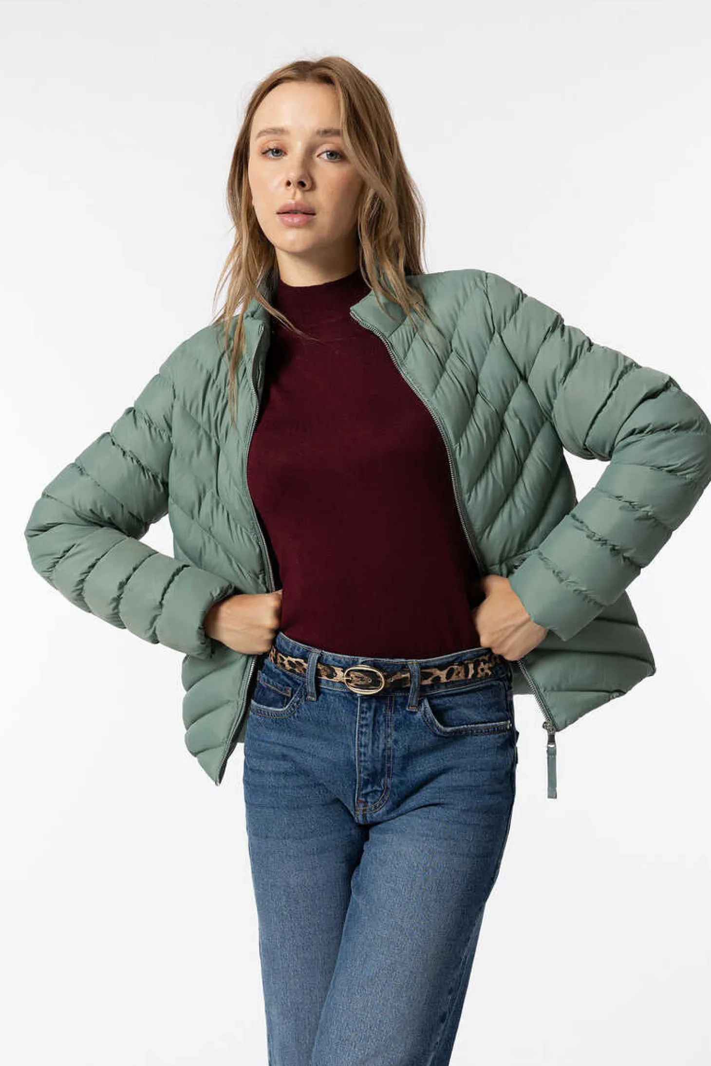 Casaco De Gola Subida E Manga Comprida. Bolsos E Fecho Frontal Com Fecho-Eclair. Detalhe De Elastico Nas Laterais. Altura Do Modelo: 178 Cm | Tamanho: S
