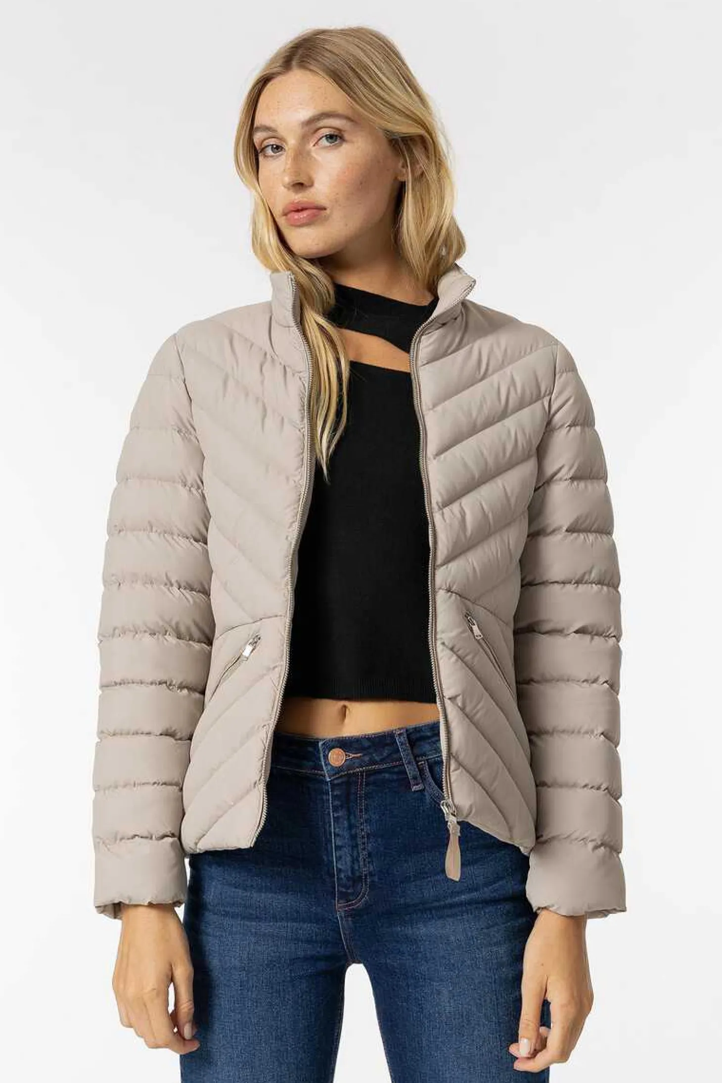 Casaco De Gola Subida E Manga Comprida. Bolsos E Fecho Frontal Com Fecho-Eclair. Detalhe De Elastico Nas Laterais. Altura Do Modelo: 178 Cm | Tamanho: S