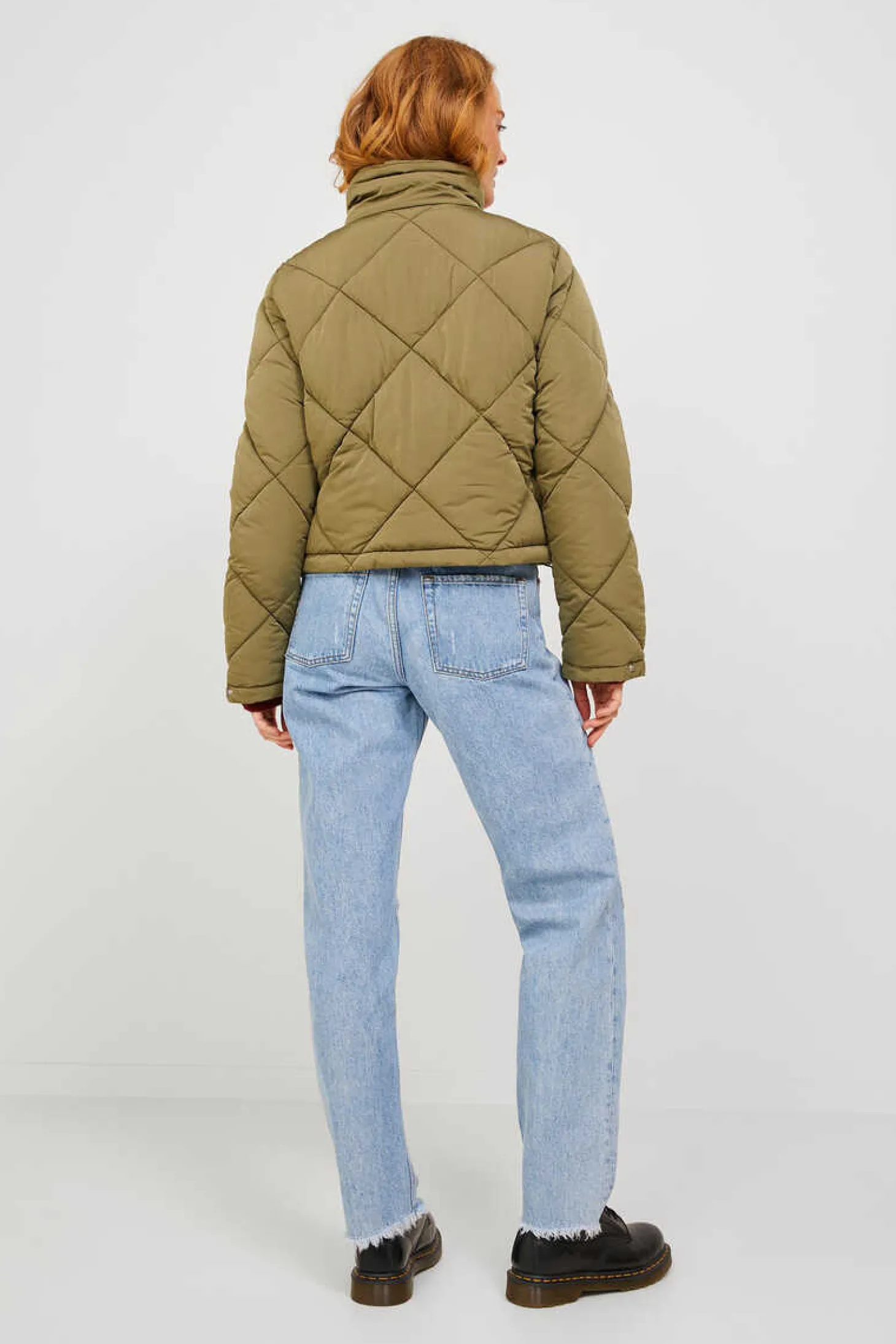 Casaco Acolchoado Com Estampado De Quadrados. Fecho Atraves De Fecho-Eclair Na Frente. Bolsos Laterais Incorporados.
