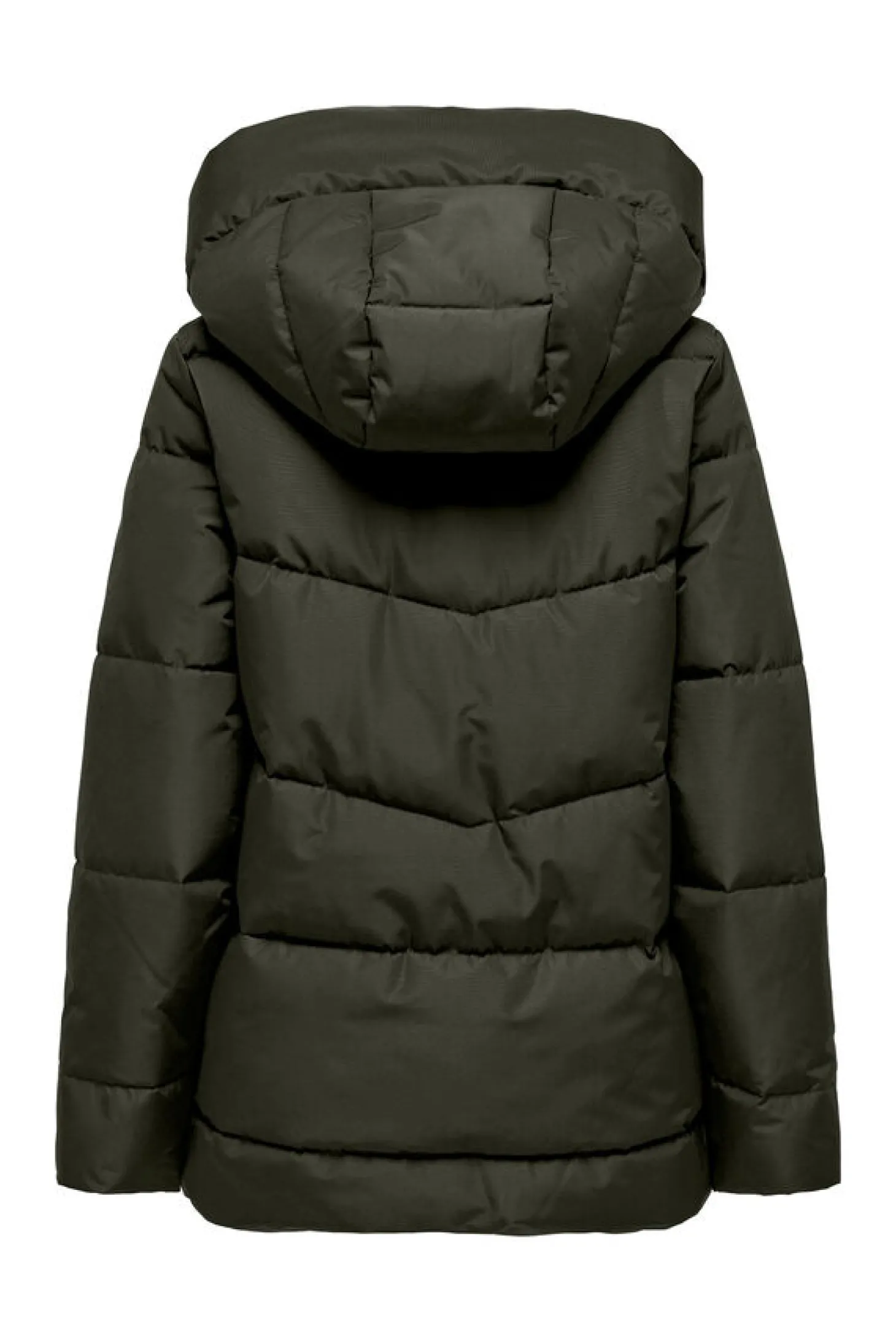 Casaco Acolchoado Com Gola Alta E Capuz Com Cordao Ajustavel. Fecho-Eclair Frontal. Manga Comprida. Dois Bolsos Laterais Funcionais Com Botao.