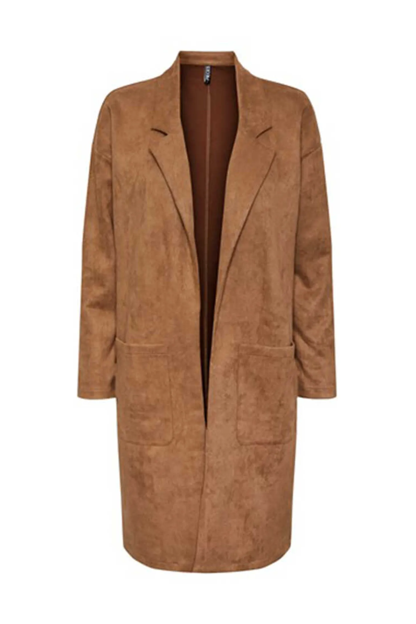 Casaco Comprido Sem Fecho. De Manga Comprida E Decote Com Lapelas. Dois Bolsos A Frente E De Ombro Caido.