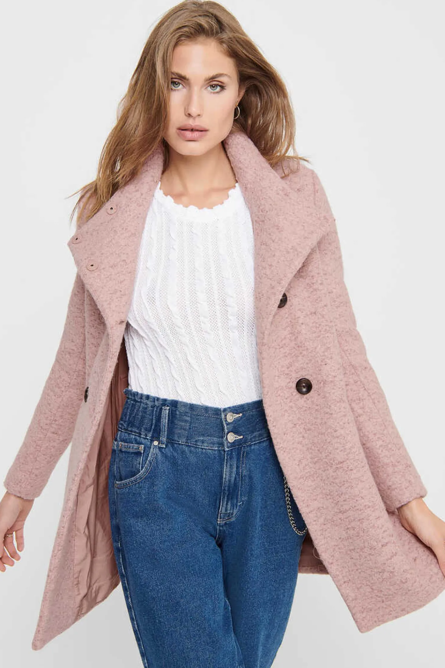 Casaco Comprido Com Fecho De Botoes Trespassado. Bolsos Laterais Funcionais. Totalmente Forrado Com Um Forro Em Poliester 100% Reciclado. Ideal Para A Transicao … Entre Estacoes.Ver Mais