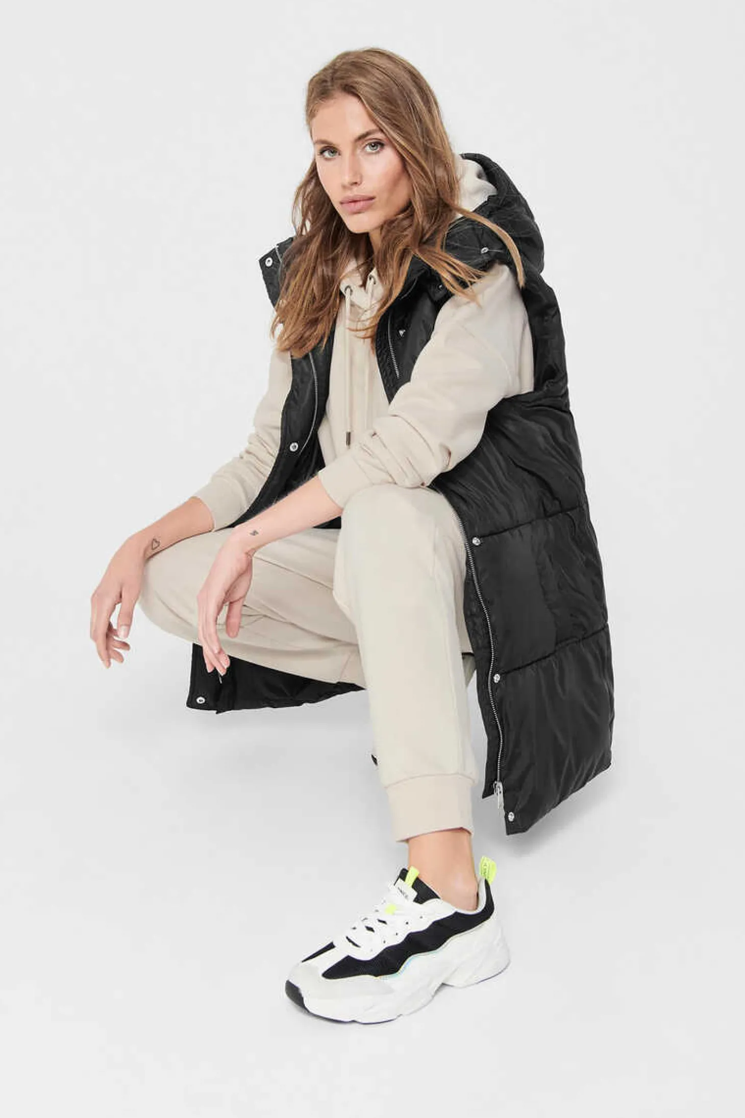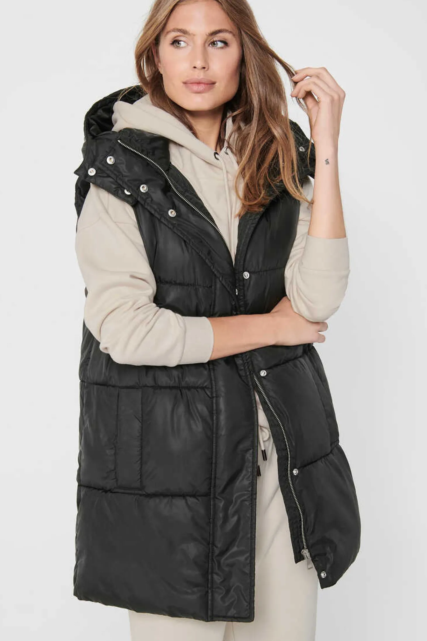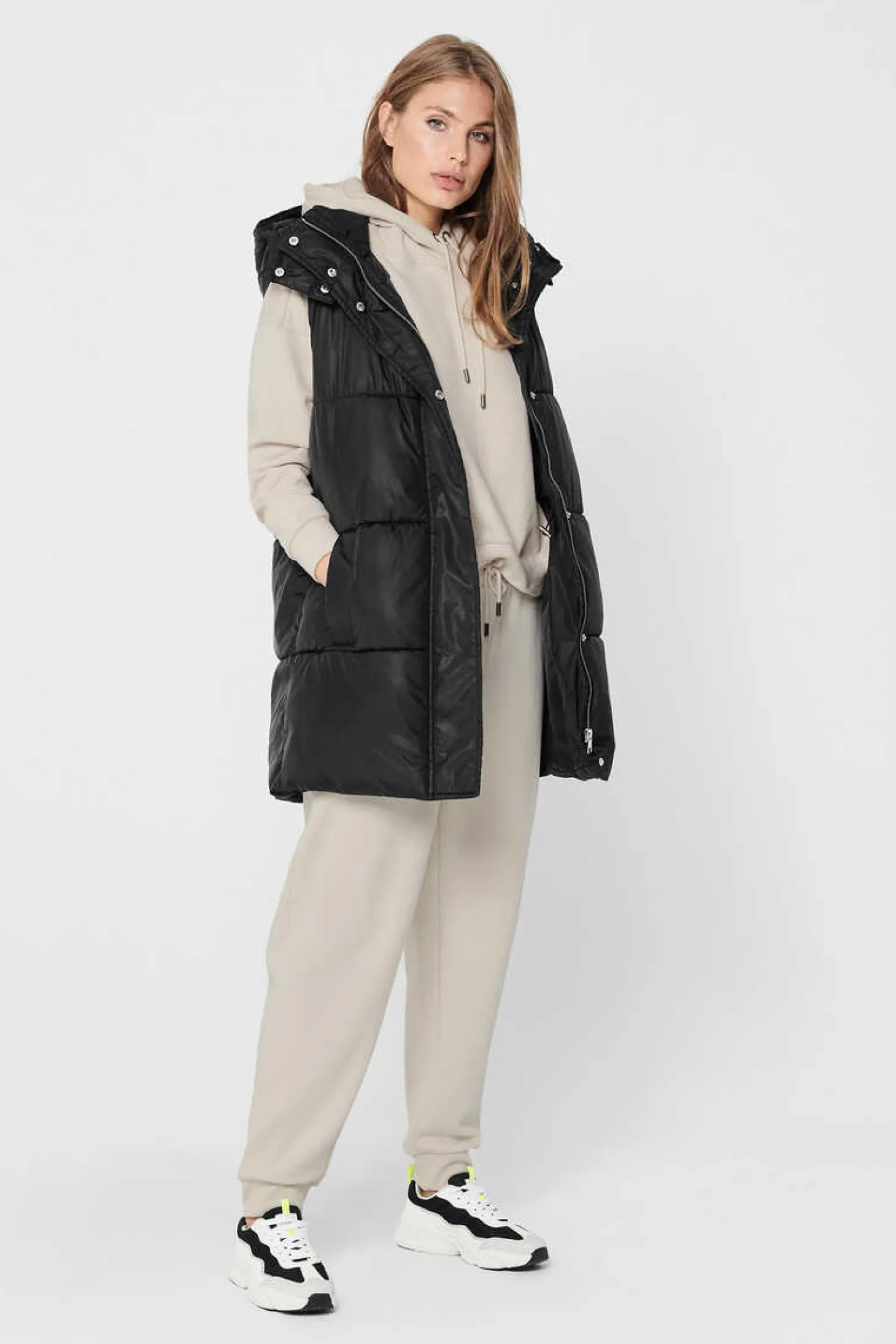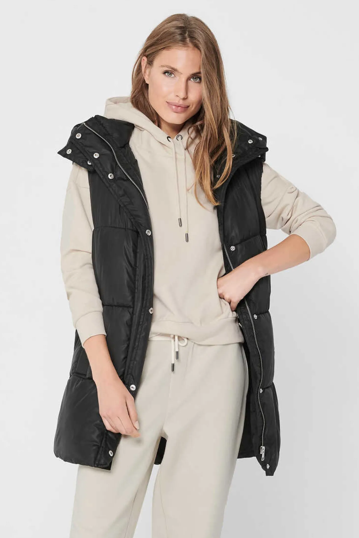 Casaco Comprido De Malha Cor Lisa, Sem Fecho E Com Dois Bolsos Laterais.