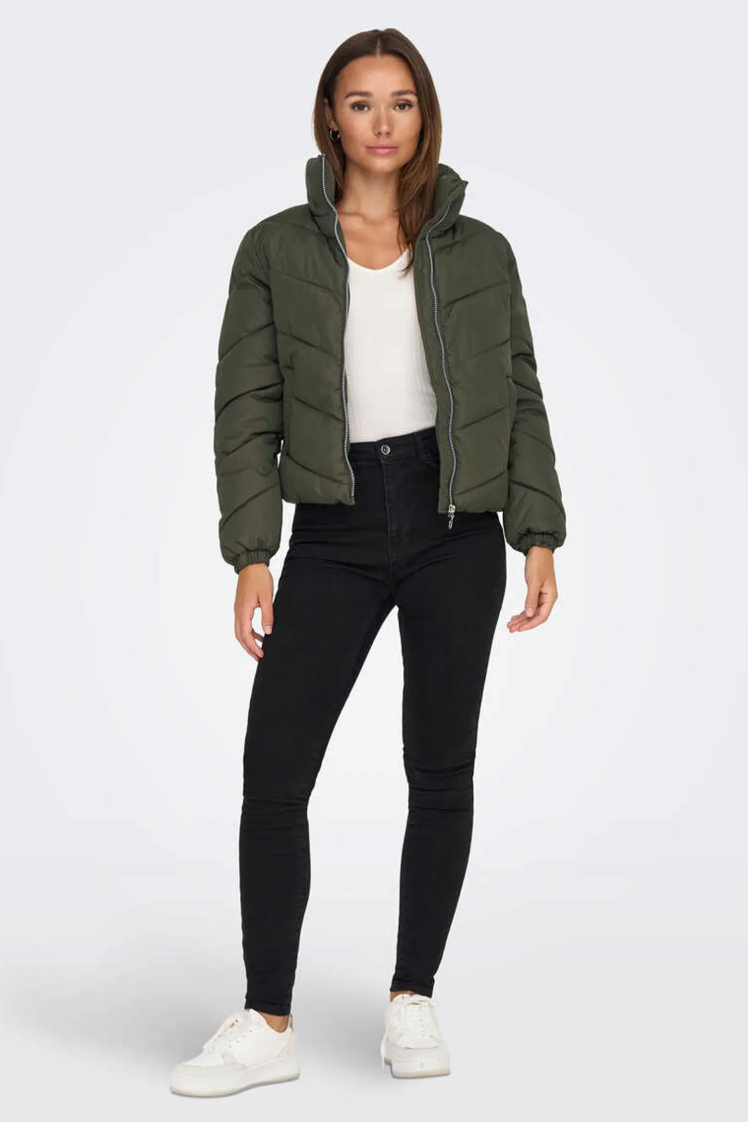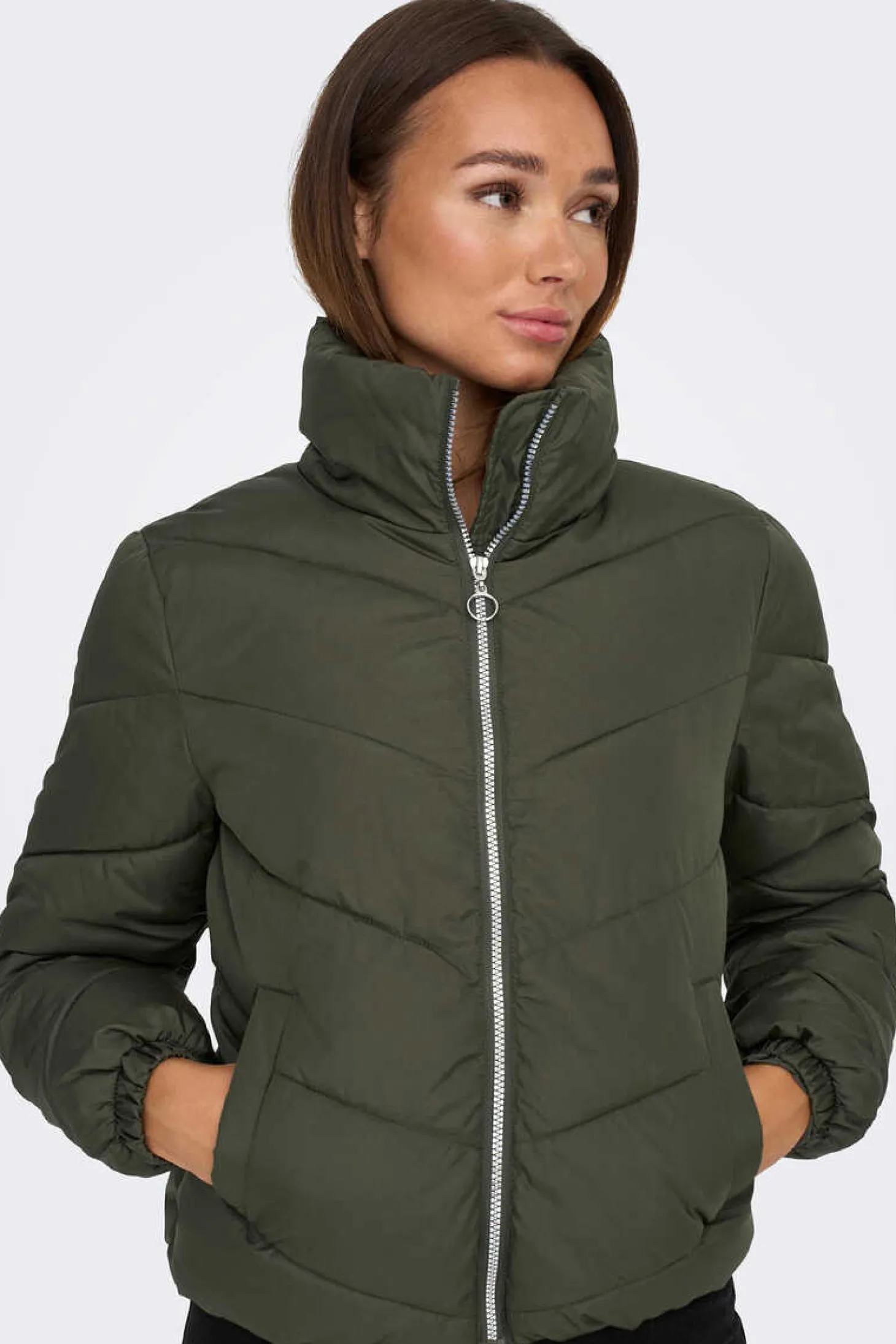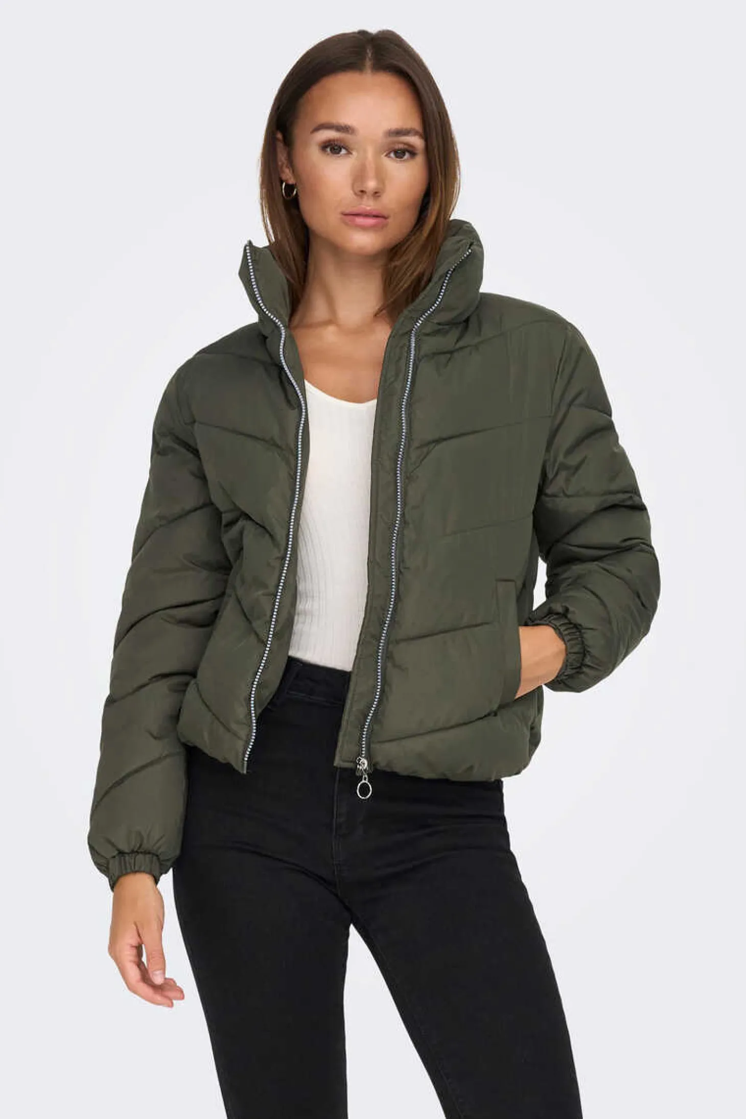 Casaco Acolchoado Curto Com Gola Alta. Mangas Compridas Com Bainha Elastica. Fecho-Eclair Frontal. Dois Bolsos Laterais.