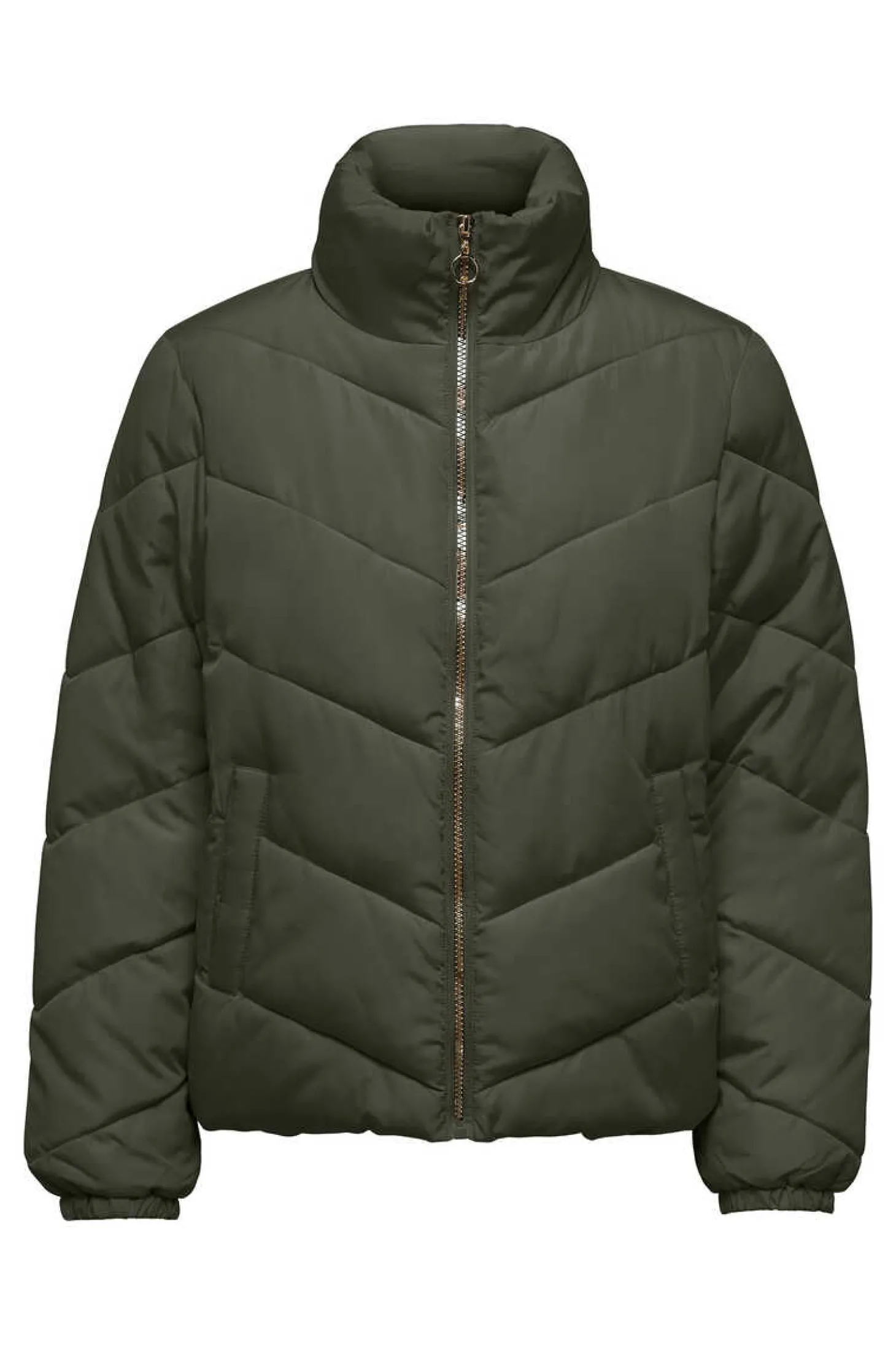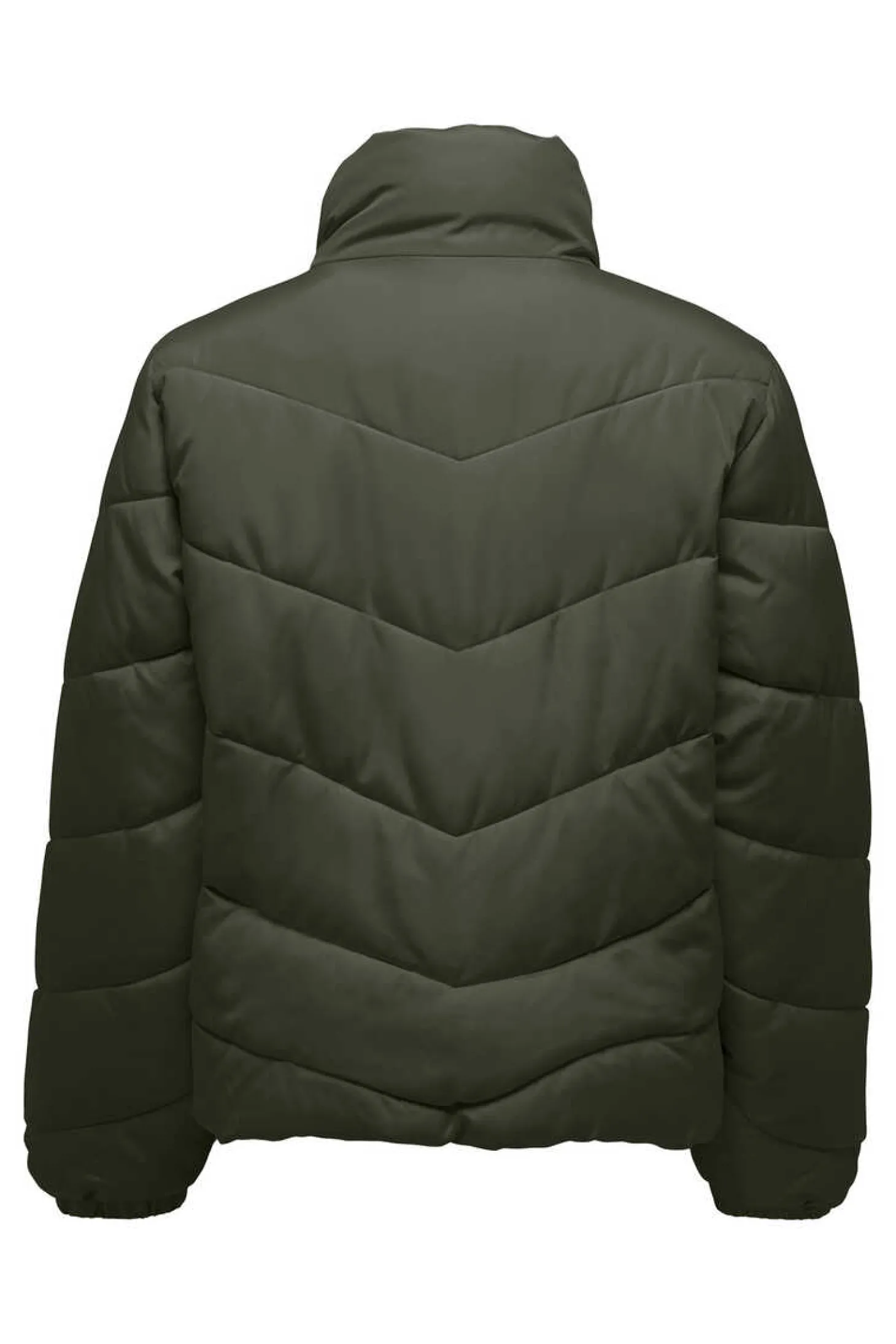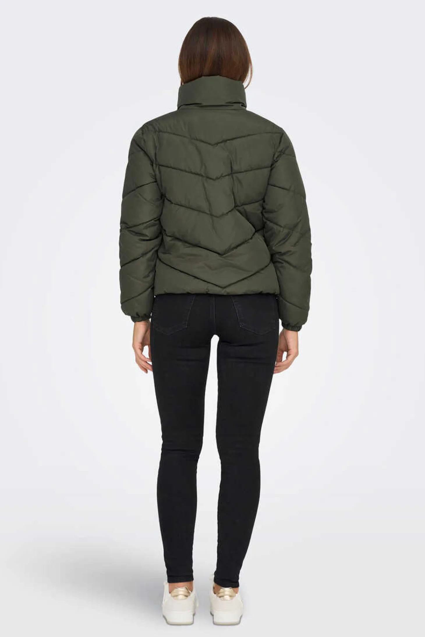 Casaco Acolchoado Curto Com Gola Alta. Mangas Compridas Com Bainha Elastica. Fecho-Eclair Frontal. Dois Bolsos Laterais.