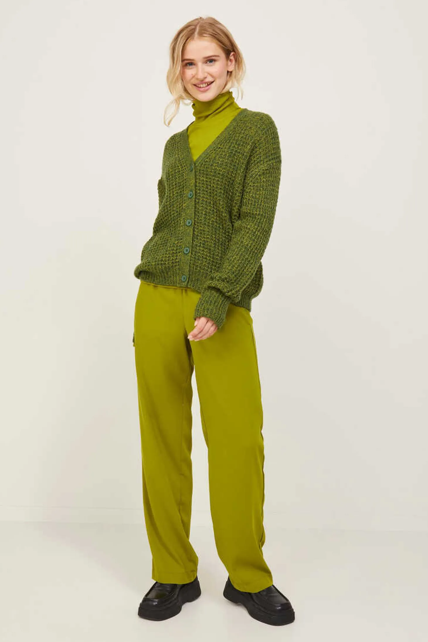 Casaco De Malha Estruturado De Manga Comprida E Gola Em O. Fecho Com Botoes No Tom.