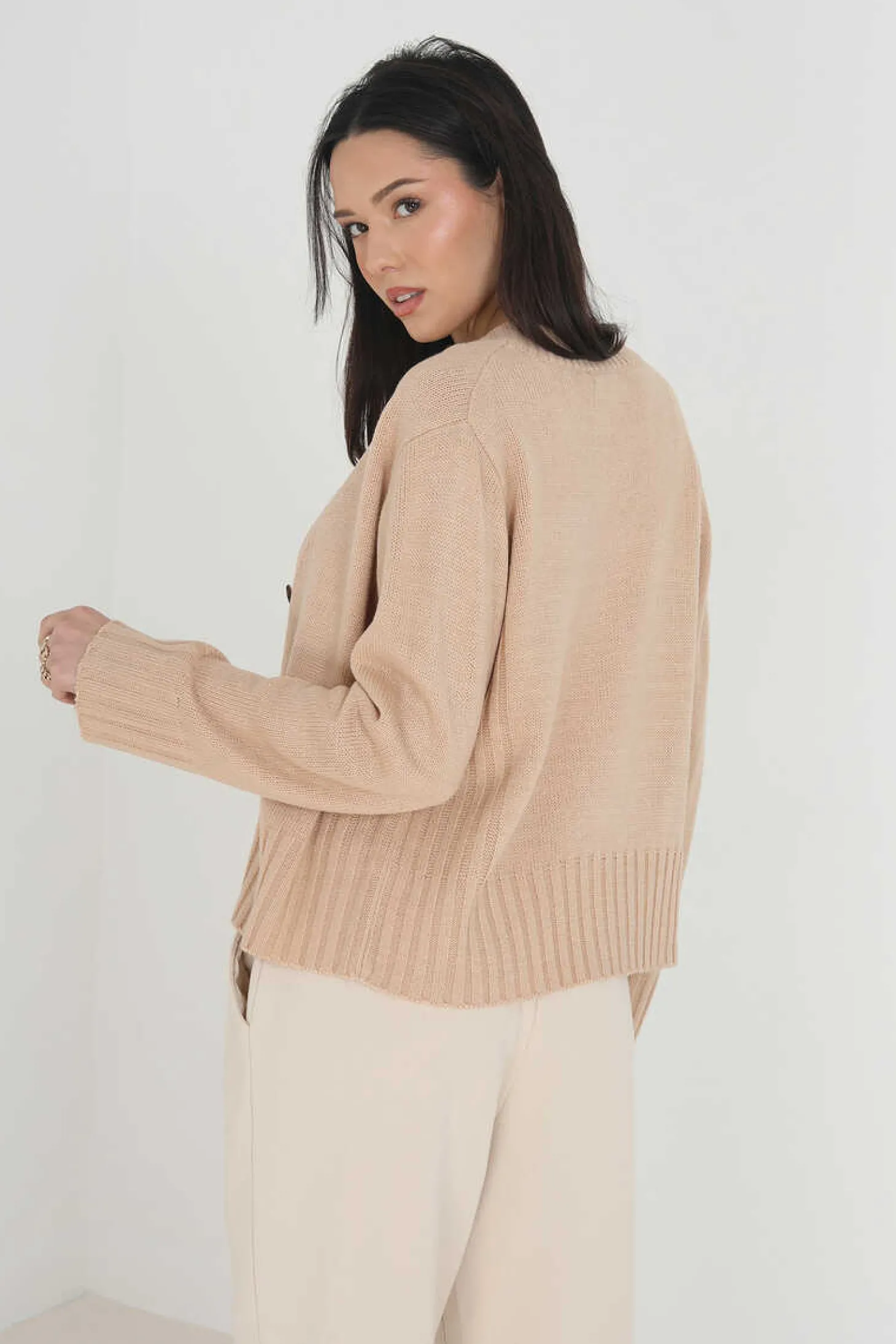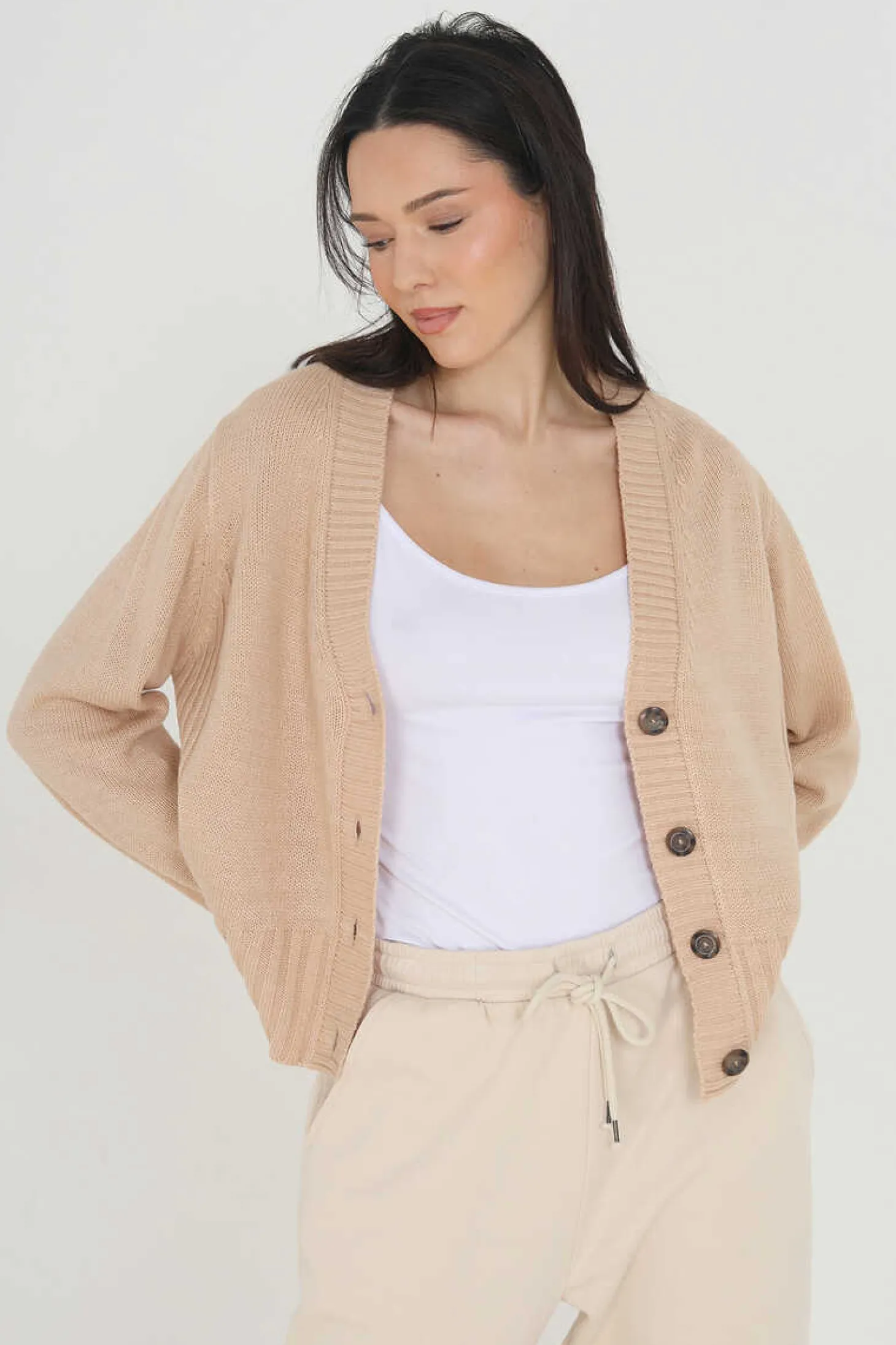 Casaco De Malha De Mulher, Com Decote Em Bico E Quatro Botoes. Com Detalhe Canelado Nas Bordas
