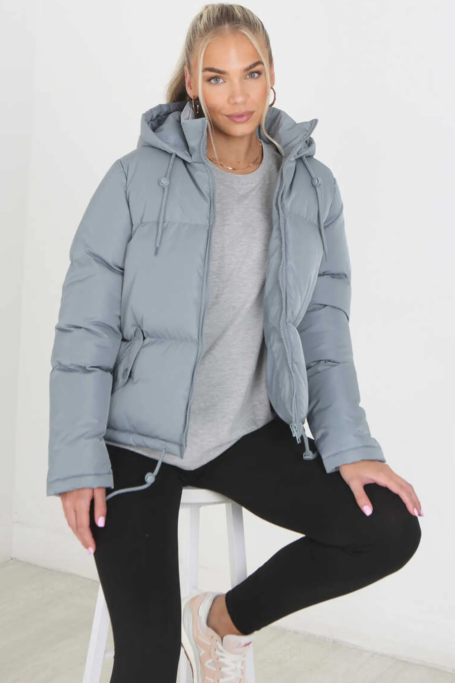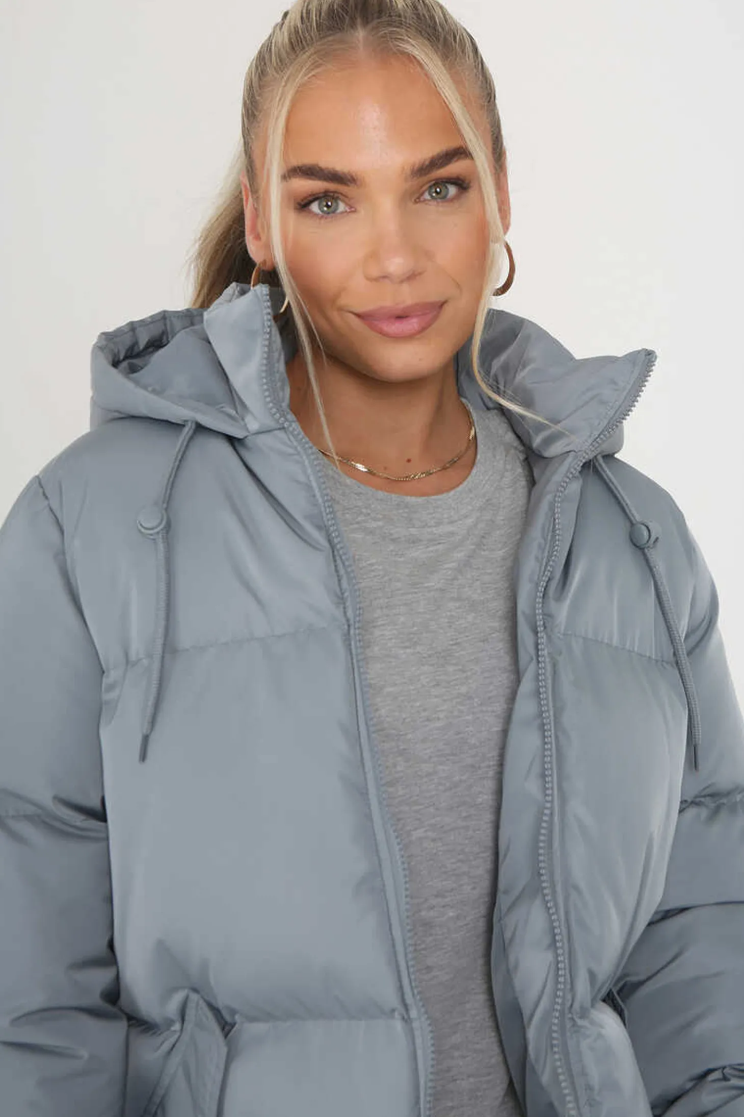 Casaco De Penas De Mulher Acolchoado, Com Capuz E Cordao Ajustavel No Capuz E Na Parte De Baixo. Fecho-Eclair