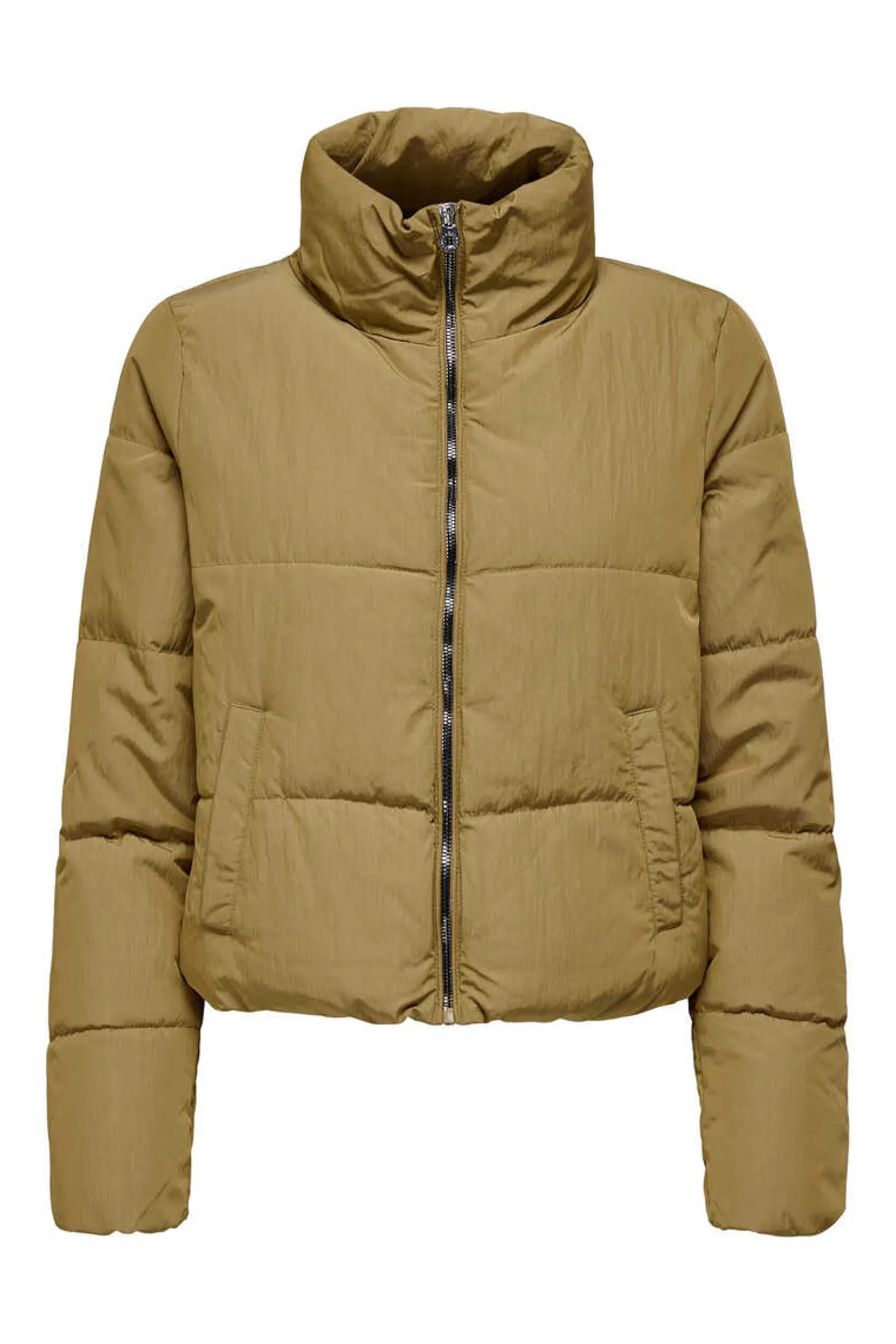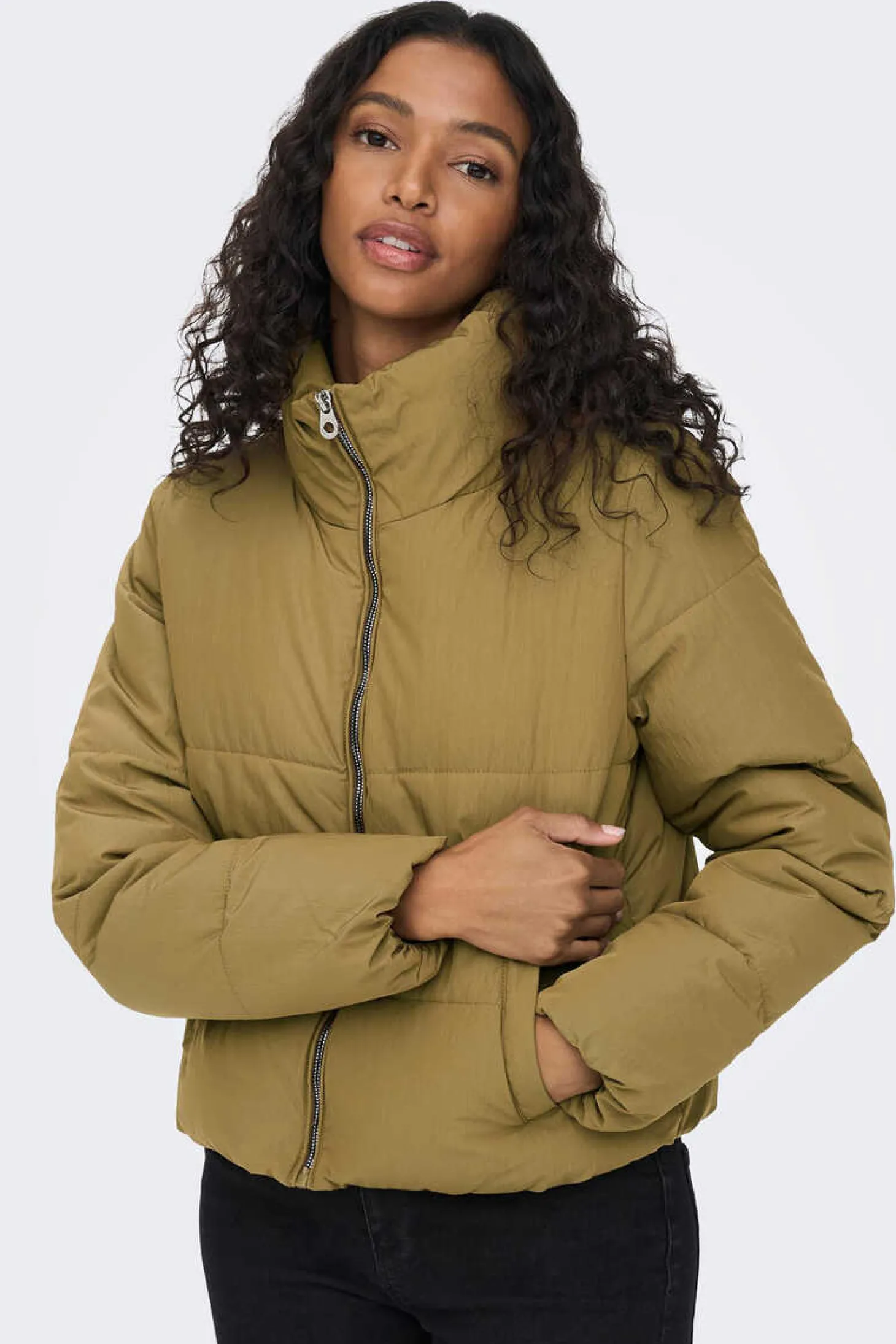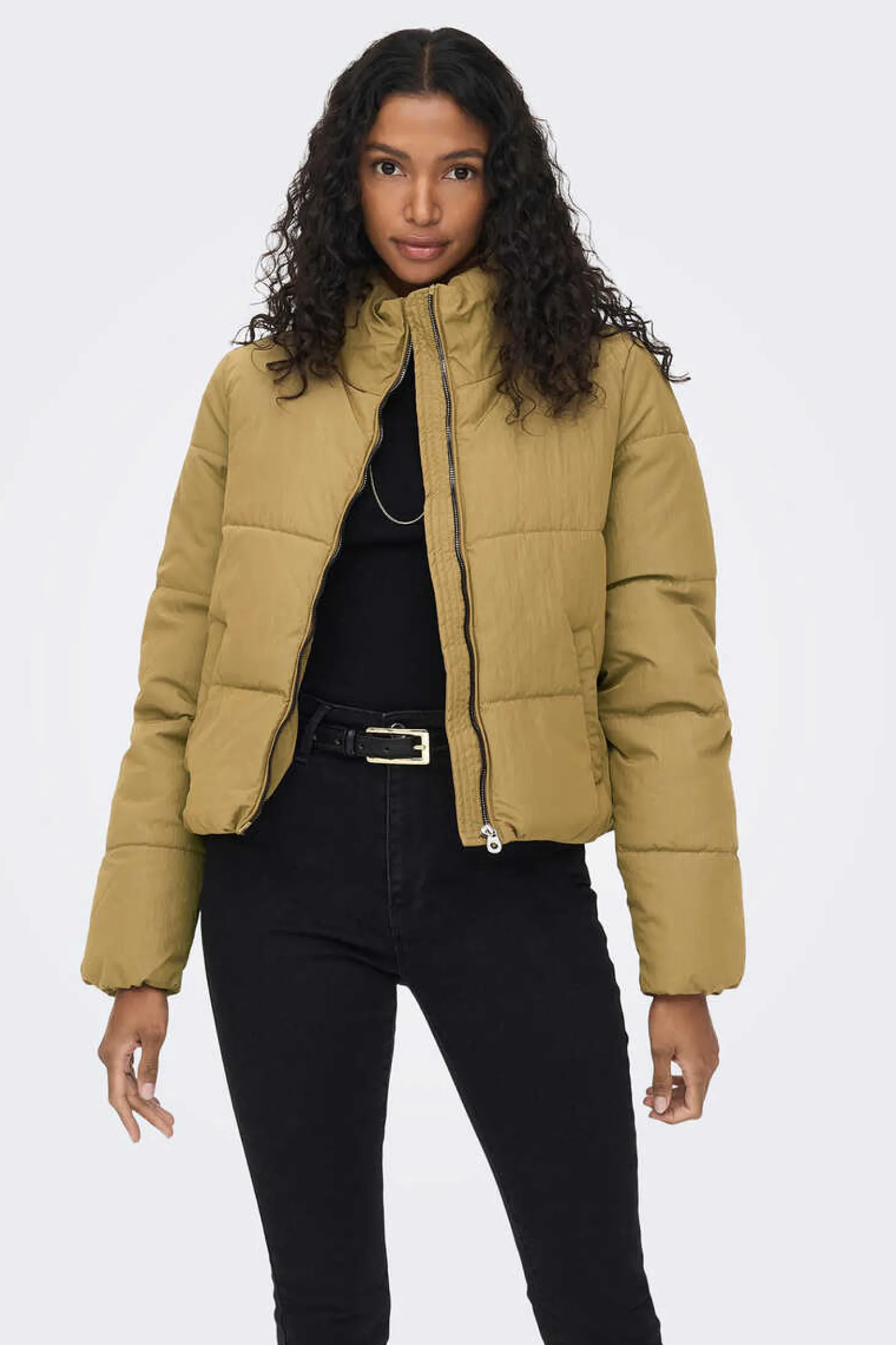 Casaco De Penas Curto Com Fecho-Elciar E Bolsos Laterais.