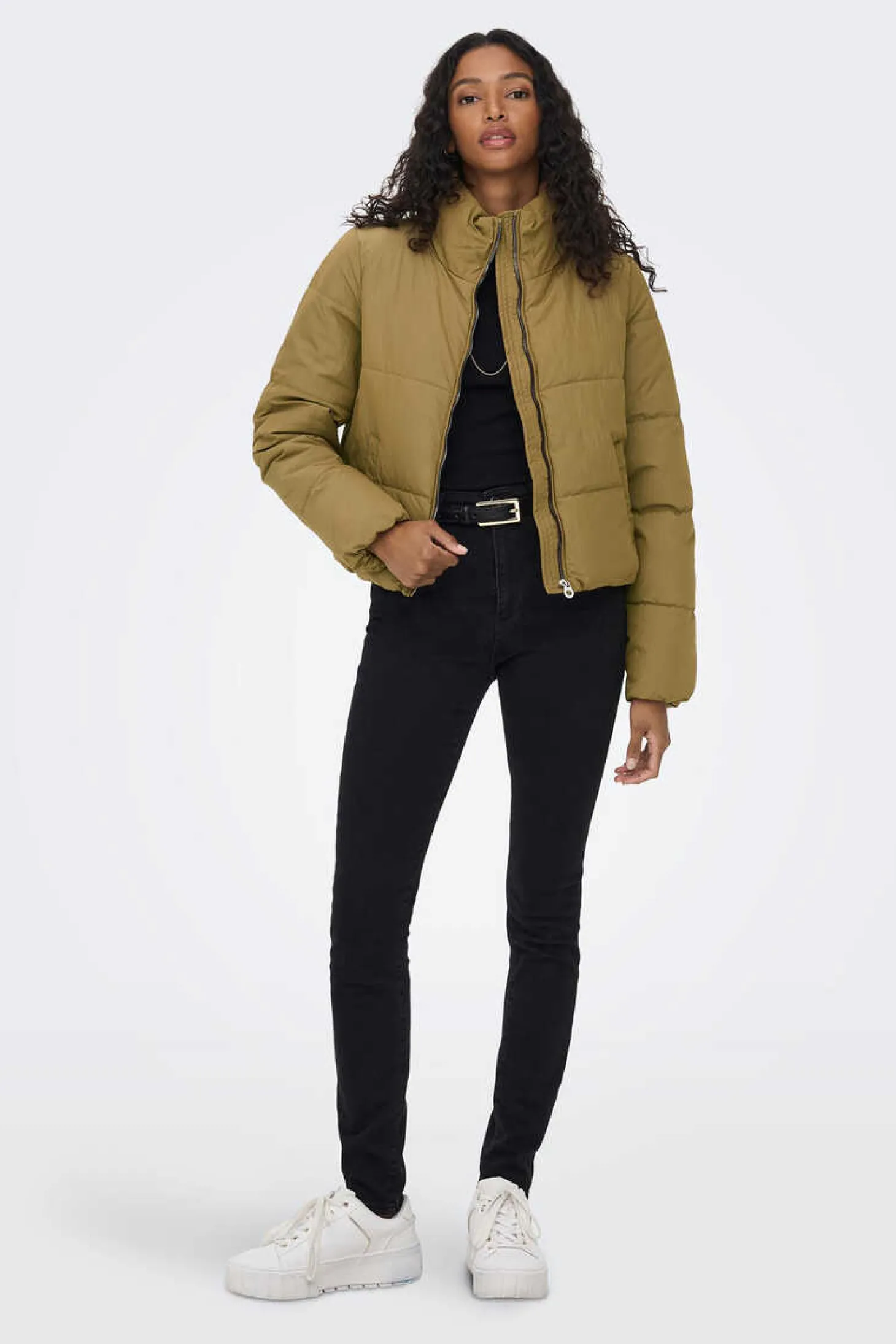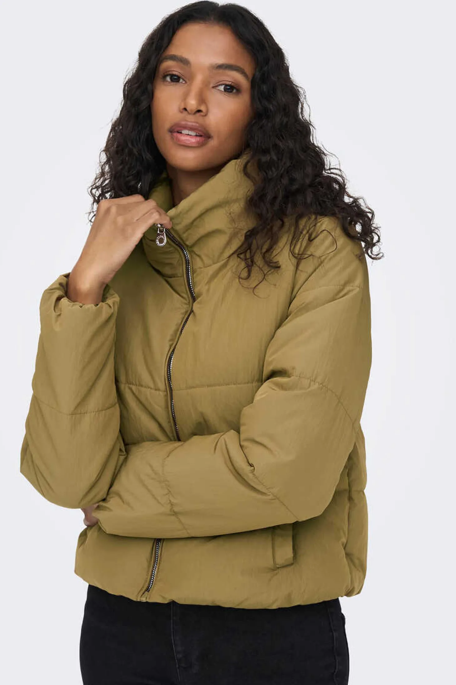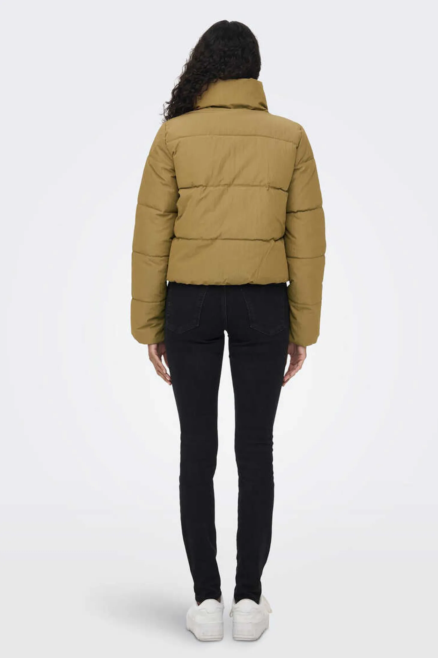 Casaco De Penas Curto Com Fecho-Elciar E Bolsos Laterais.