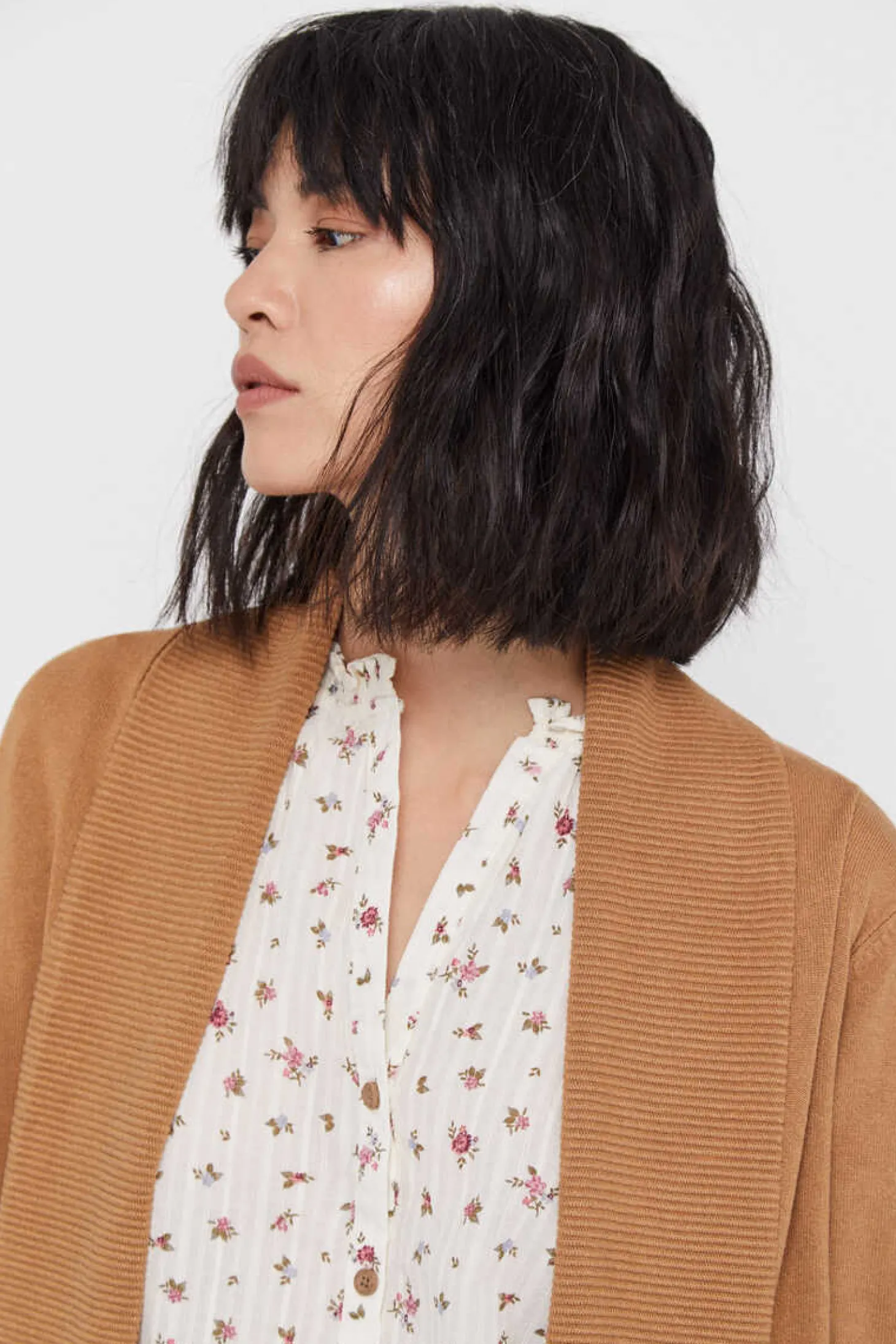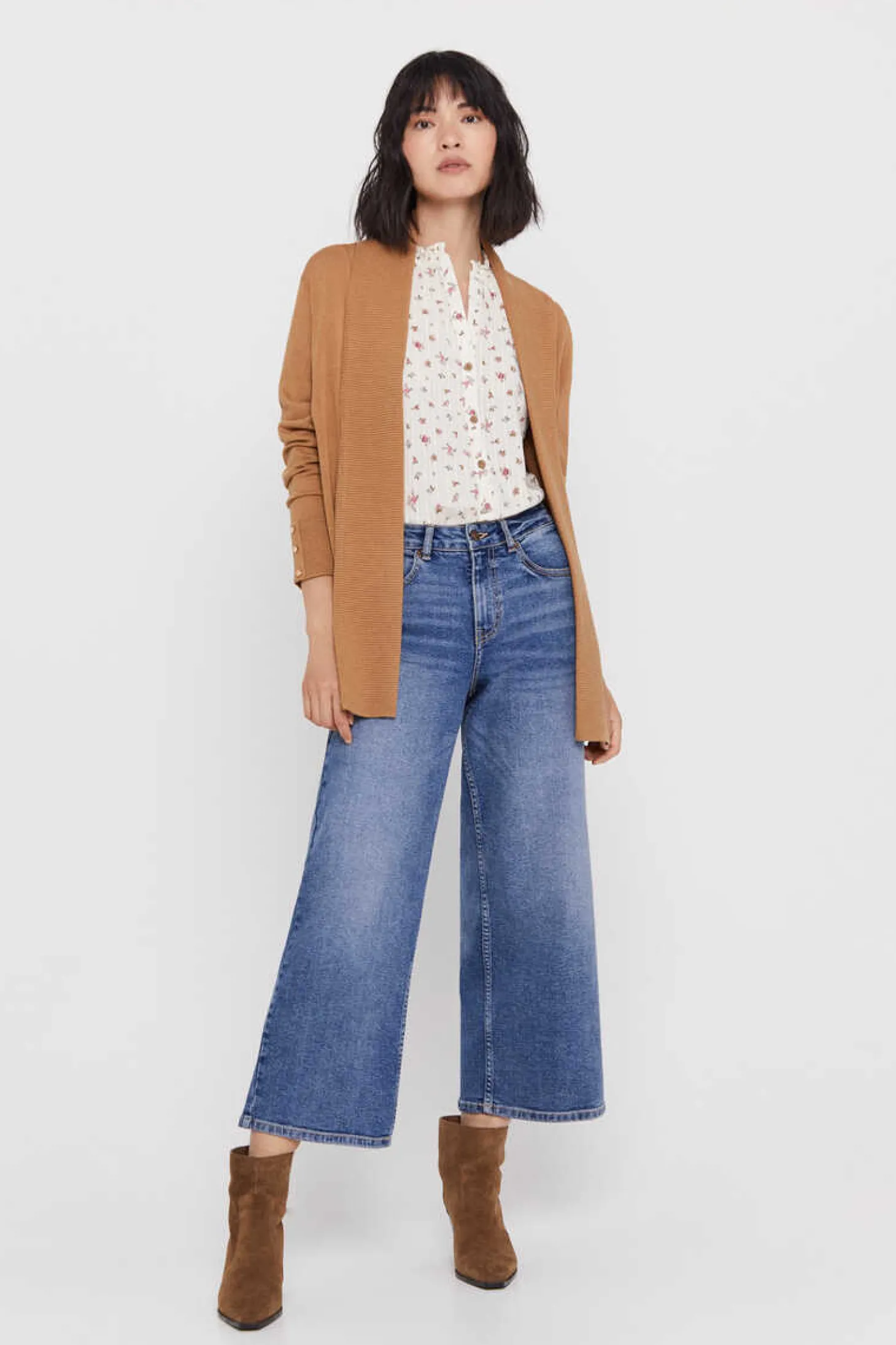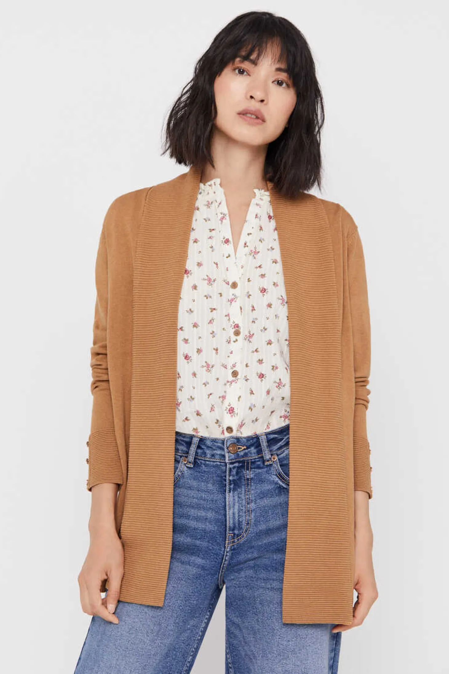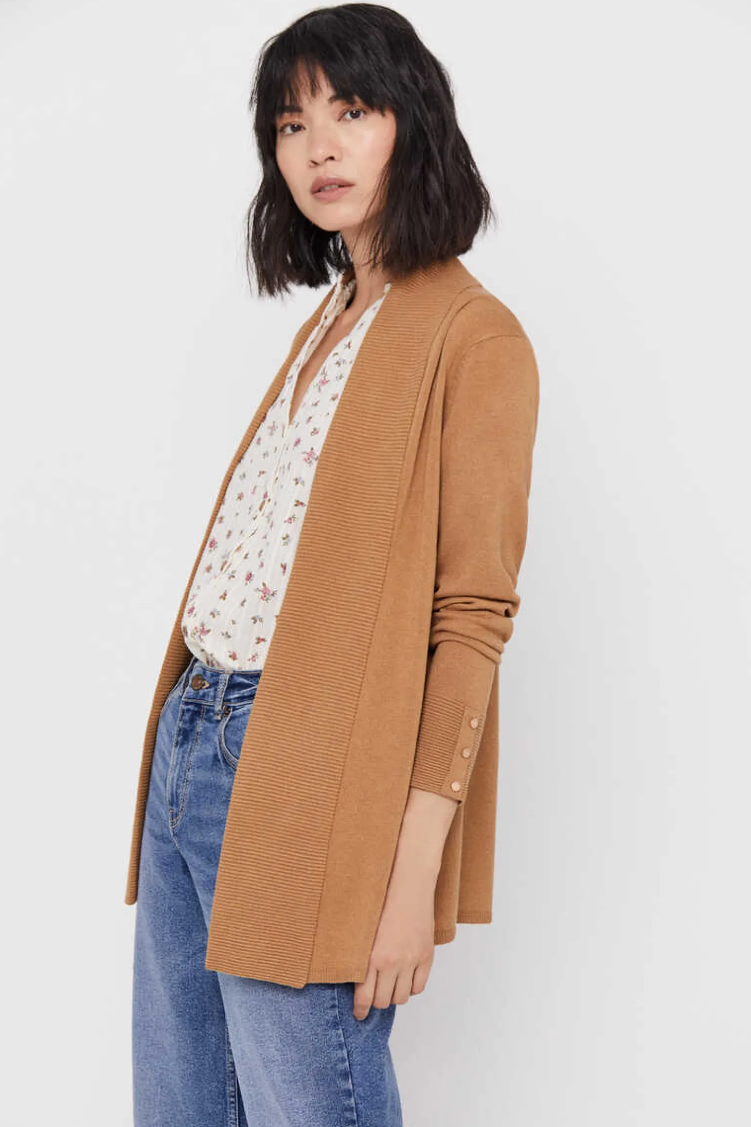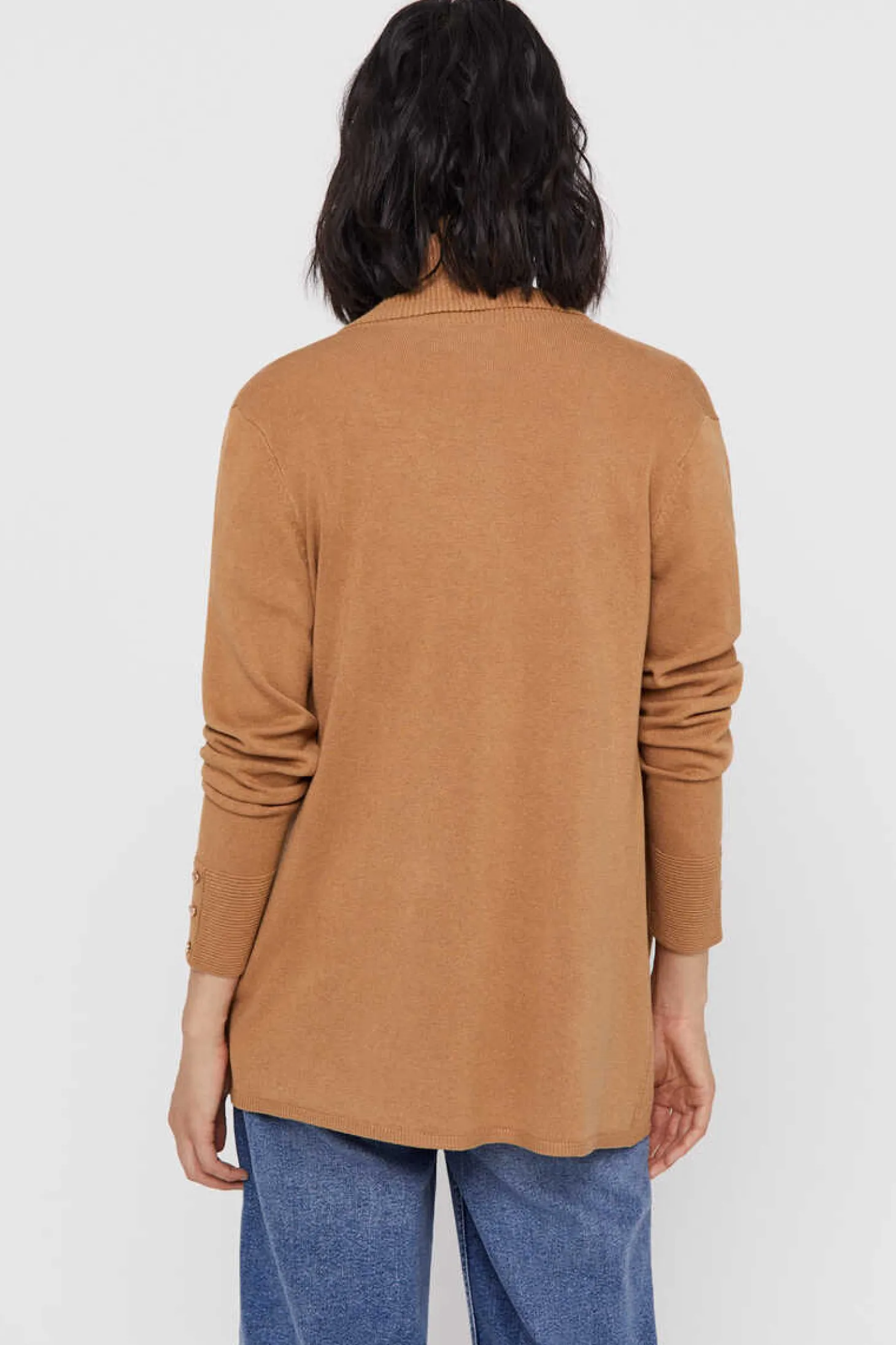 Casaco De Malha Aberta De Gola Xale. Manga Comprida. Corte Reto. Comprimento Anca.