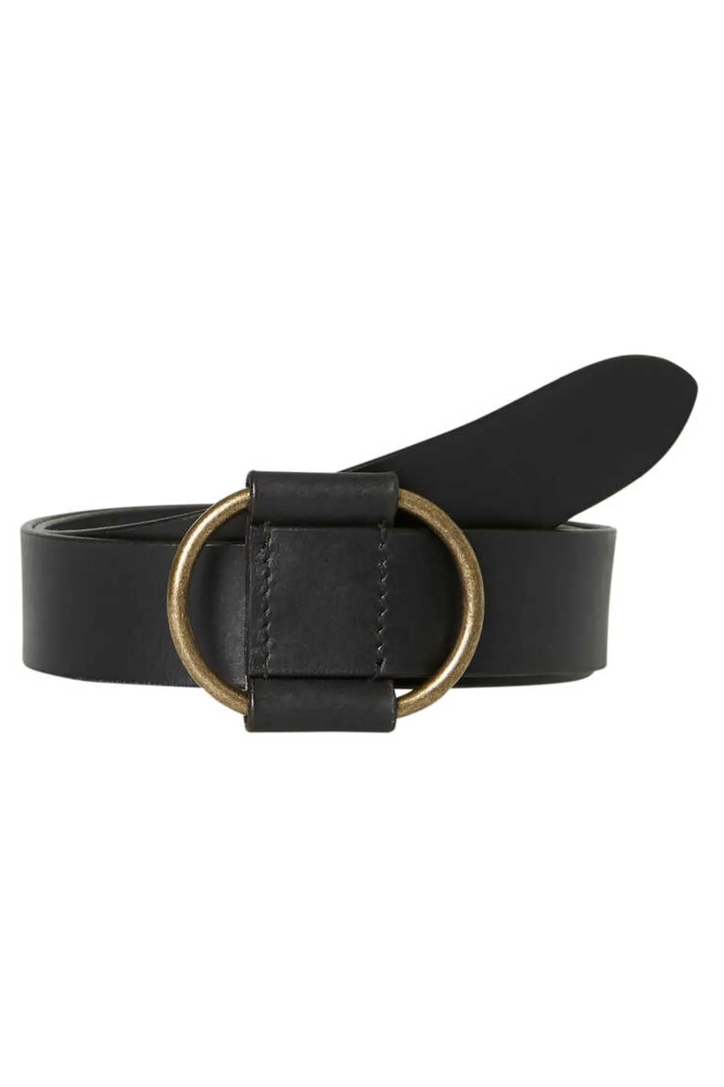 Cinto De Couro Com Fivela Metalica Em Forma Redonda. Medida: 3 Cm De Largura.