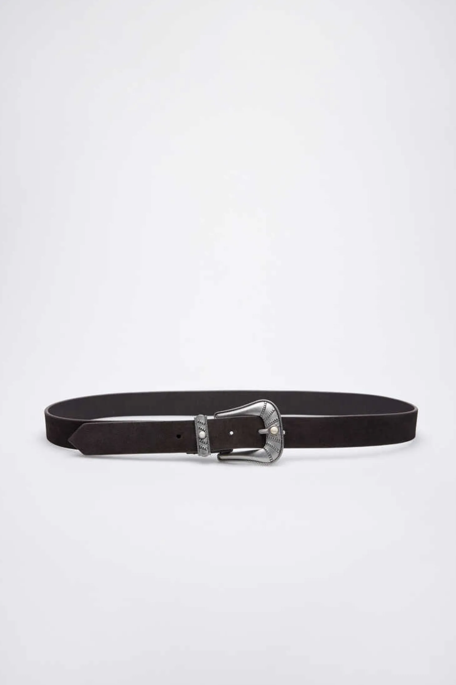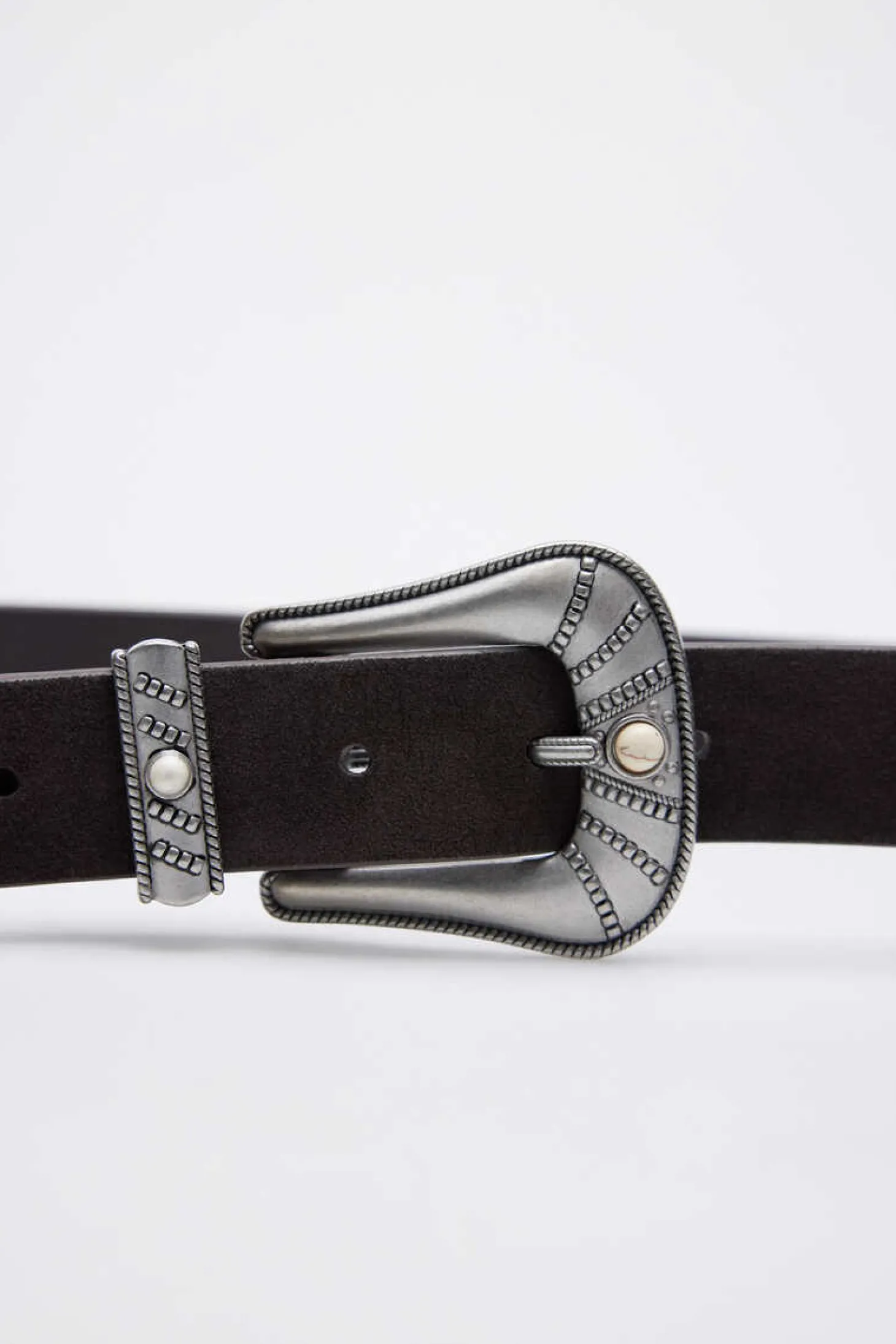 Cinto Com Fivela Cowboy, Lavrada E Com Detalhe De Pedra, Em Croute Lwg