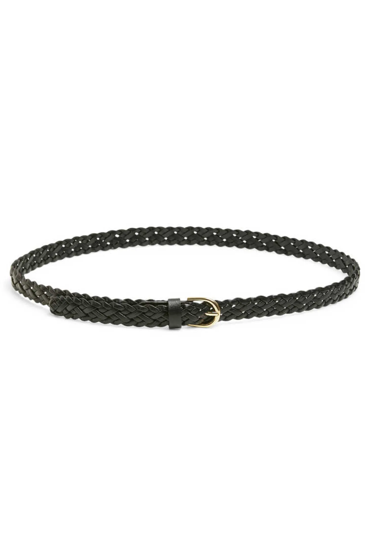 Cinto De Pele Entrancada Com Fivela Metalica.