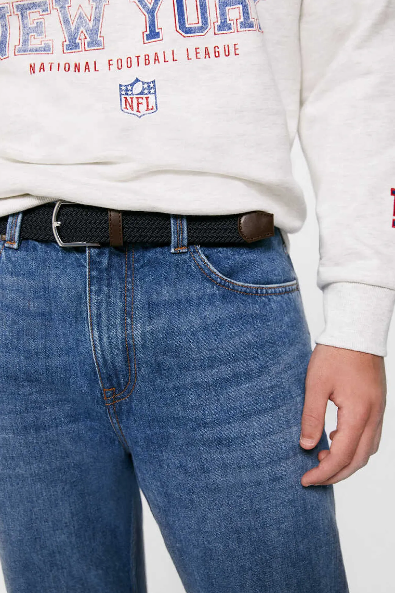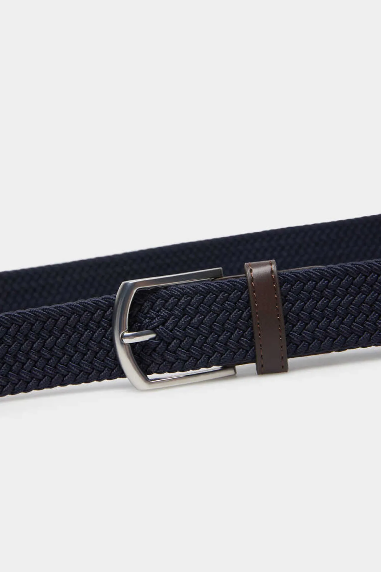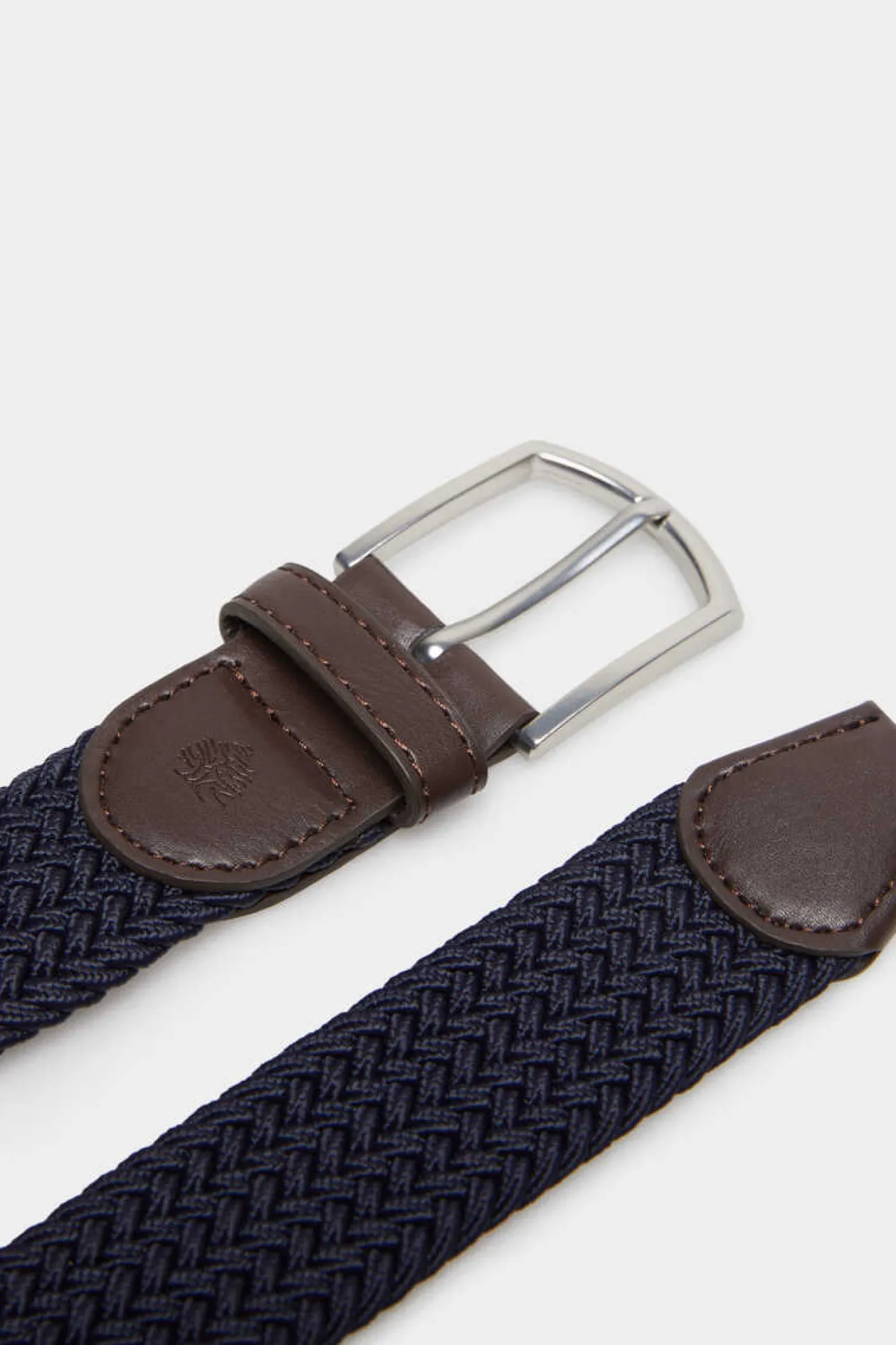 Cinto De Tecido Entrancado Monocolor Com Detalhes De Efeito Pele. Detalhe De Logo Gravado. Largura: 3,5 Cm.