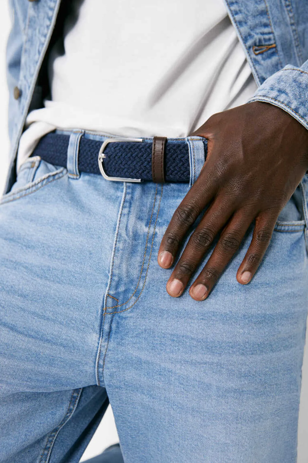 Cinto De Tecido Entrancado Em Tecido Jaspeado Com Detalhes De Efeito Pele. Detalhe De Logo Gravado. Largura: 3,5 Cm.