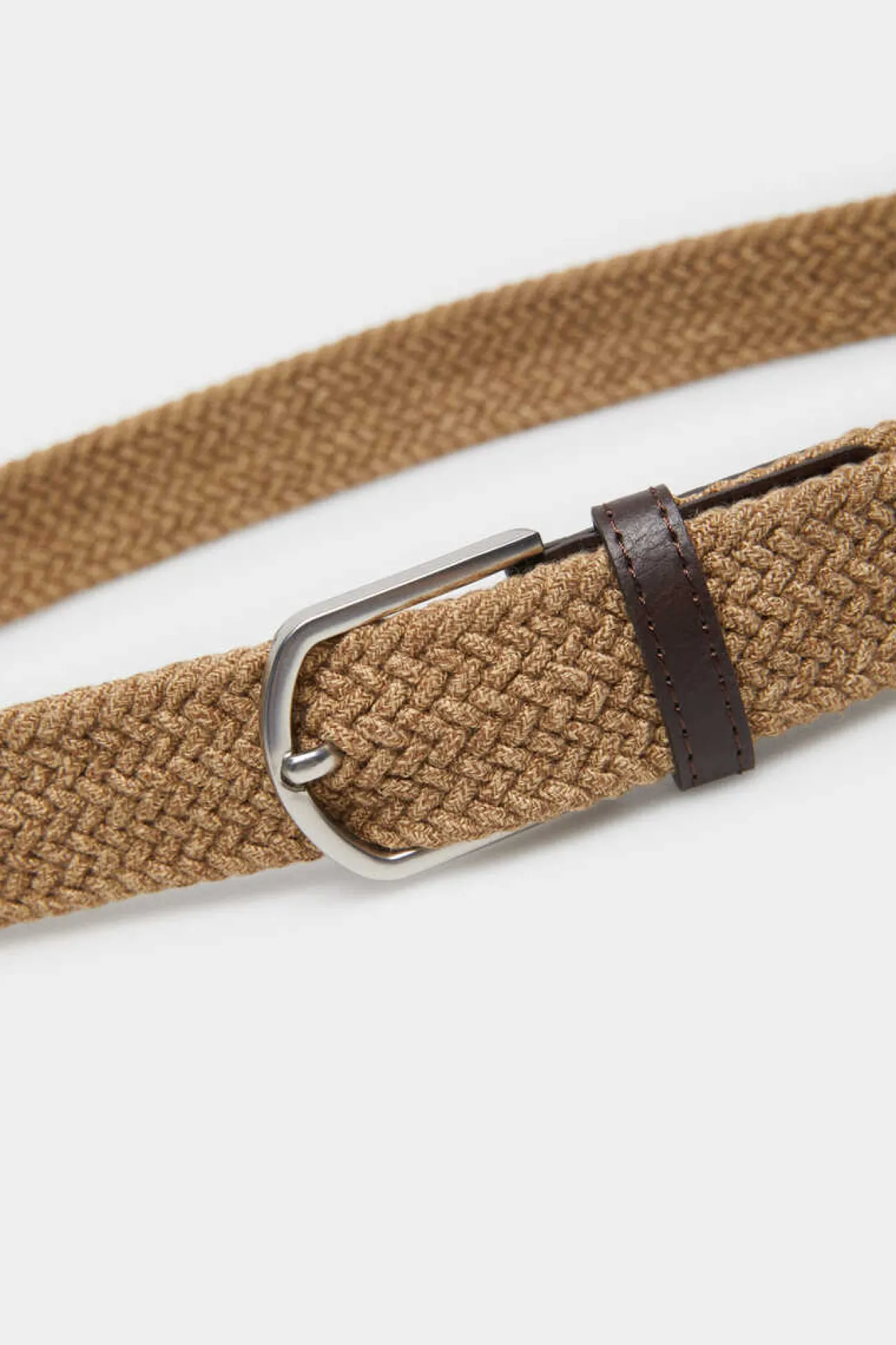 Cinto De Tecido Entrancado Em Tecido Jaspeado Com Detalhes De Efeito Pele. Detalhe De Logo Gravado. Largura: 3,5 Cm.