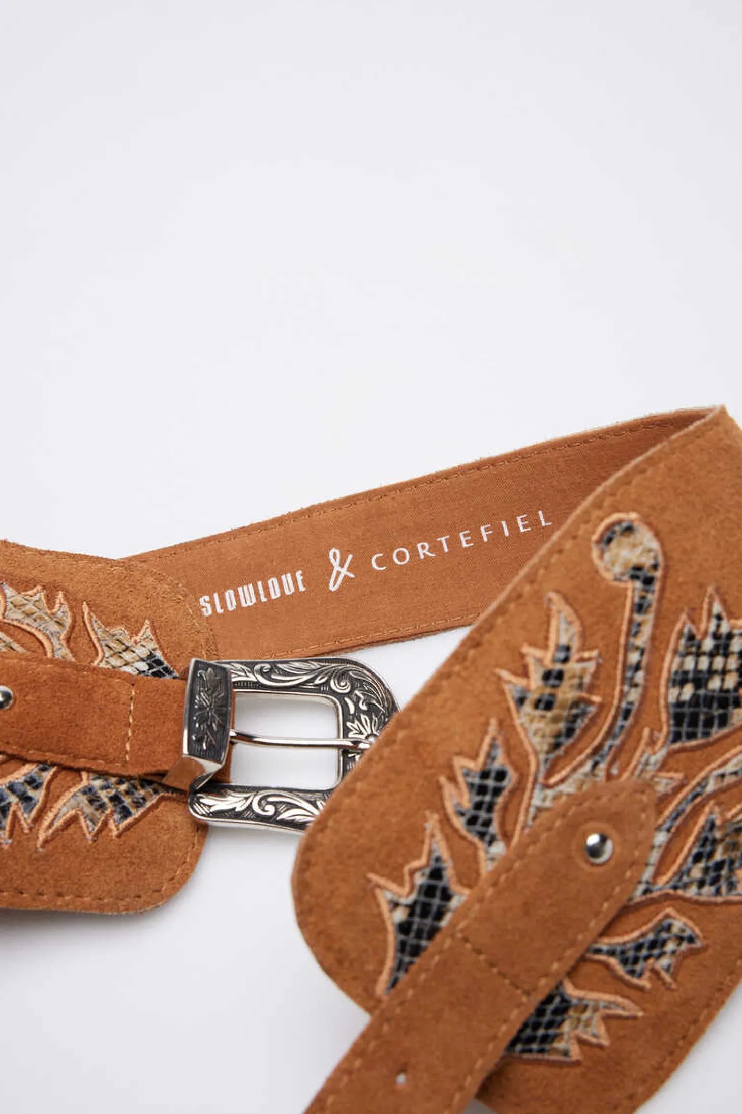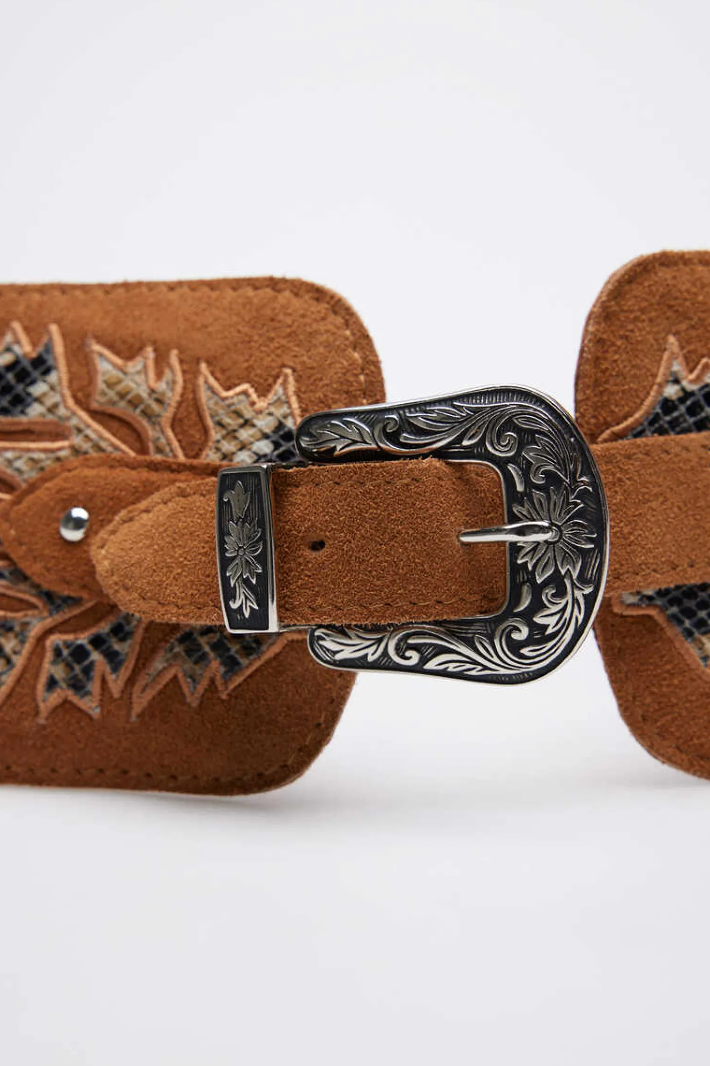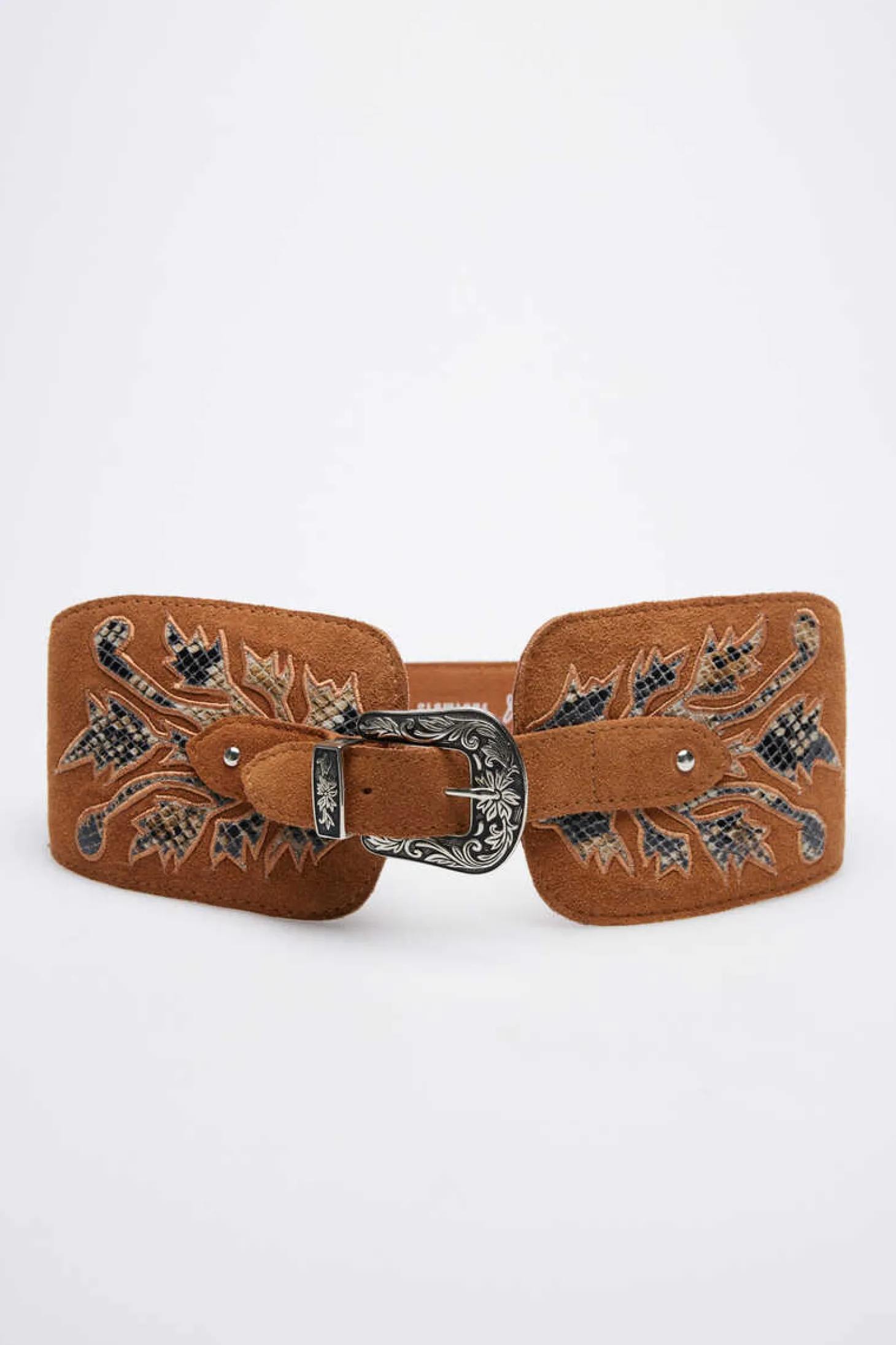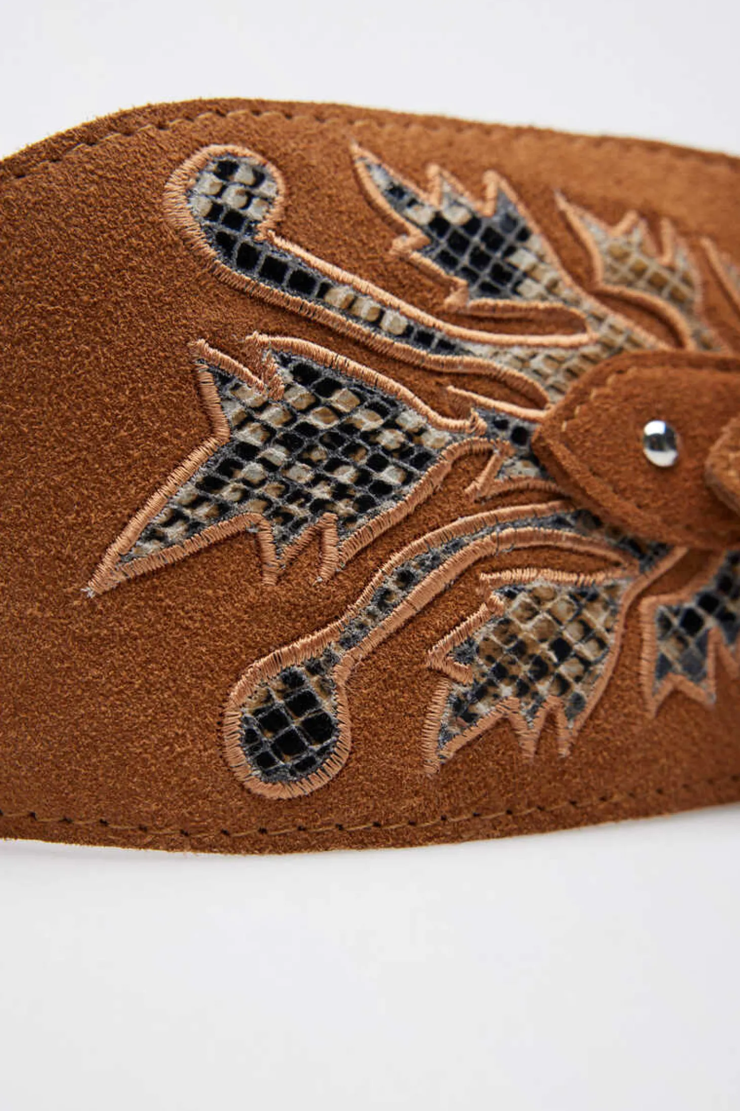 Cinto Faixa Em Croute Lwg Com Aplicacao De Pele Com Efeito Animal E Tachinhas Metalicas. Largura Maxima 10 Cm E Minimo 4 Cm