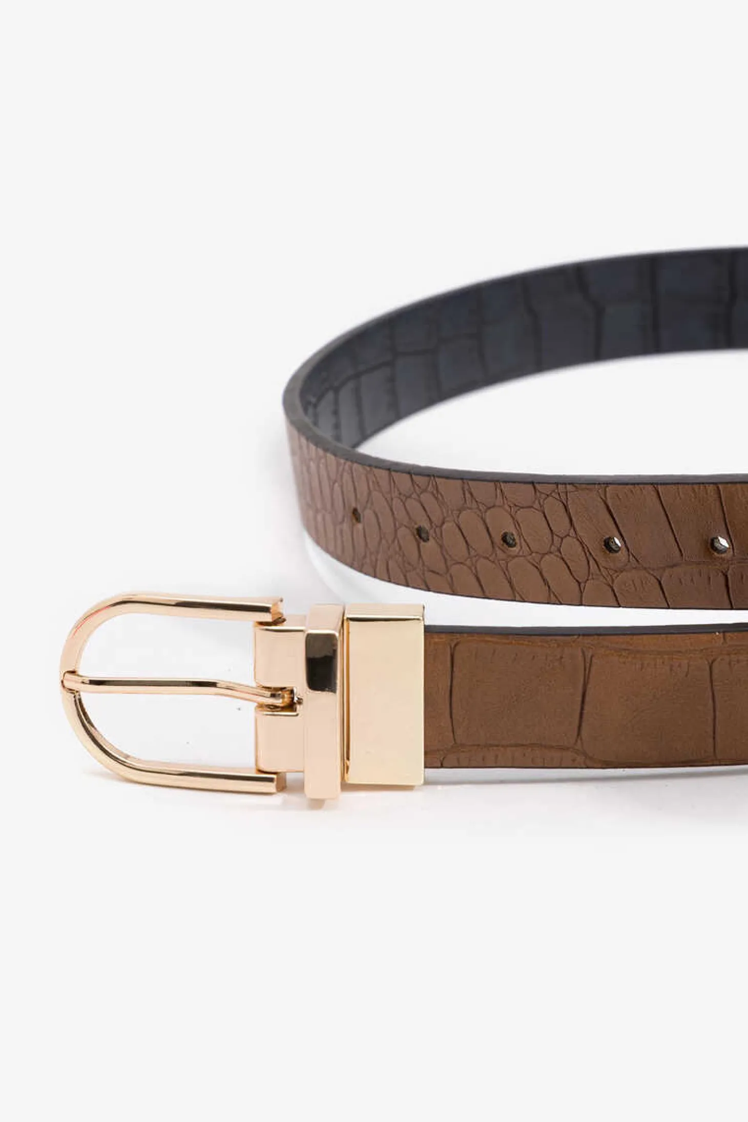 Cinto Reversivel Com Design Estreito E Fivela Dourada.