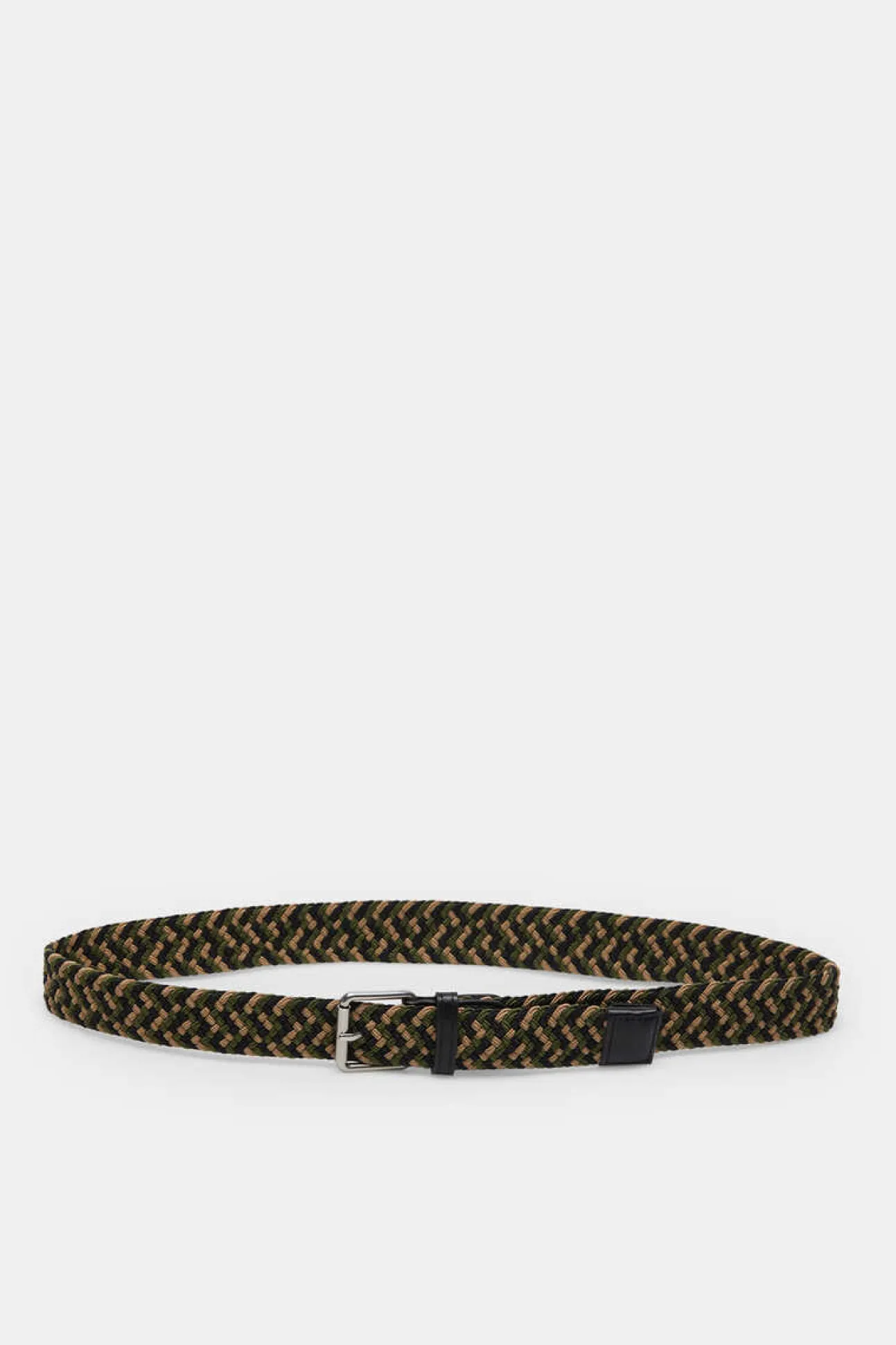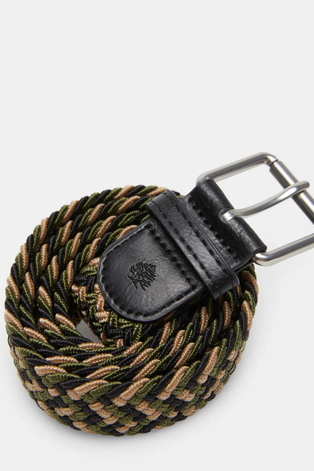 Cinto De Tecido Entrancado Monocolor Com Detalhes De Efeito Pele. Detalhe De Logo Gravado. Largura: 3,5 Cm.