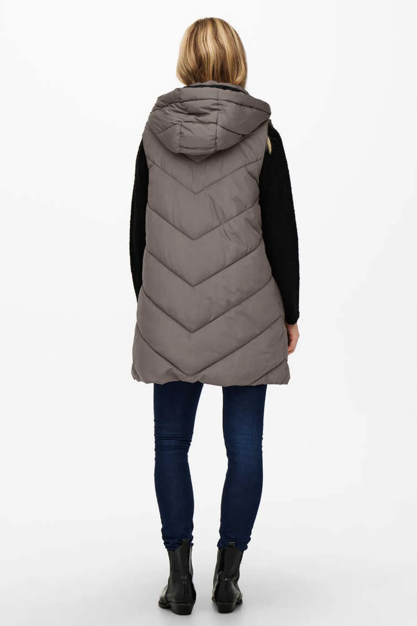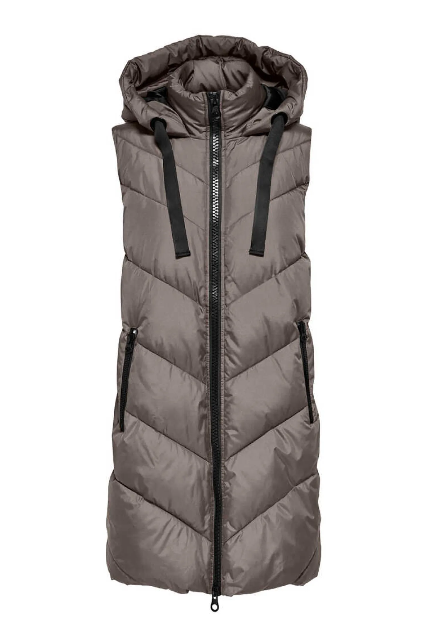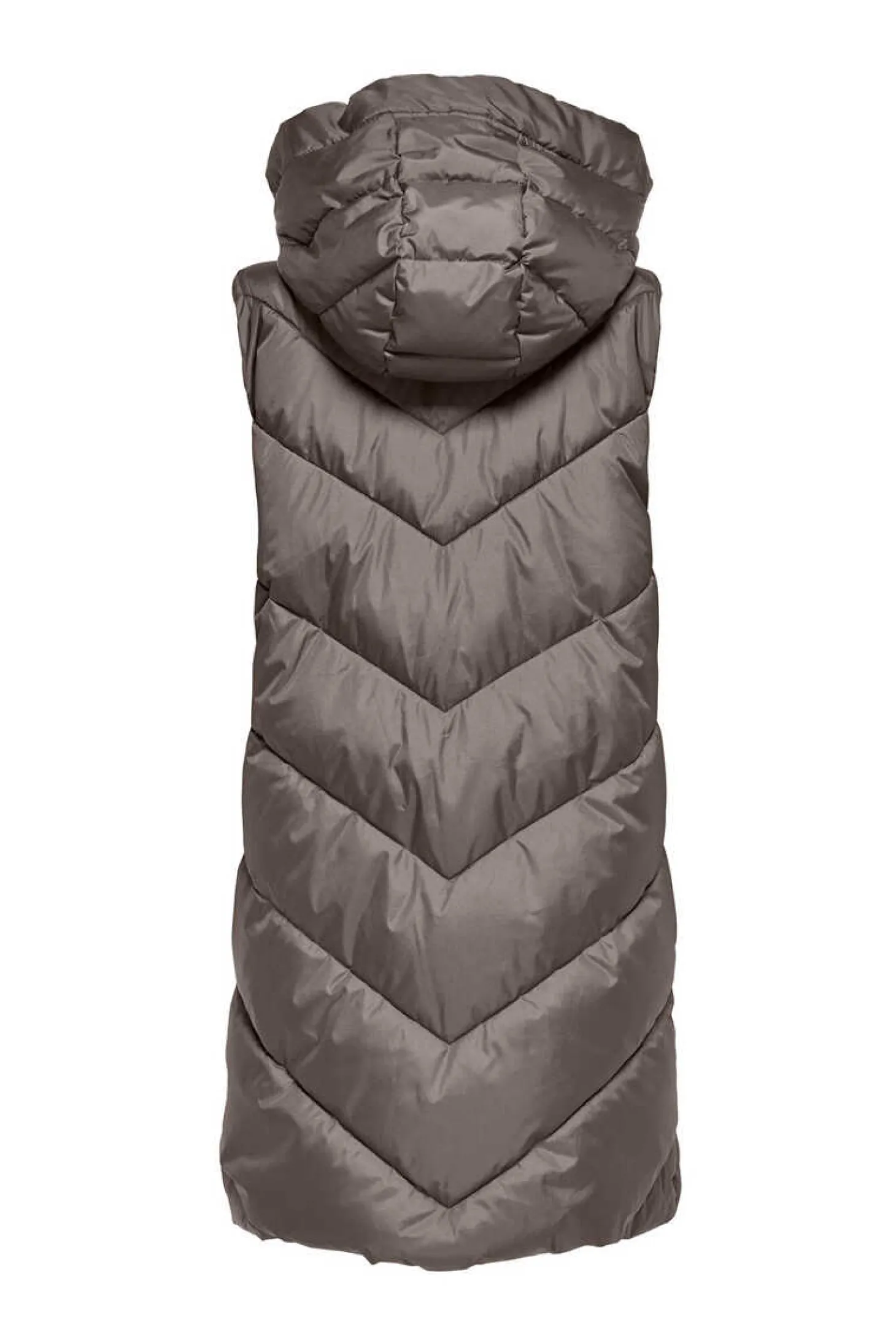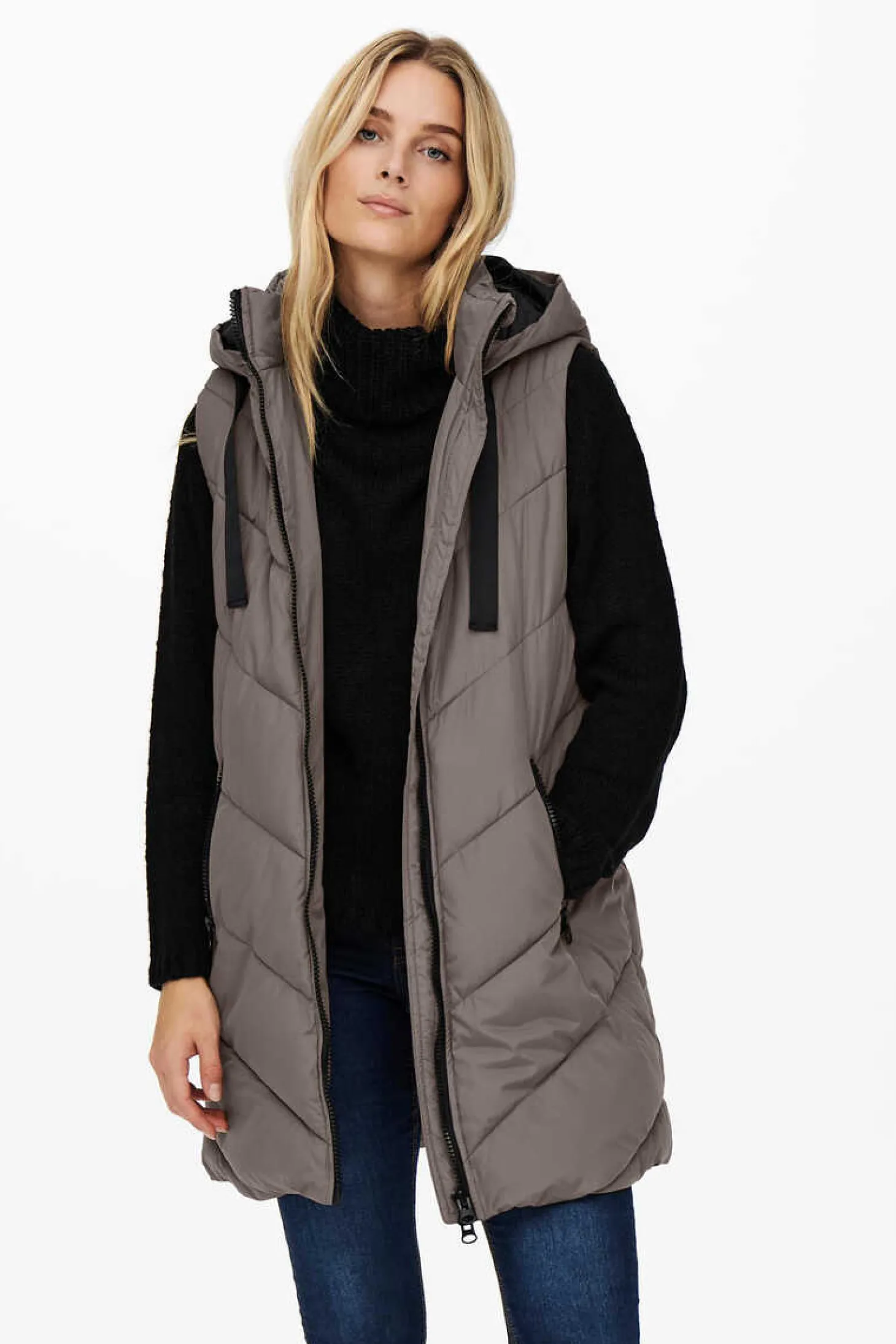 Colete Acolchoado Com Capuz E Cordoes Ajustaveis. Fecho-Eclair Frontal. Bolsos Laterais Com Fecho-Eclair