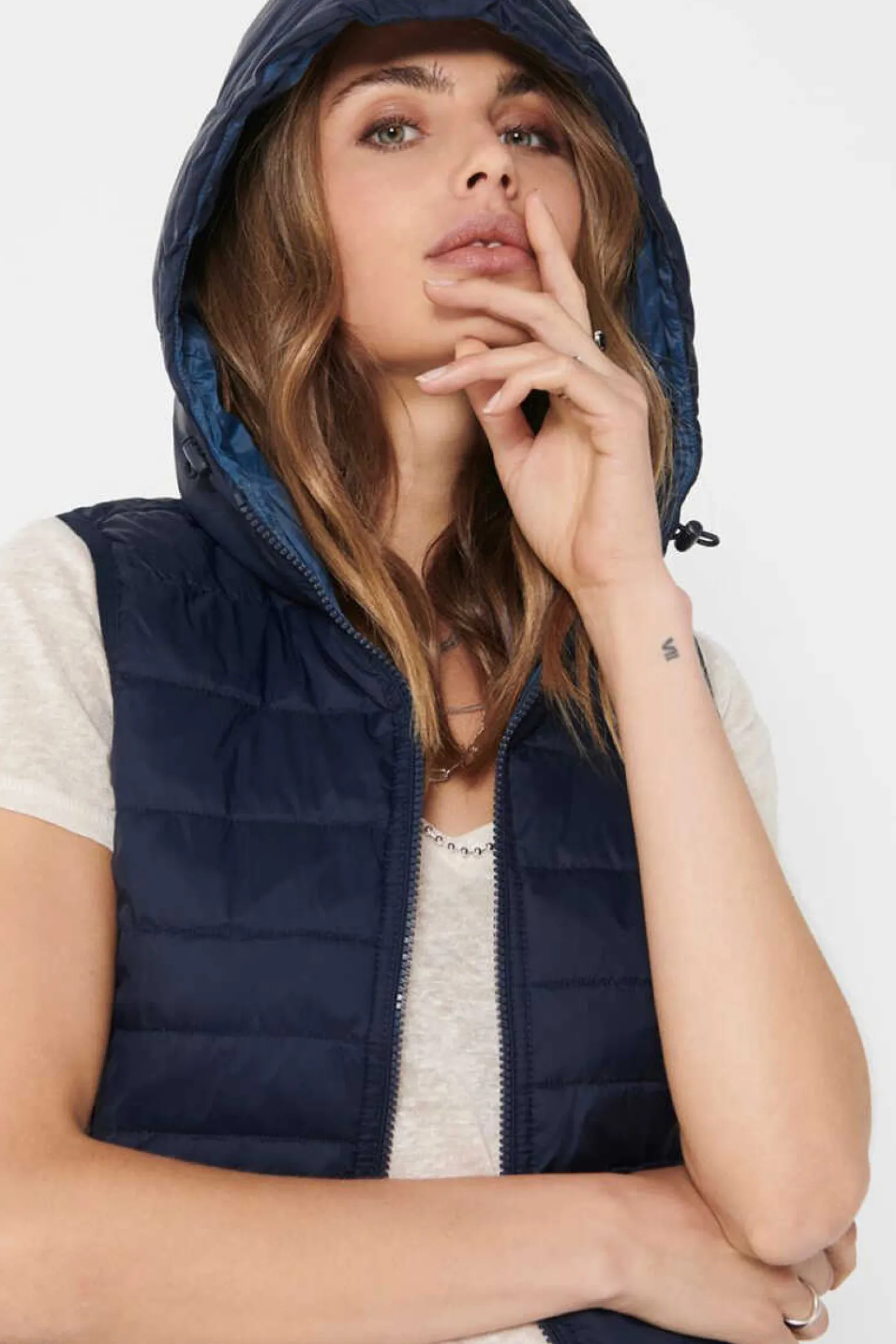 Colete Acolchoado Com Fecho Mediante Fecho-Eclair Dianteiro, Dois Bolsos Laterais E Capuz.