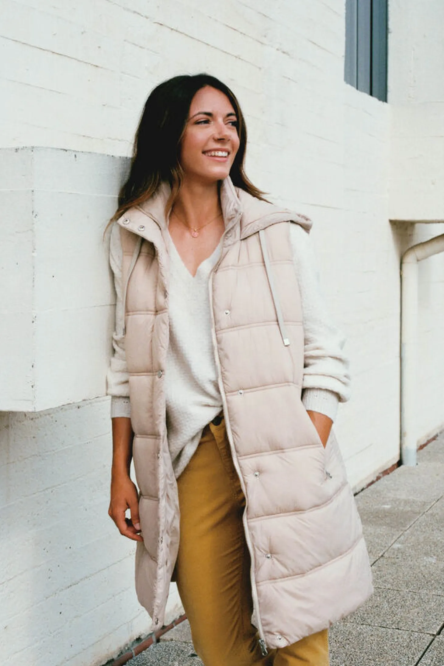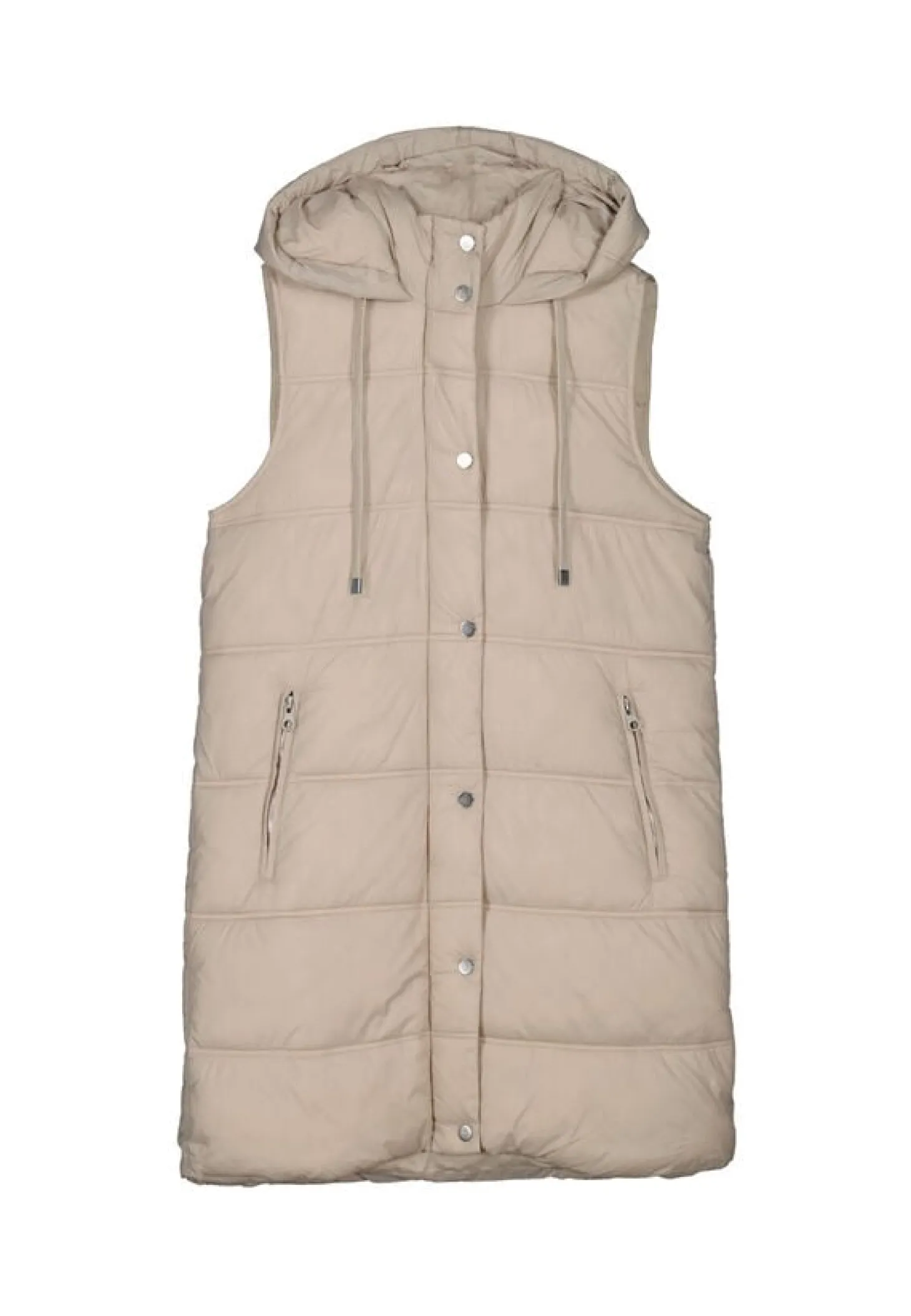 Colete Comprido Acolchoado Com Capuz Com Cordoes, Com Bolsos Laterais Com Fecho-Eclair, Fecho De Botoes De Pressao Na Frente, Com Enchimento De Poliester Recicl … Ado.Ver Mais