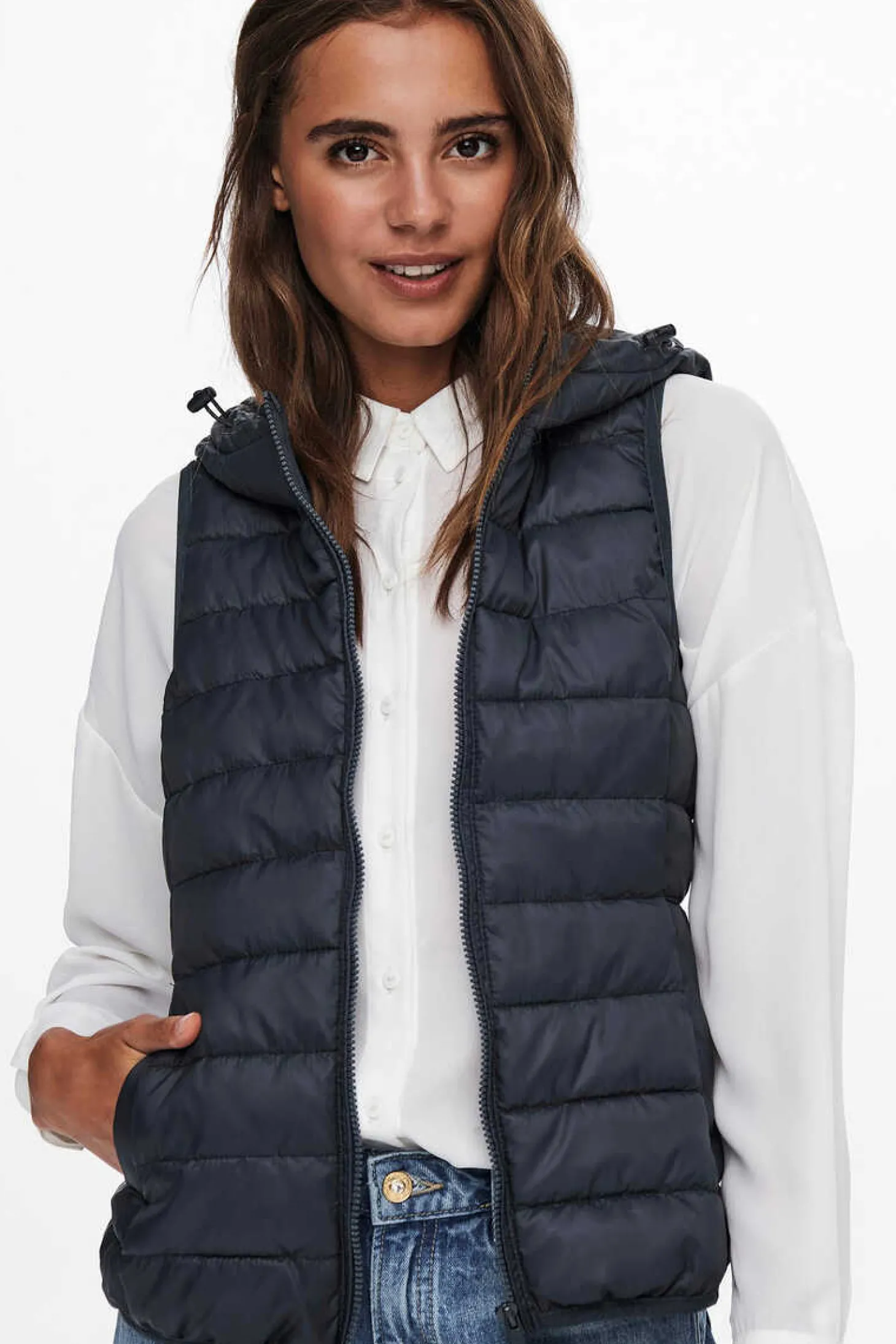 Colete Ultraleve Com Capuz, Fecho De Fecho-Eclair E Bolsos Laterais.
