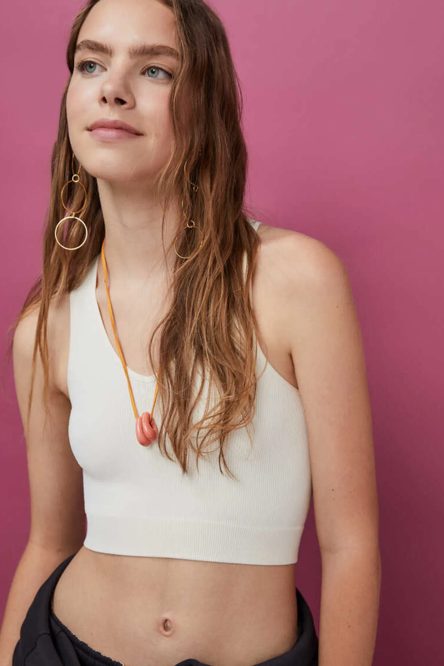 Crop Top Com Decote Em V De Cor Verde-Escura, Em Tecido Sem Costuras, Canelado.