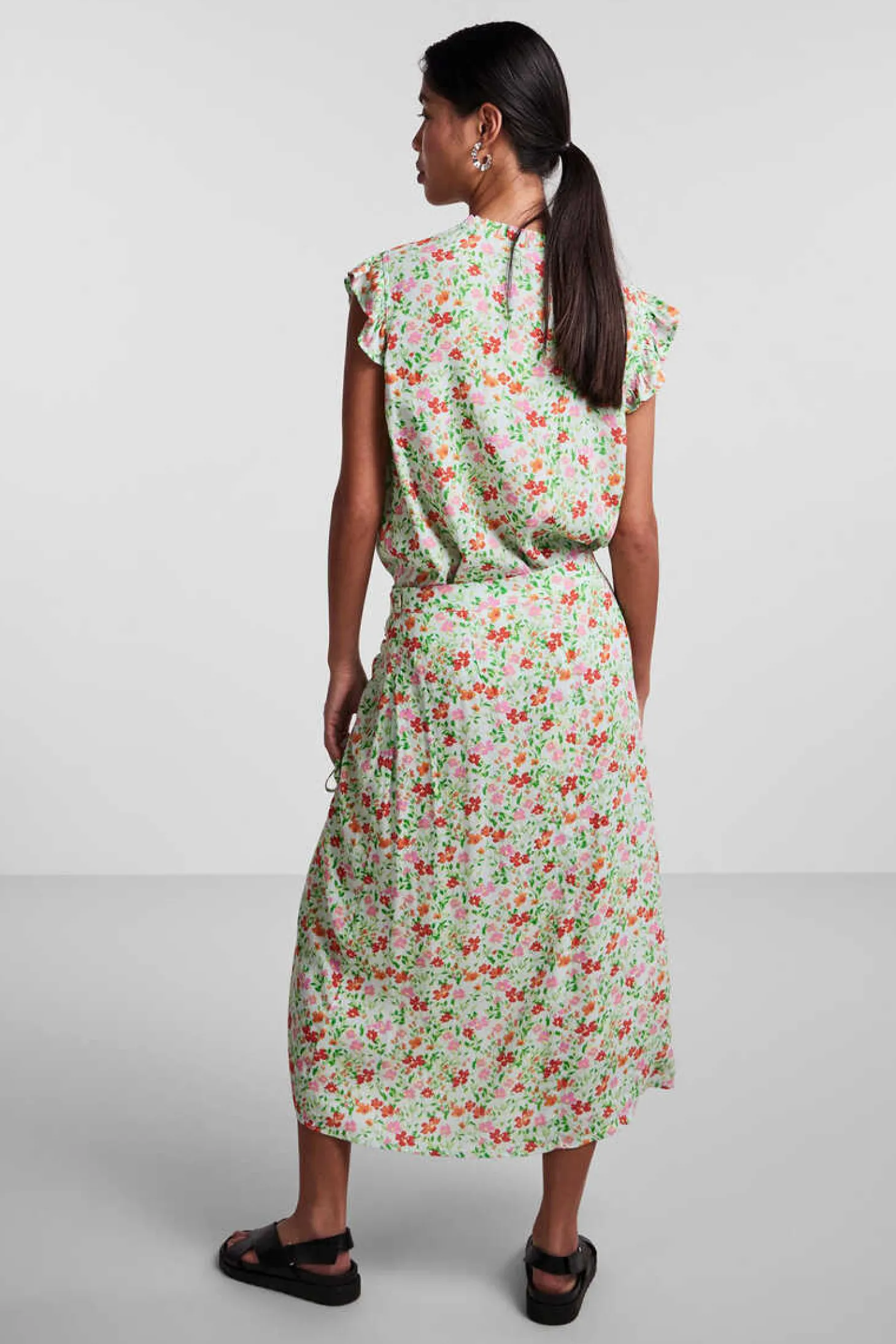 Falda Midi Con Estampado Floral. Detall Fruncido En Un Lateral