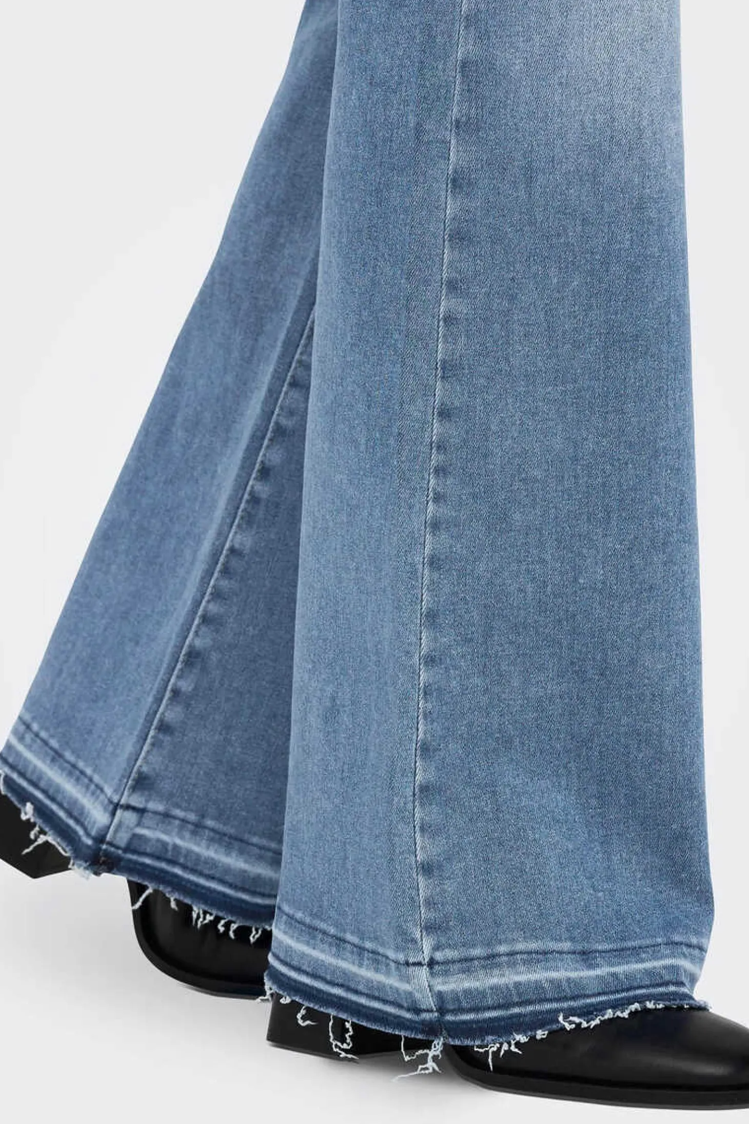 Jeans Boca De Sino, Com Cintura Alta E 5 Bolsos.