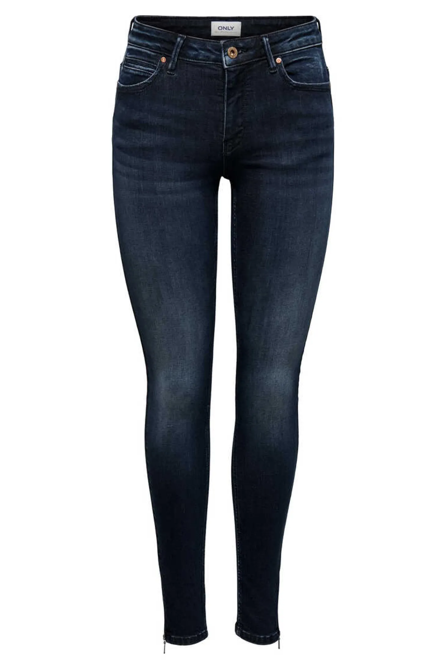 Jeans Cigarro Ajustados Ate Os Tornozelos, Com Cintura Media E 5 Bolsos.