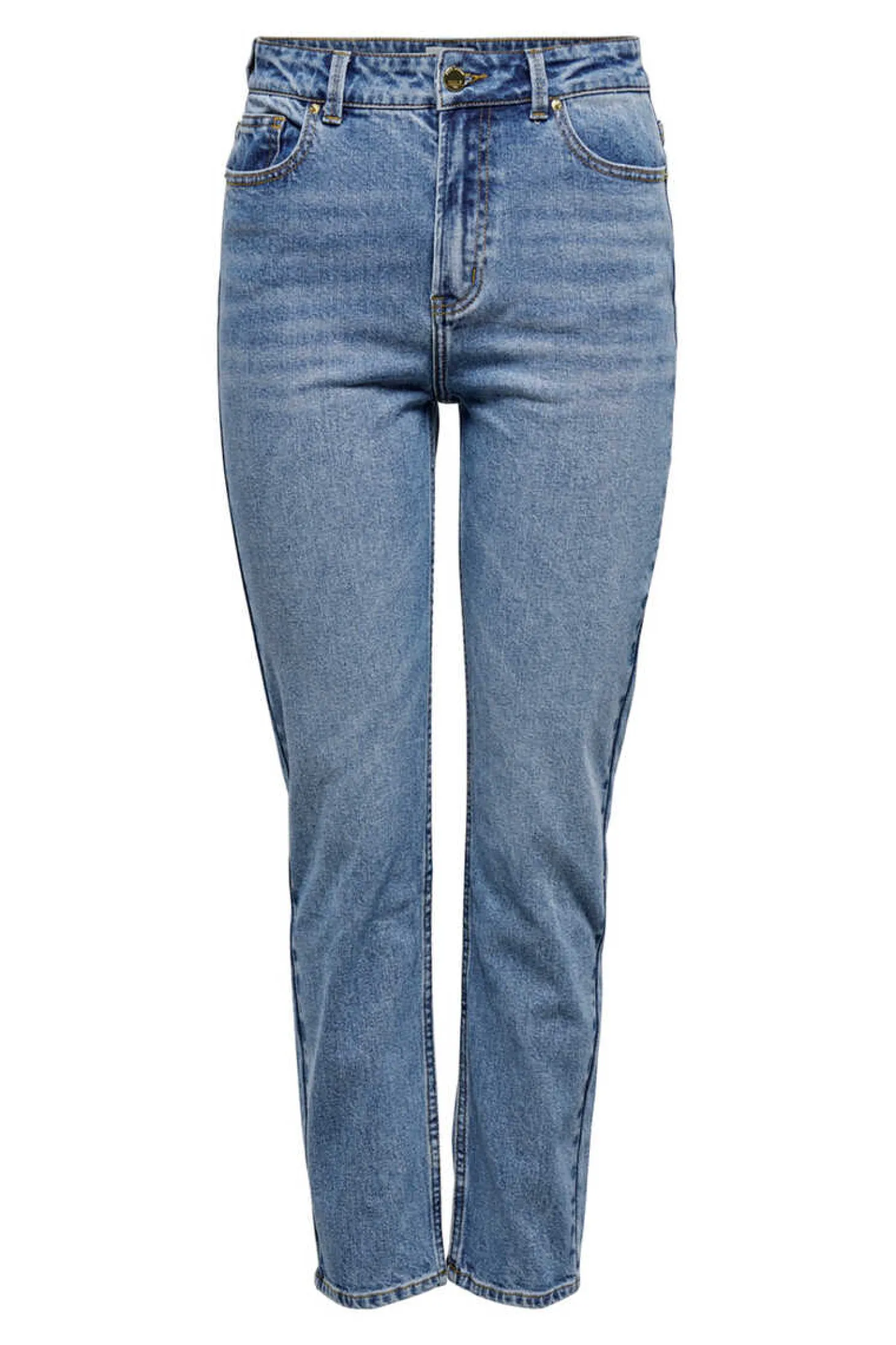 Jeans De Tiro Alto Con Cinco Bolsillos Y Cierre Delantero De Cremallera Y Boton.