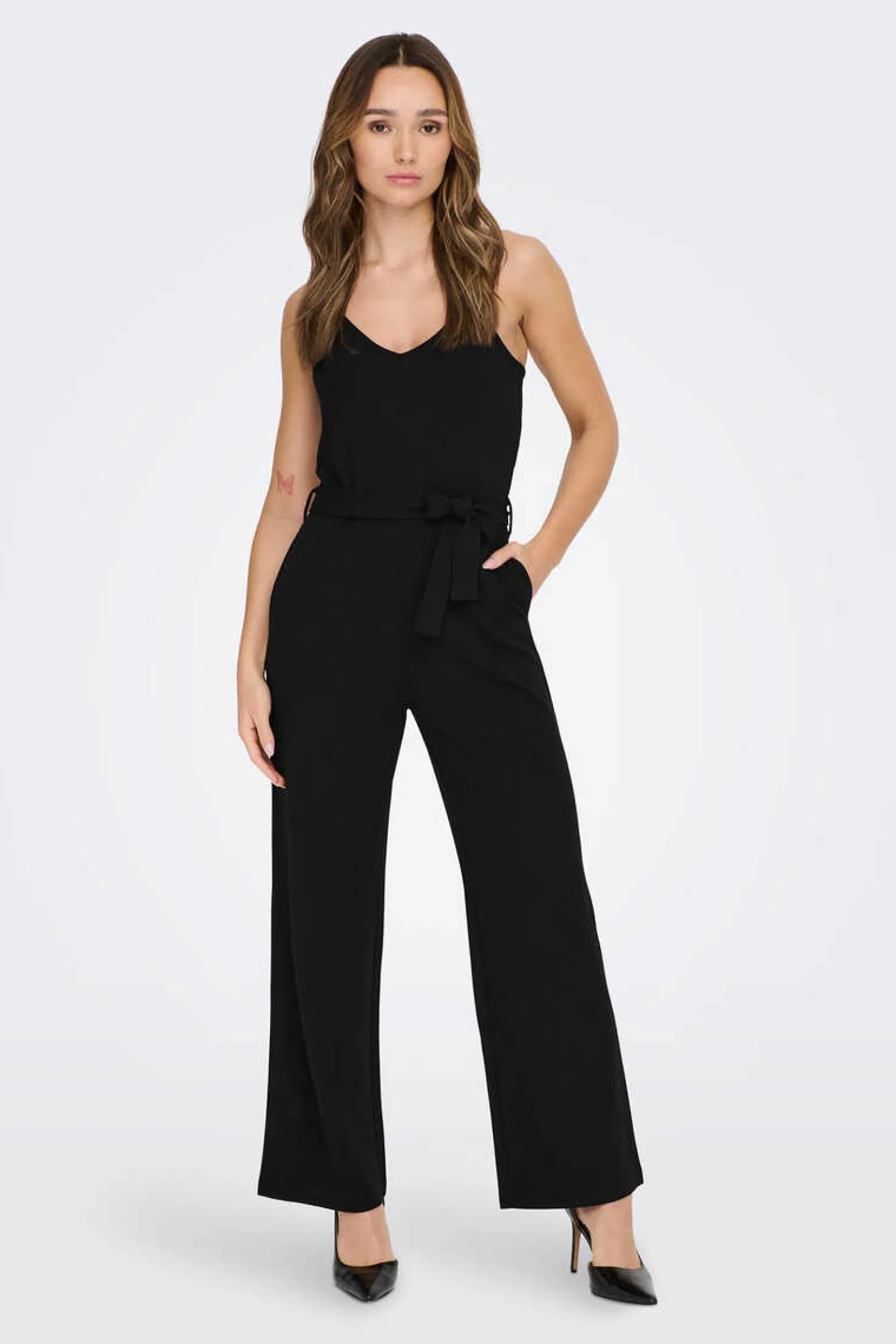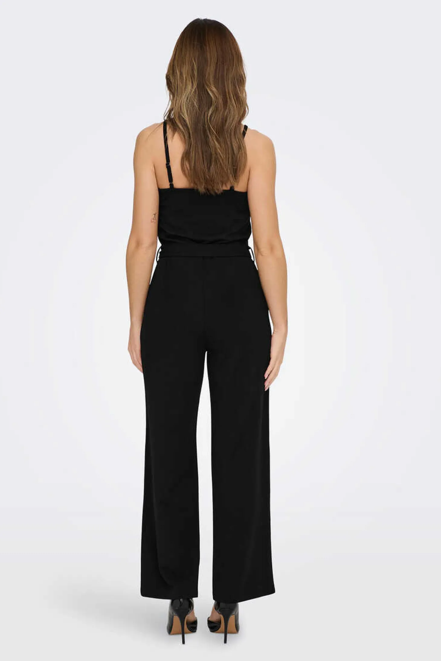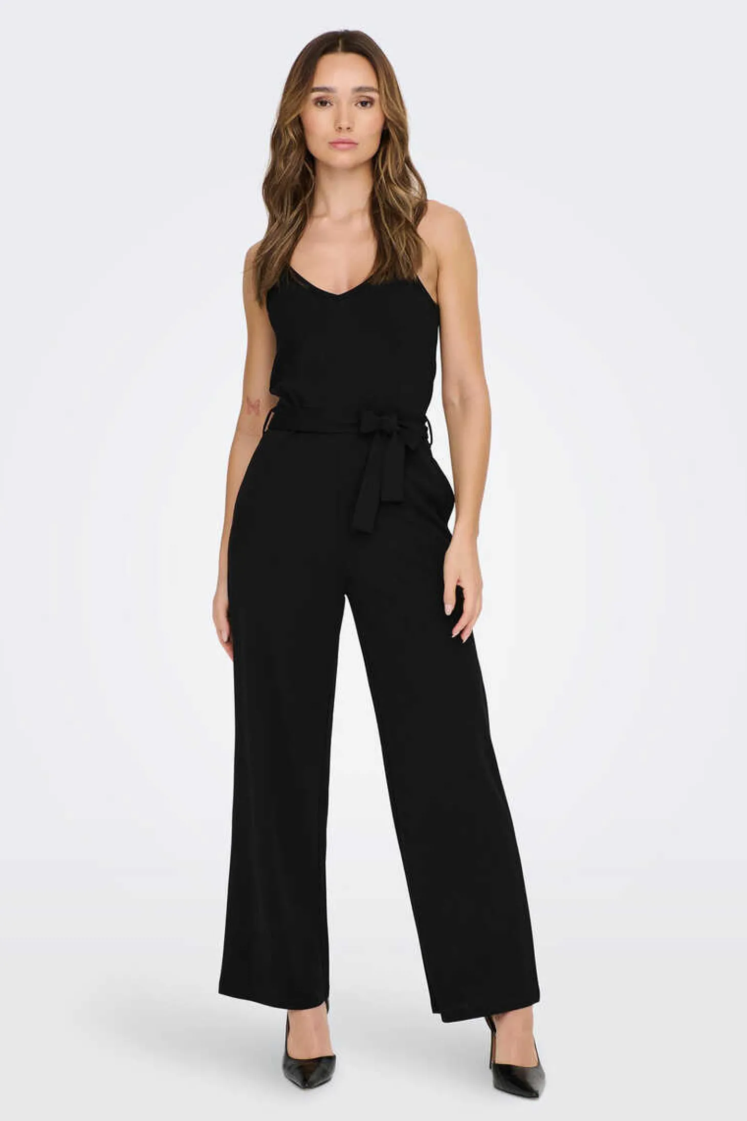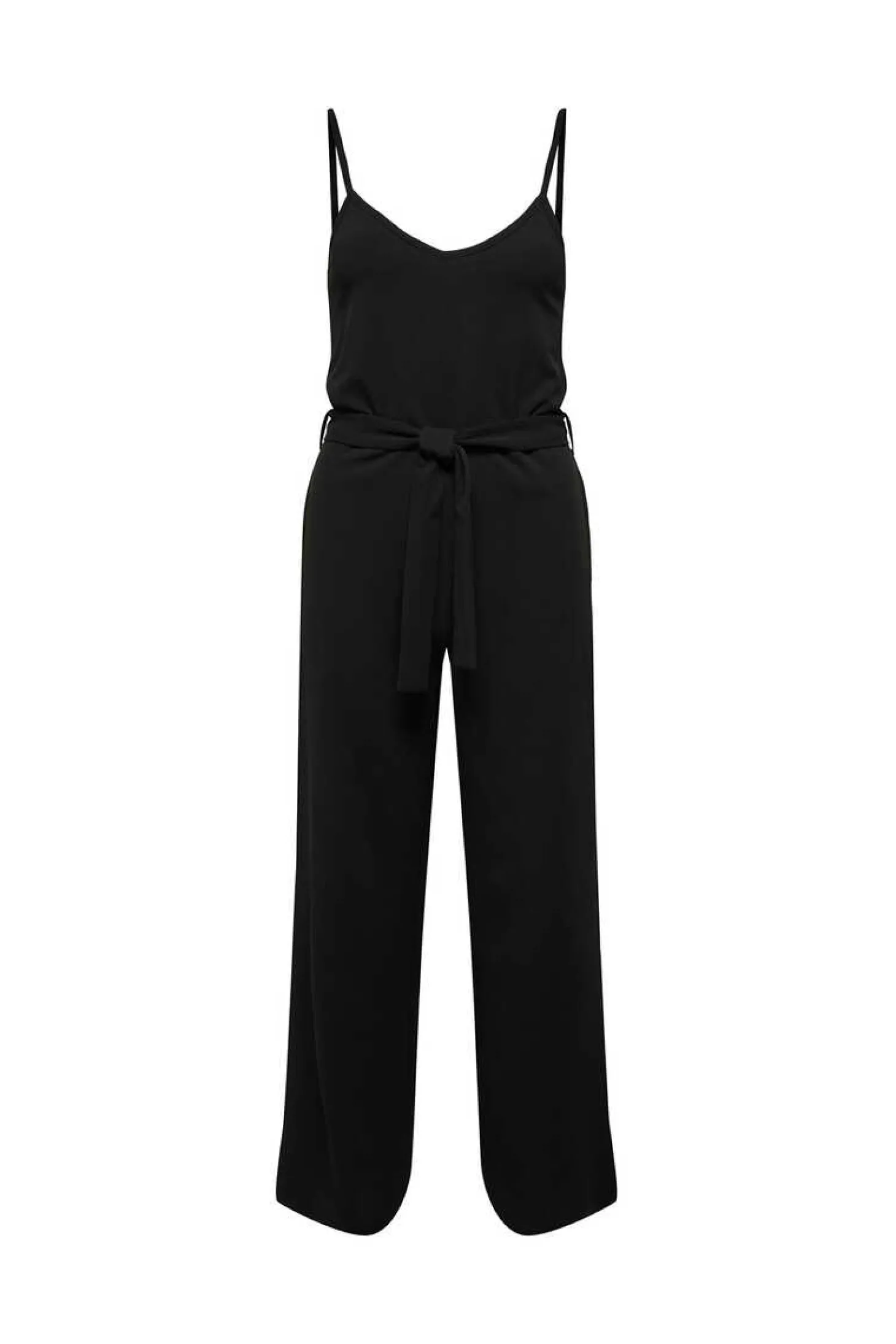 Macacao Comprido Fluido Sem Mangas. Cintura Com Laco Ajustavel.