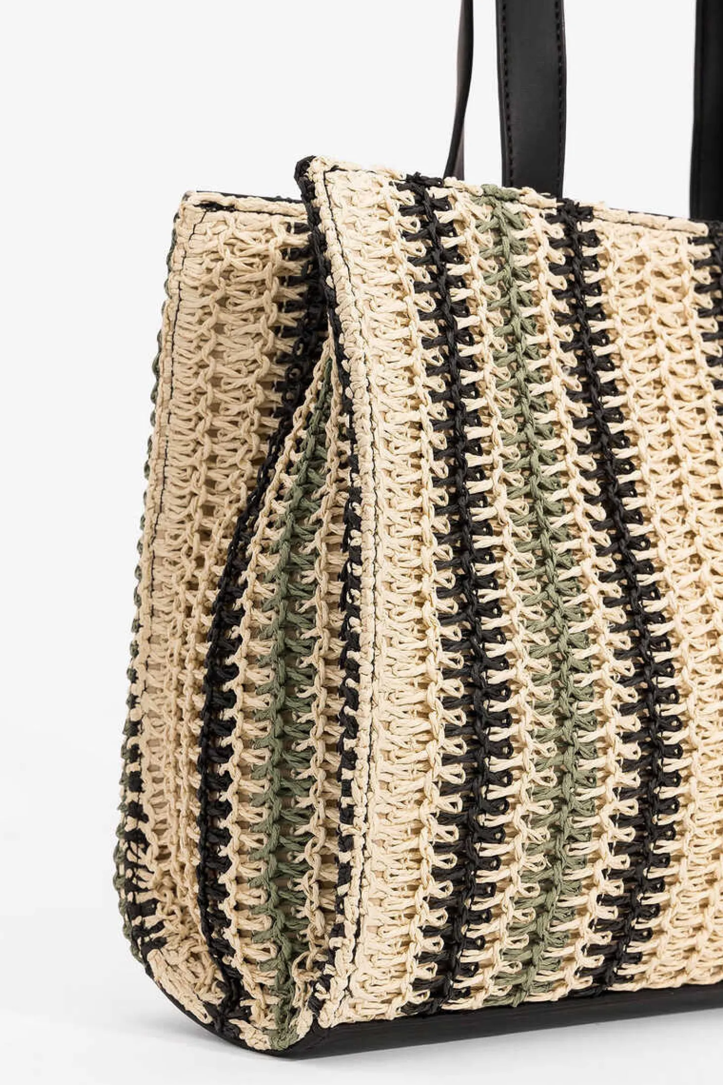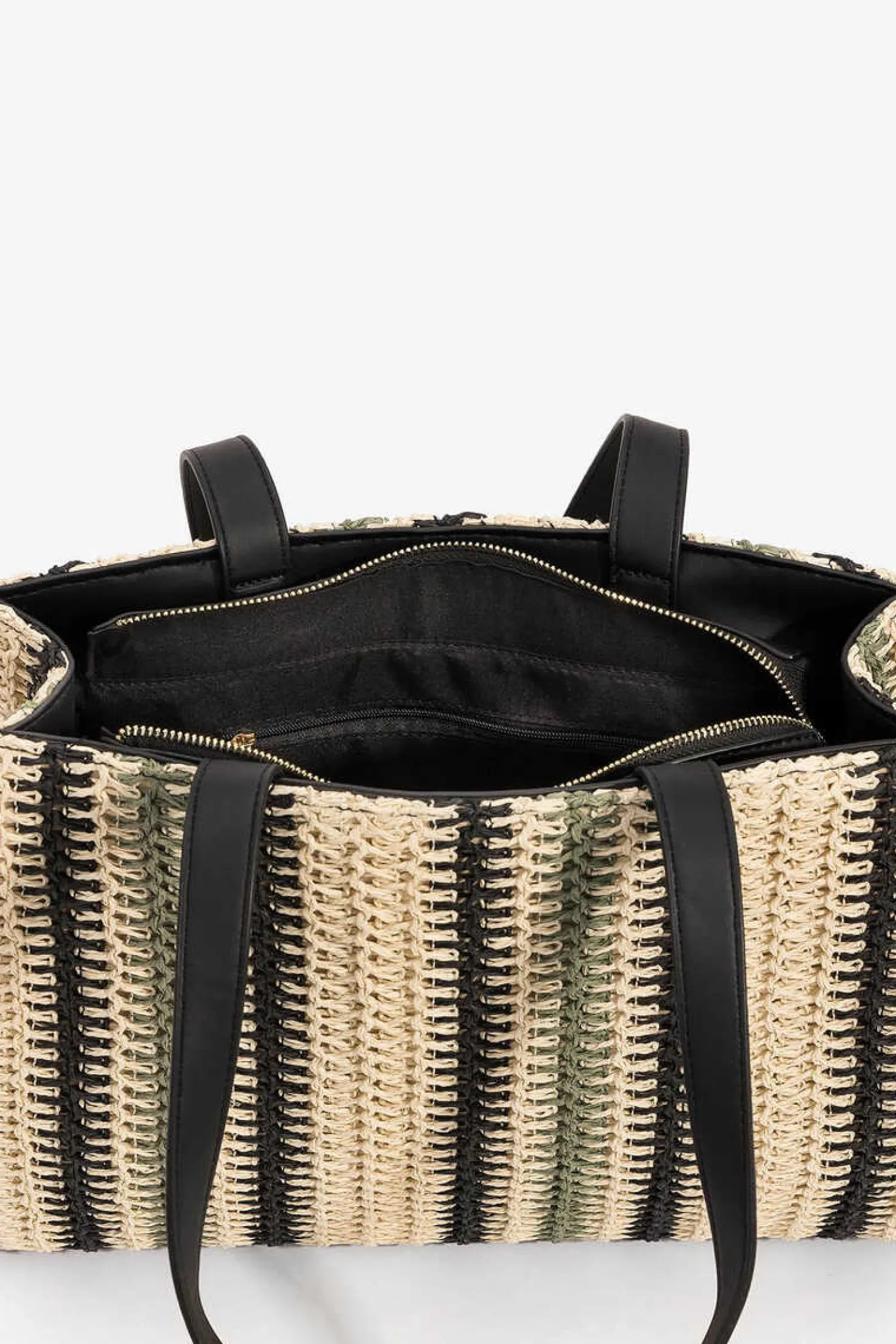 Mala Shopper Efeito Palha Com Duas Alcas E Fecho De Correr Superior. Fecho De Correr Interior.
