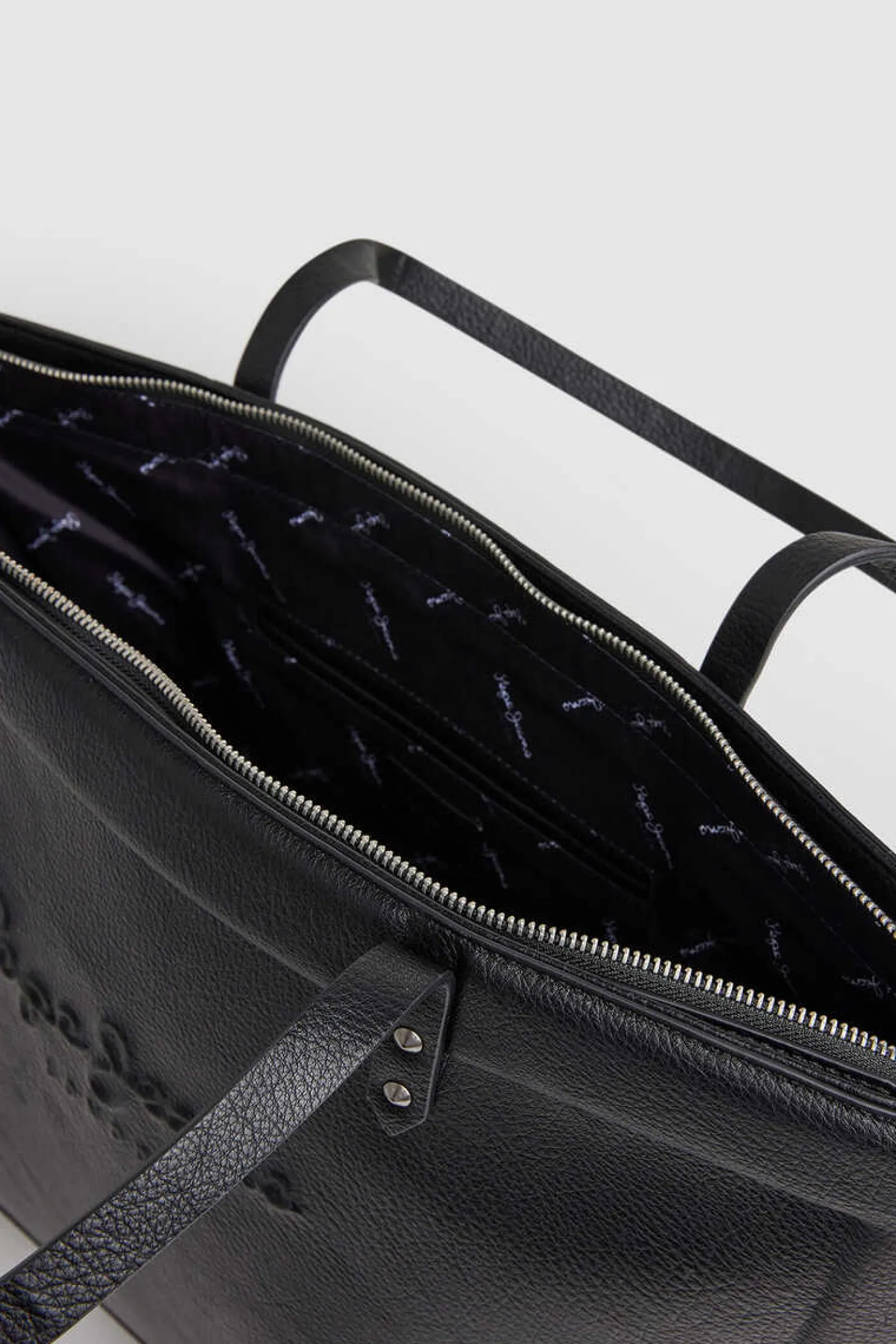 – Mala Tote Em Polipele – Mala Grande Frontal Com Fecho-Eclair – Maxi Logo Em Relevo Pepejeans Na Frente – Bolso Interno De Ilhos – Forro Interior Com Logo Esta … Mpado All Over – Alcas Compridas Fixadas Com TachasVer Mais