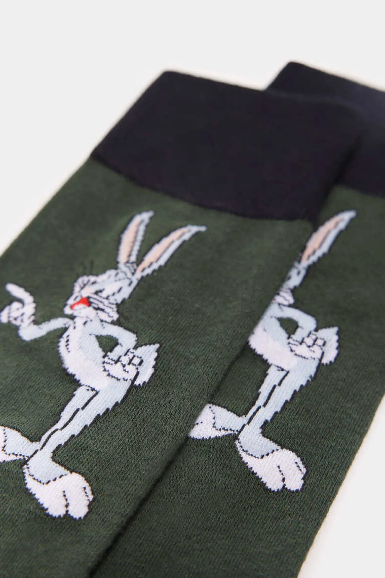 Meia Alta Em Algodao Com Jacquard Posicional Do Coelho Bugs Bunny. Warner Bros™. Colecao Reconsider.