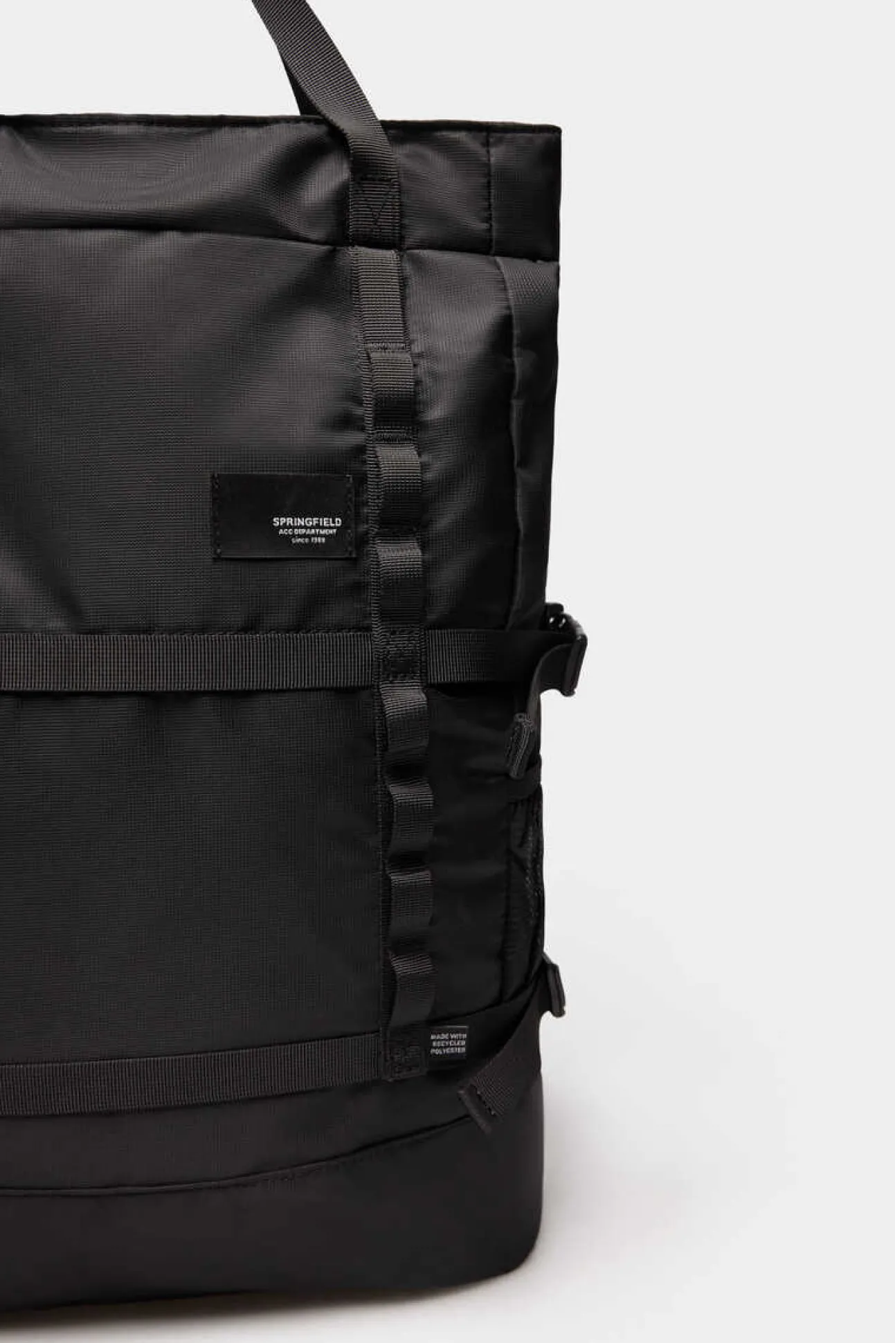 Mochila Preta Em Poliester Reciclado. Fecho Com Fecho-Eclair E Automatico Nas Alcas. Bolsos Exteriores Central E Laterais. Bolso Acolchoado Com Fecho-Eclair Na … Parte De Tras Para Portatil. Interior Com Diferentes Compartimentos E Bolsos.Parte De Tras E Correntes Acolchoadas E Ajustaveis, Com Corrente No Peito, Tambem Ajustavel. . Medidas 49 X 34 Cm. Colecao Reconsider.Ver Mais
