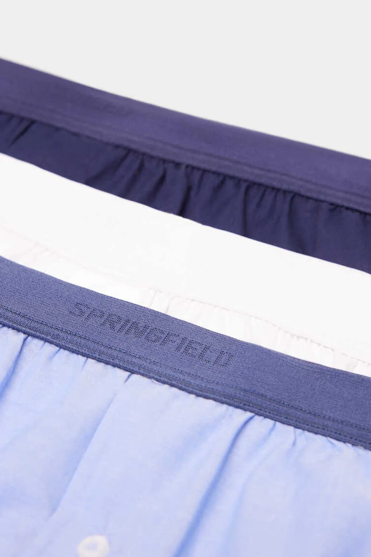 Pack De 3 Cuecas Em Tecido De Popelina De Algodao Em Tons De Azul. Colecao Reconsider.