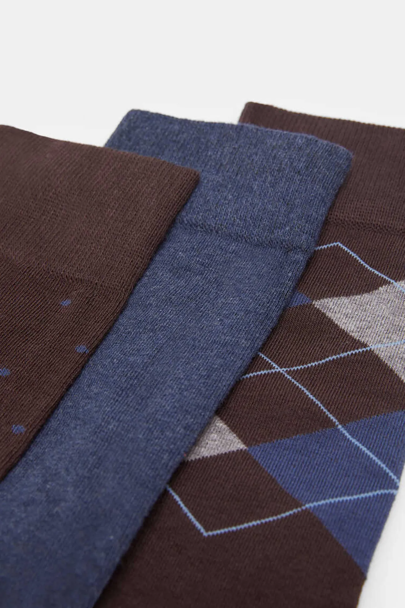 Pack 3 Meias De Algodao Em Liso, Bolinhas E Losangos. Colecao Reconsider.