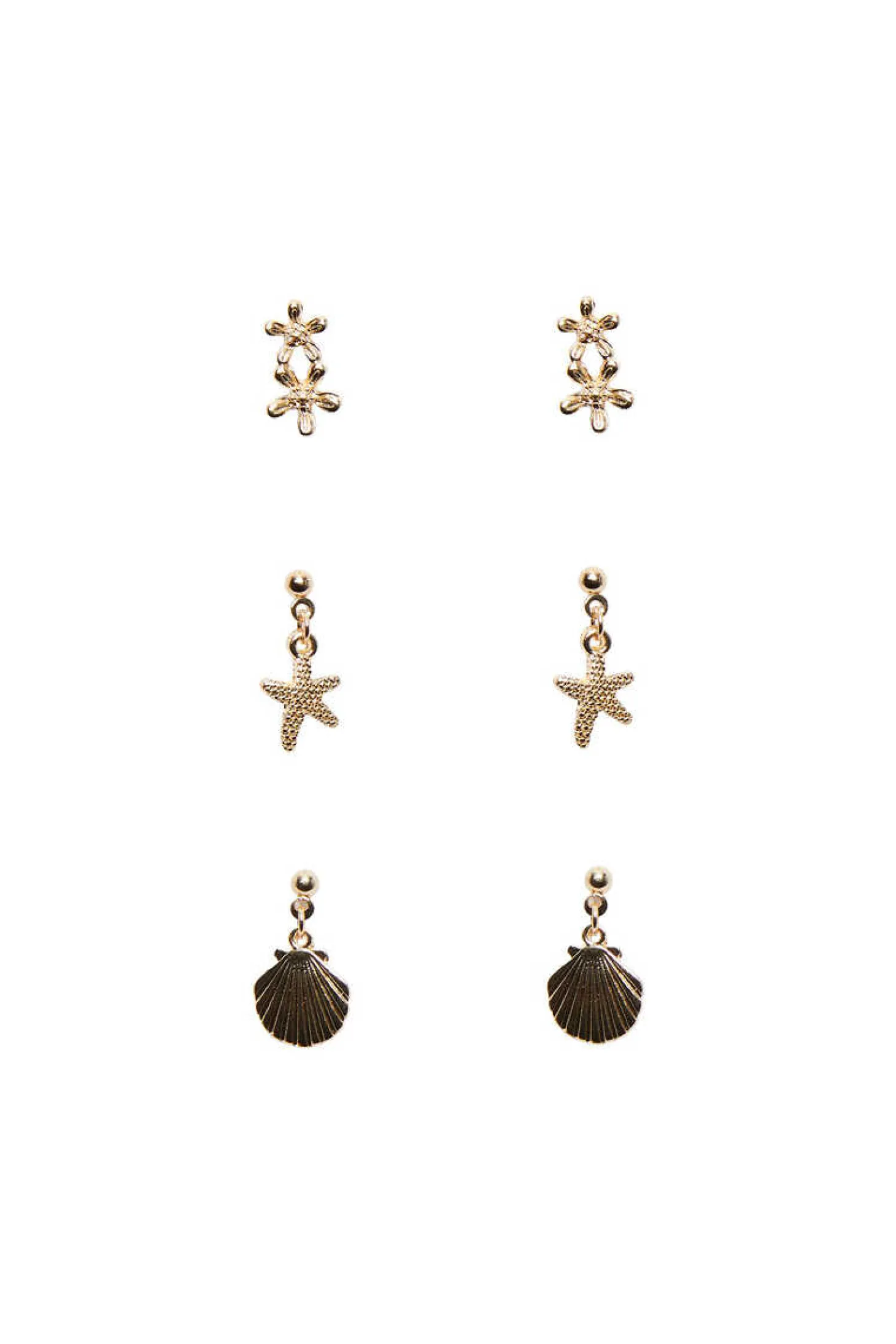 Pack De Tres Brincos Curtos Em Cor Dourada.