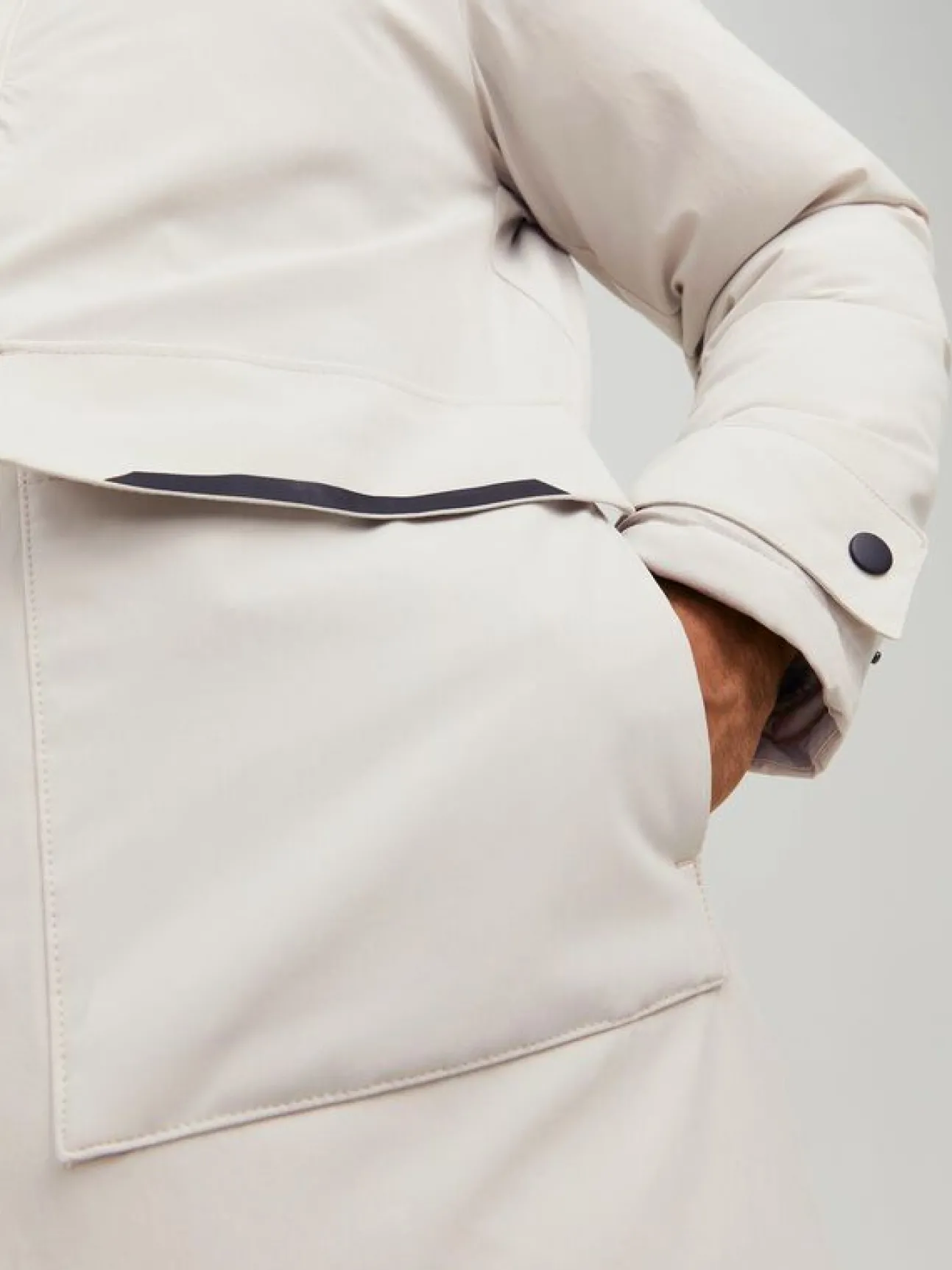 Parka Com Desenho Comprido. Impermeavel. Gola Subida Com Capuz Com Pelo E Cordoes Ajustaveis. Dois Bolsos Laterais De Lapela. Fecho-Eclair E Botoes De Pressao