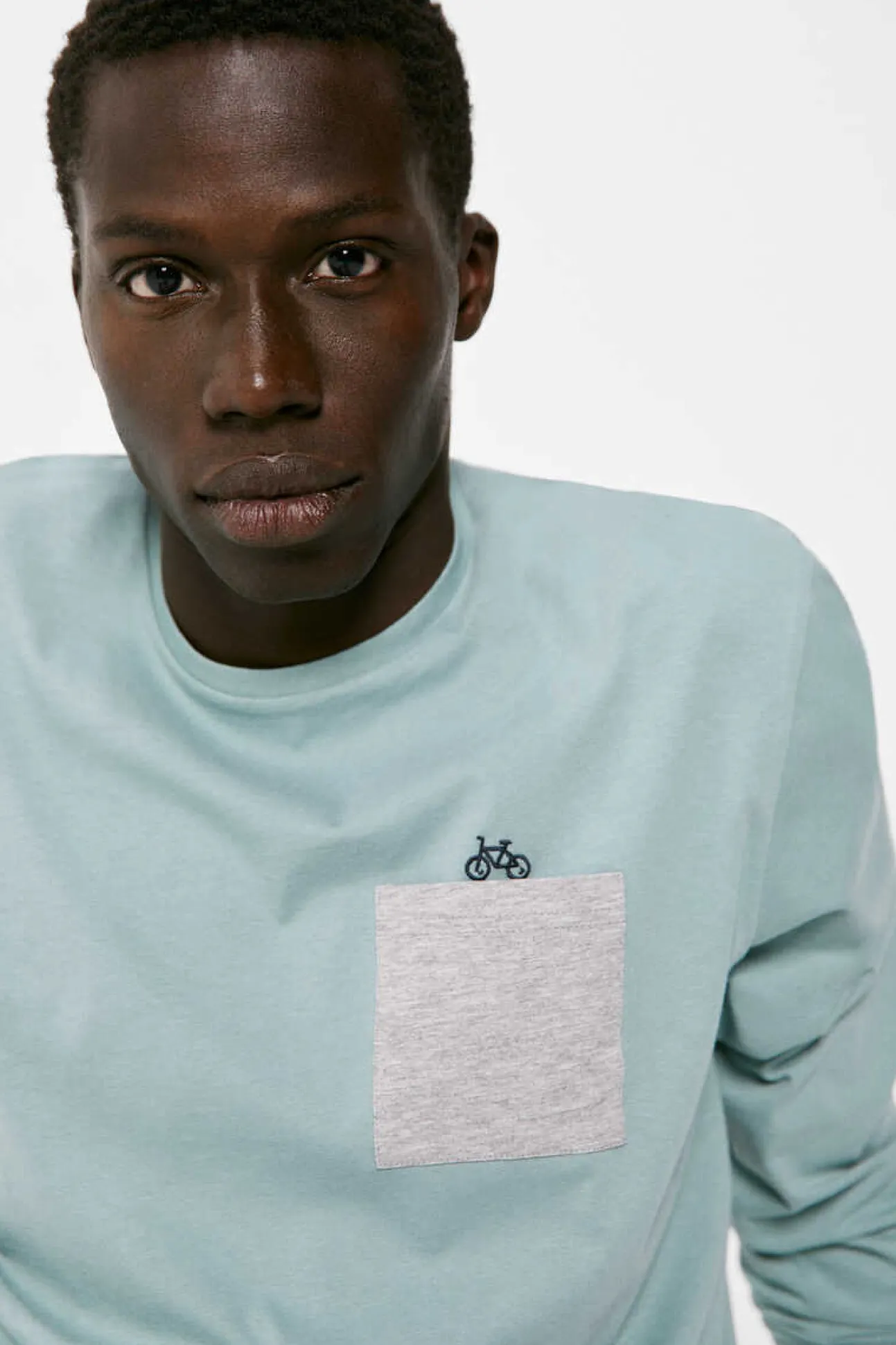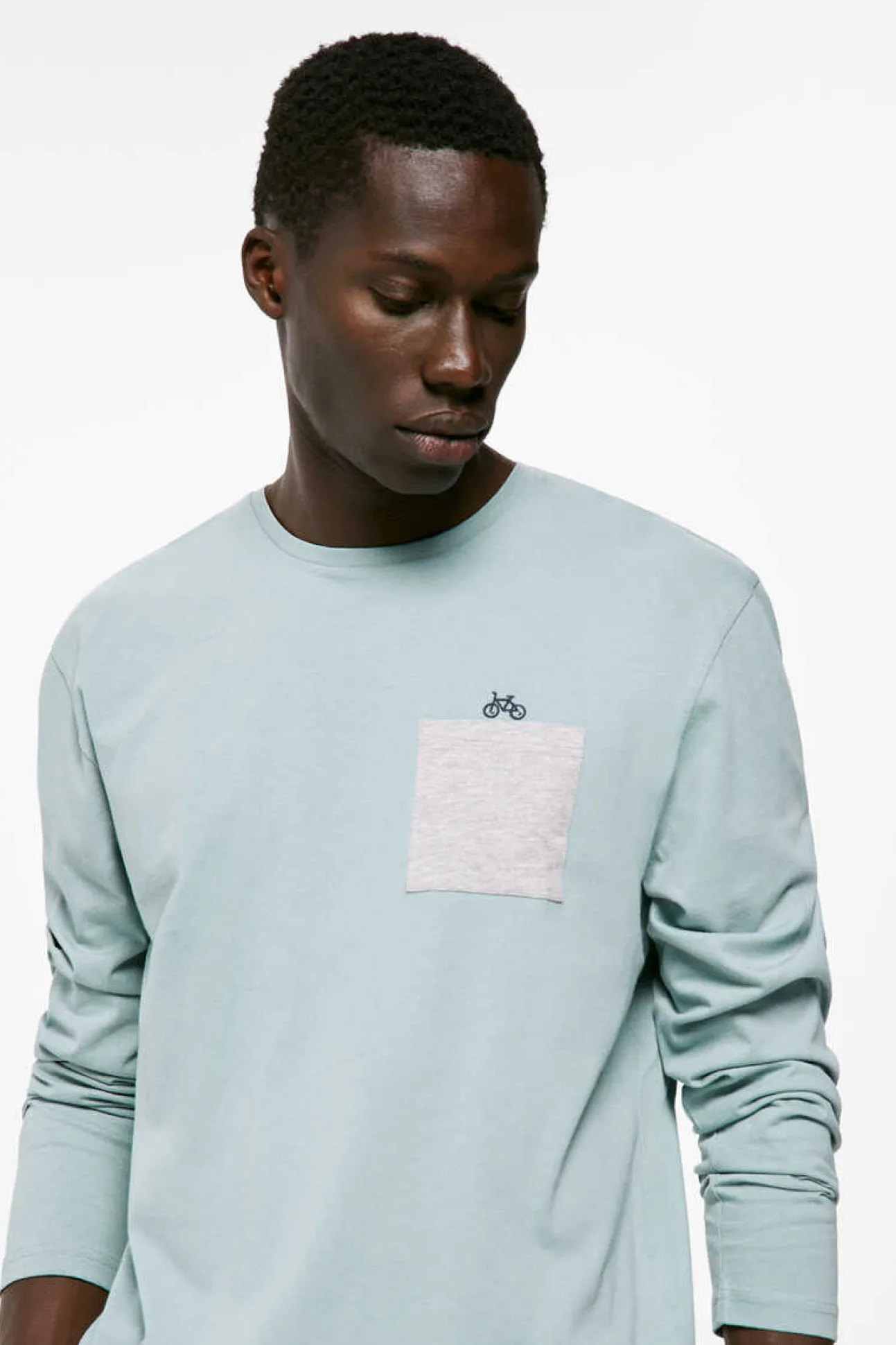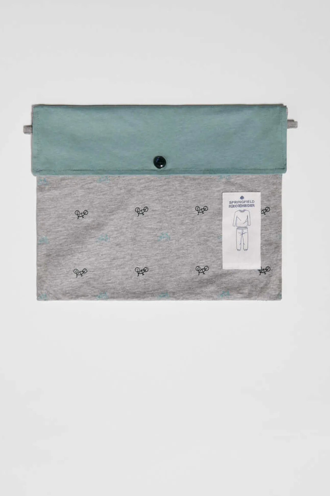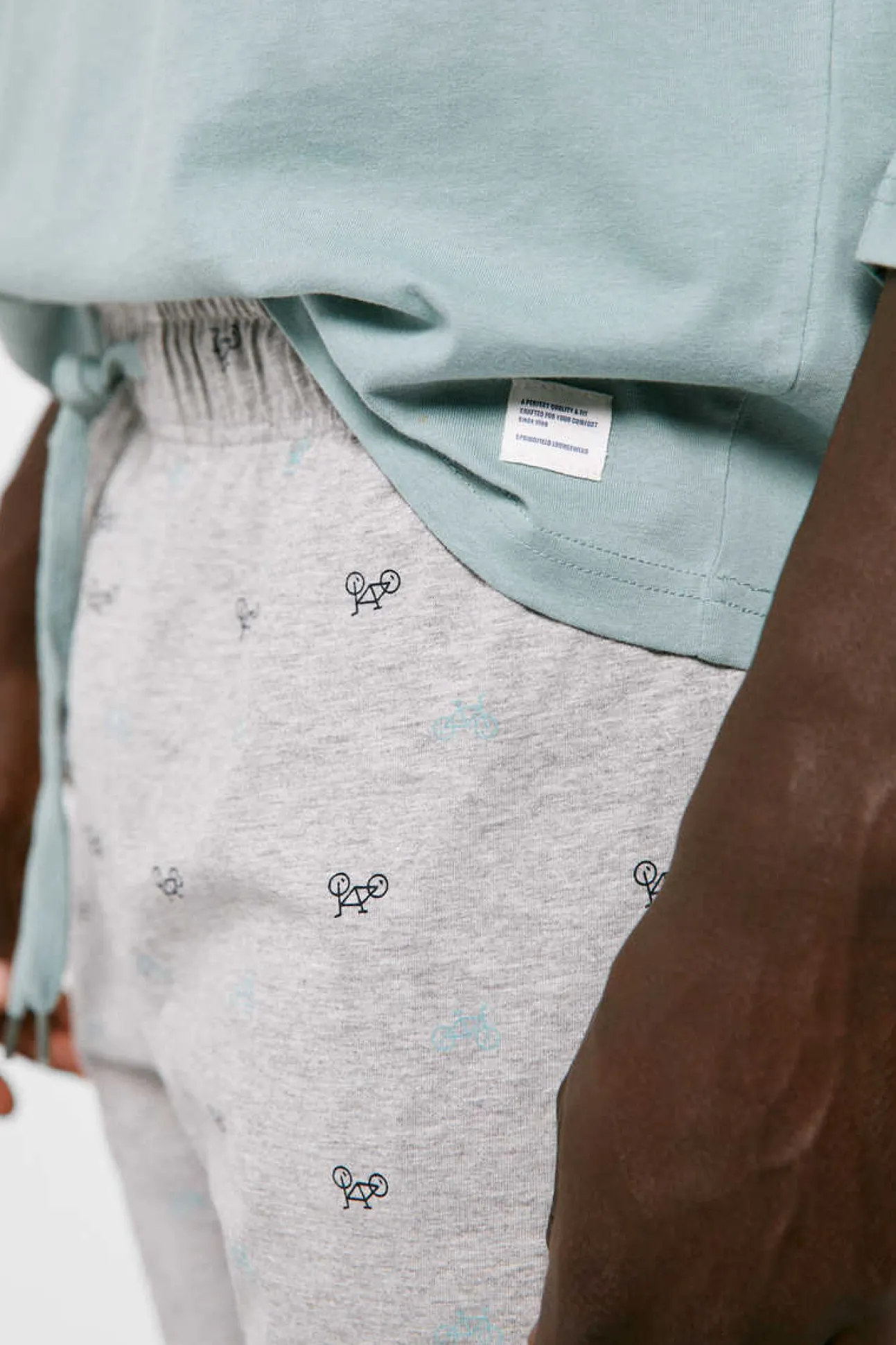 Pijama Comprido De Malha De Algodao. T-Shirt Com Bordado De Bicicleta E Bolso No Peito. Calcas Com Print De Bicicletas E Cintura Elastica Ajustavel Com Cordao. … Colecao Reconsider.Ver Mais
